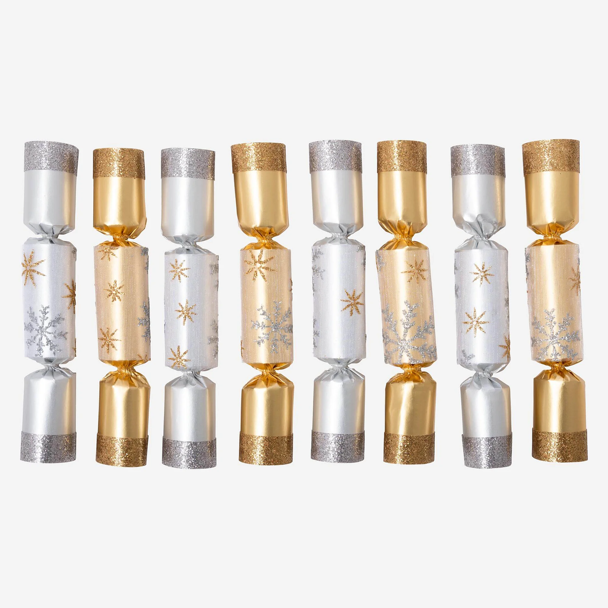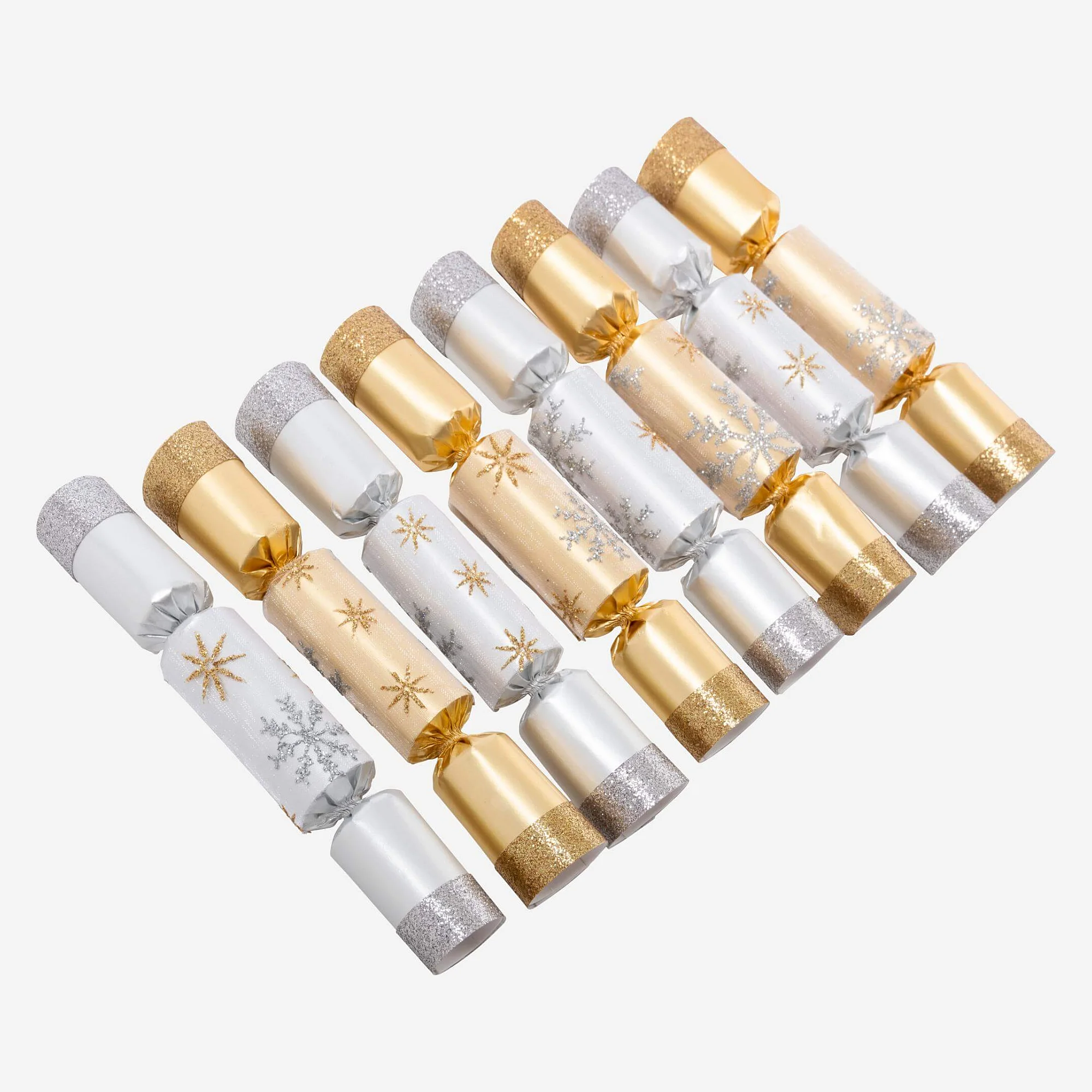 Décoration de Noël - Set de 8 mini crackers motif flocon de neige - Or et argent (Lot de 12)