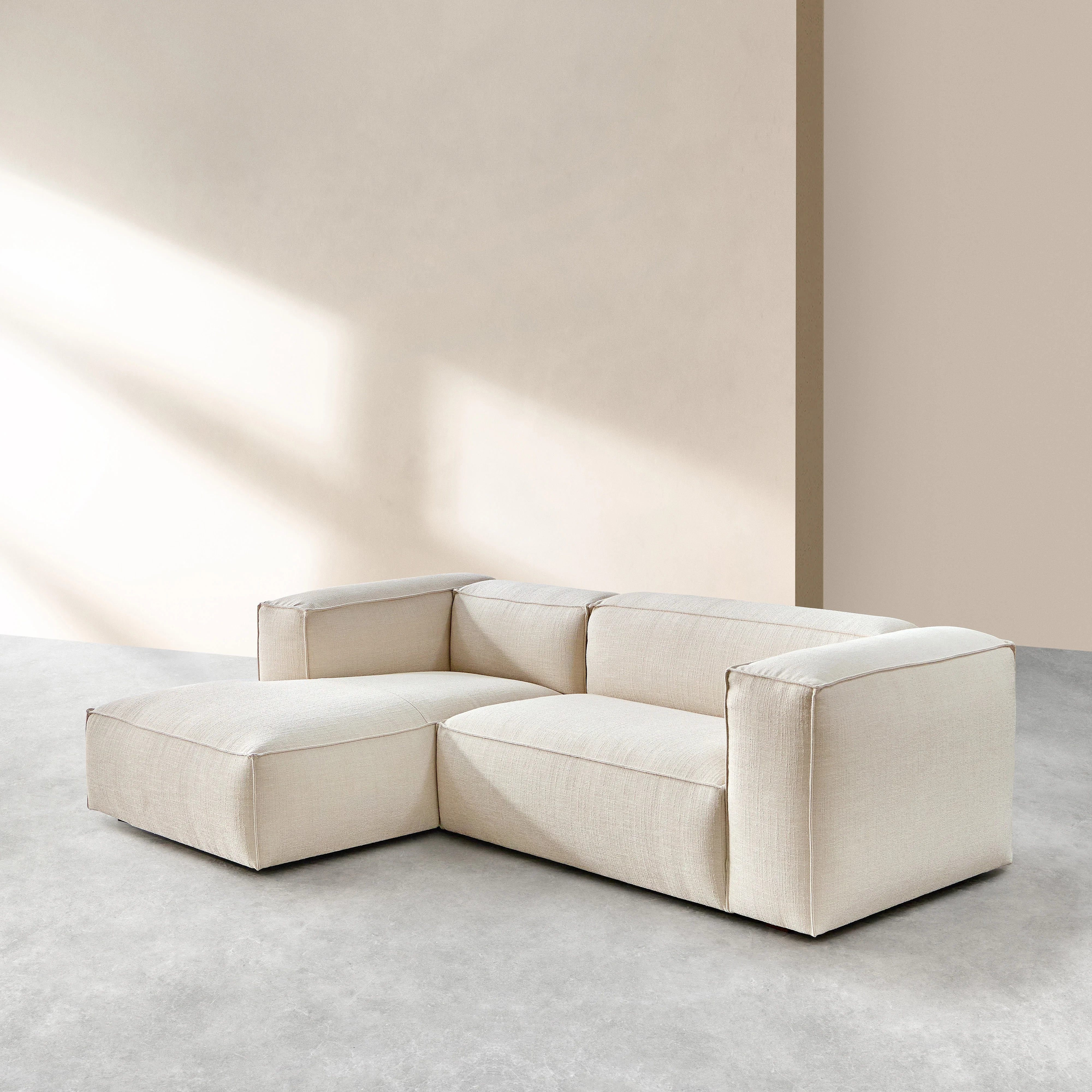 Canapé d'angle gauche en tissu bouclette courte Mira - Ivoire