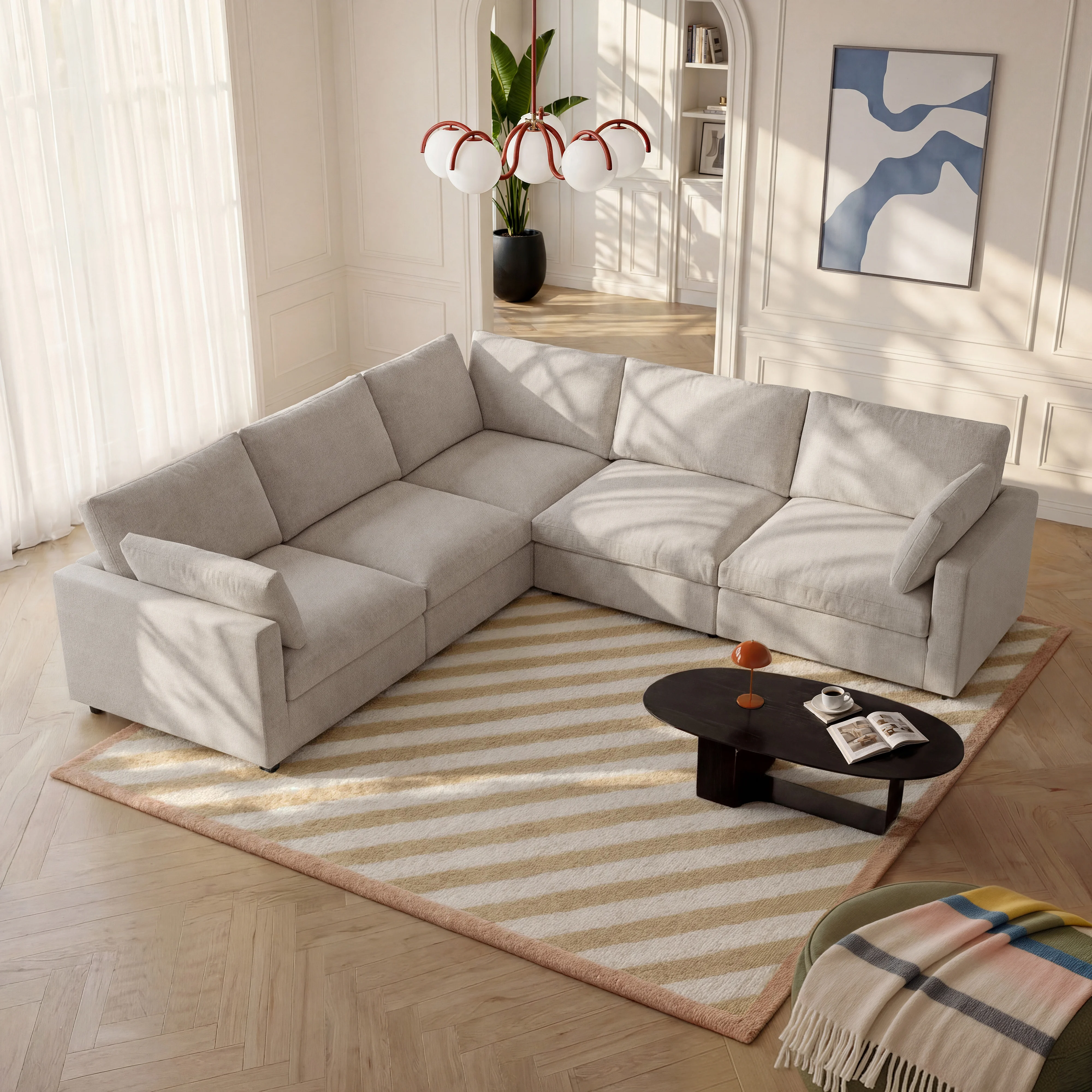 Canapé d'angle 6 places modulable en tissu - Taupe