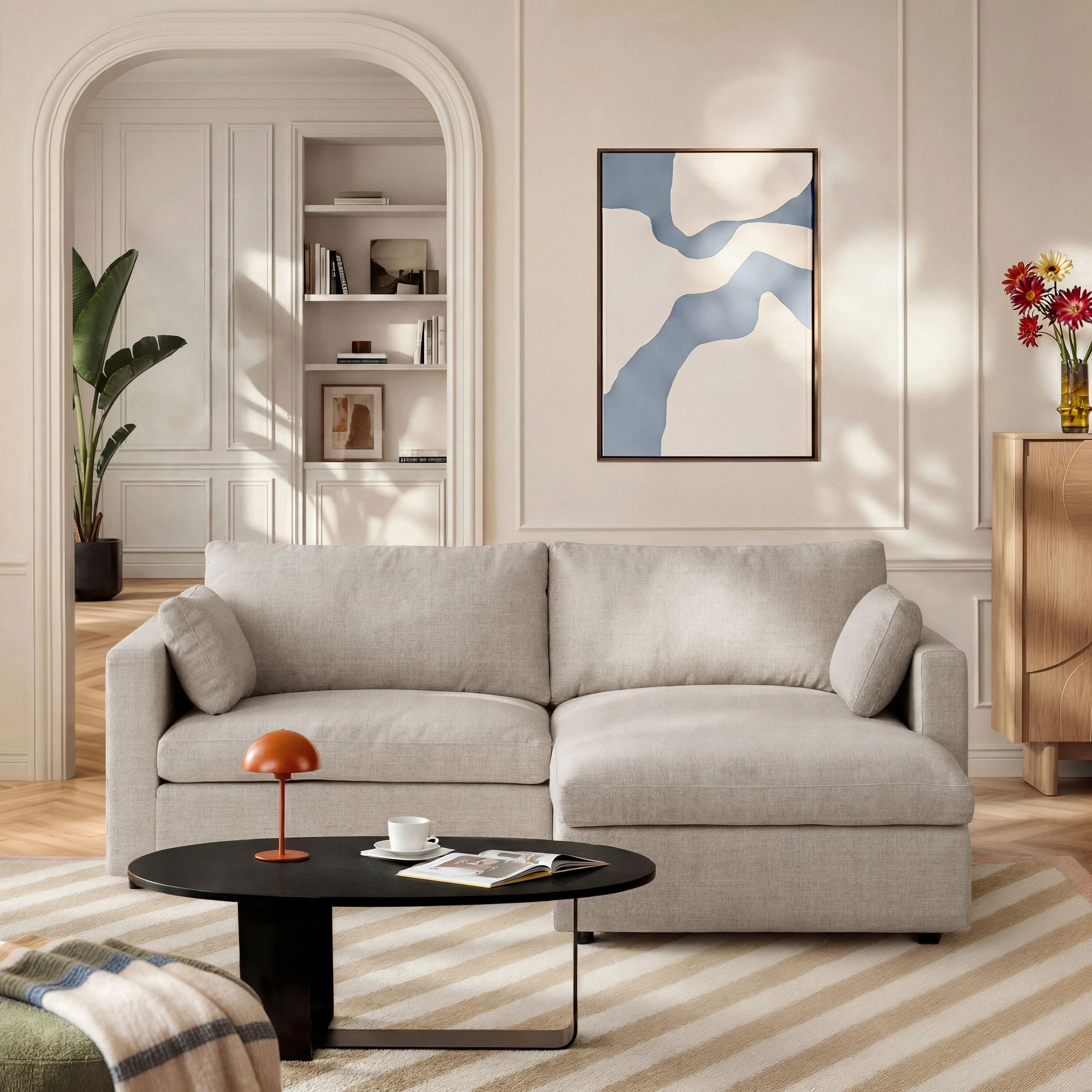 Lavinio réinvente le canapé modulable avec une silhouette épurée et un confort généreux. Ses modules s’assemblent librement pour composer, agrandir ou transformer votre canapé au fil de la vie.