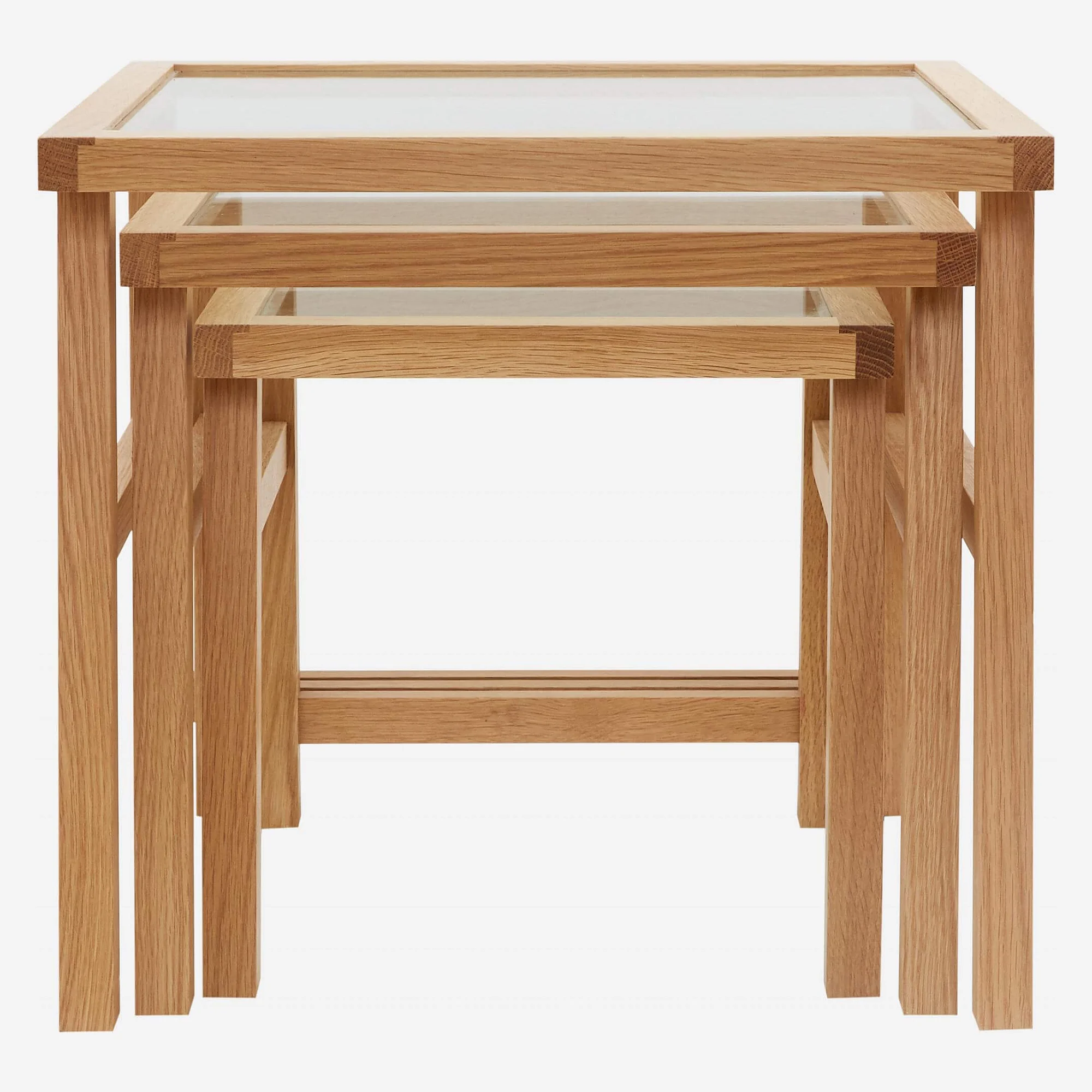 Tables gigognes en chêne et en verre