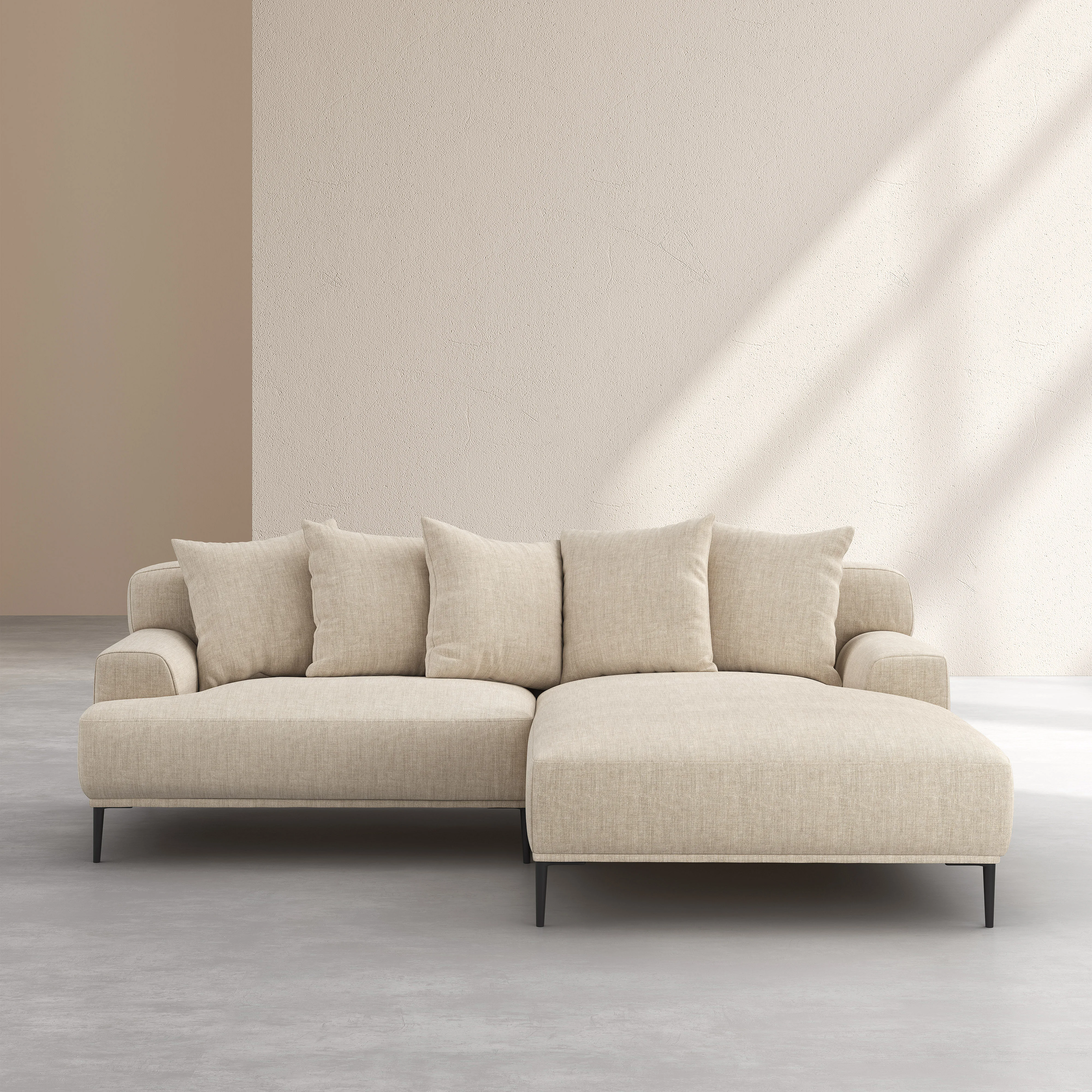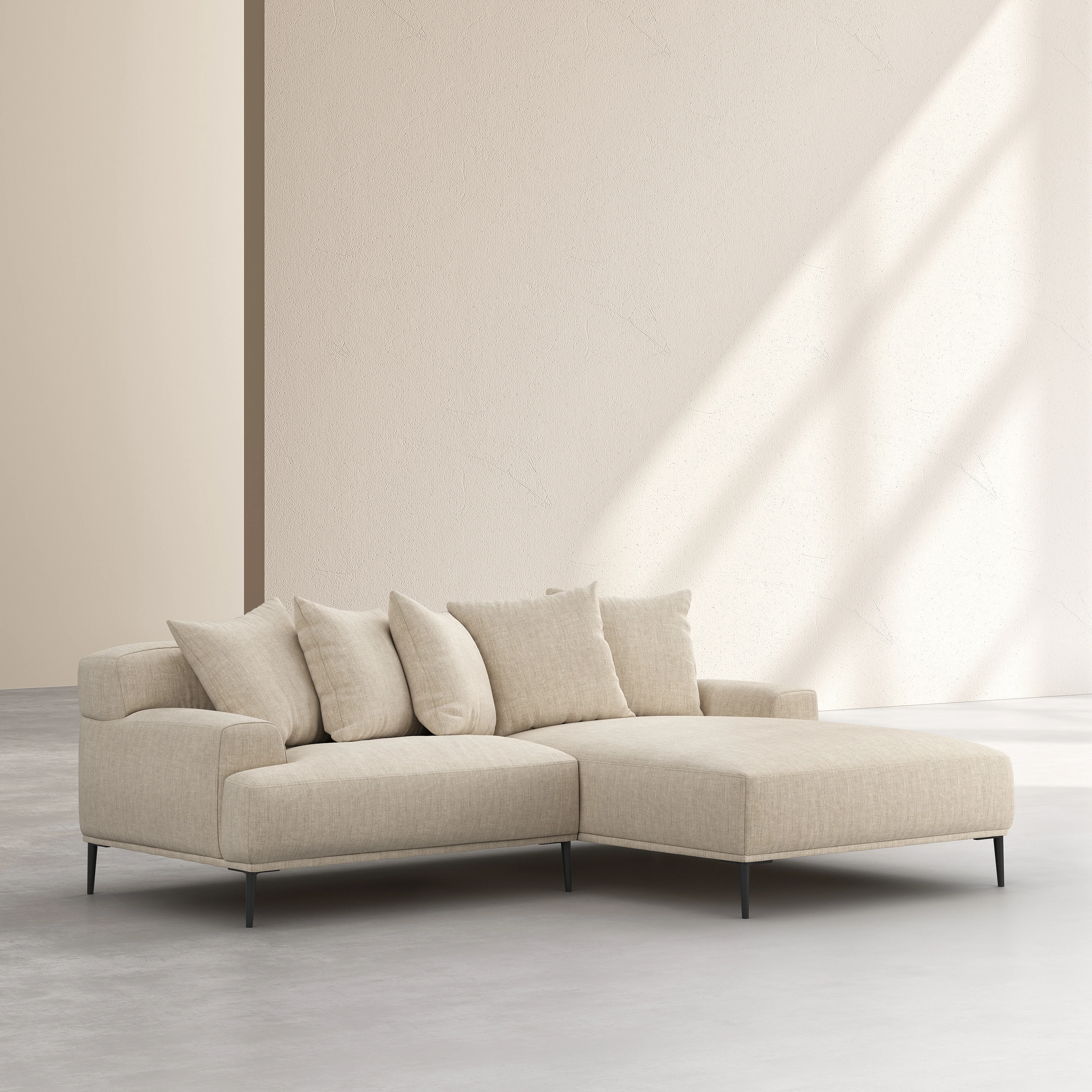 Canapé d'angle droit en coton et lin garni de plumes - Beige