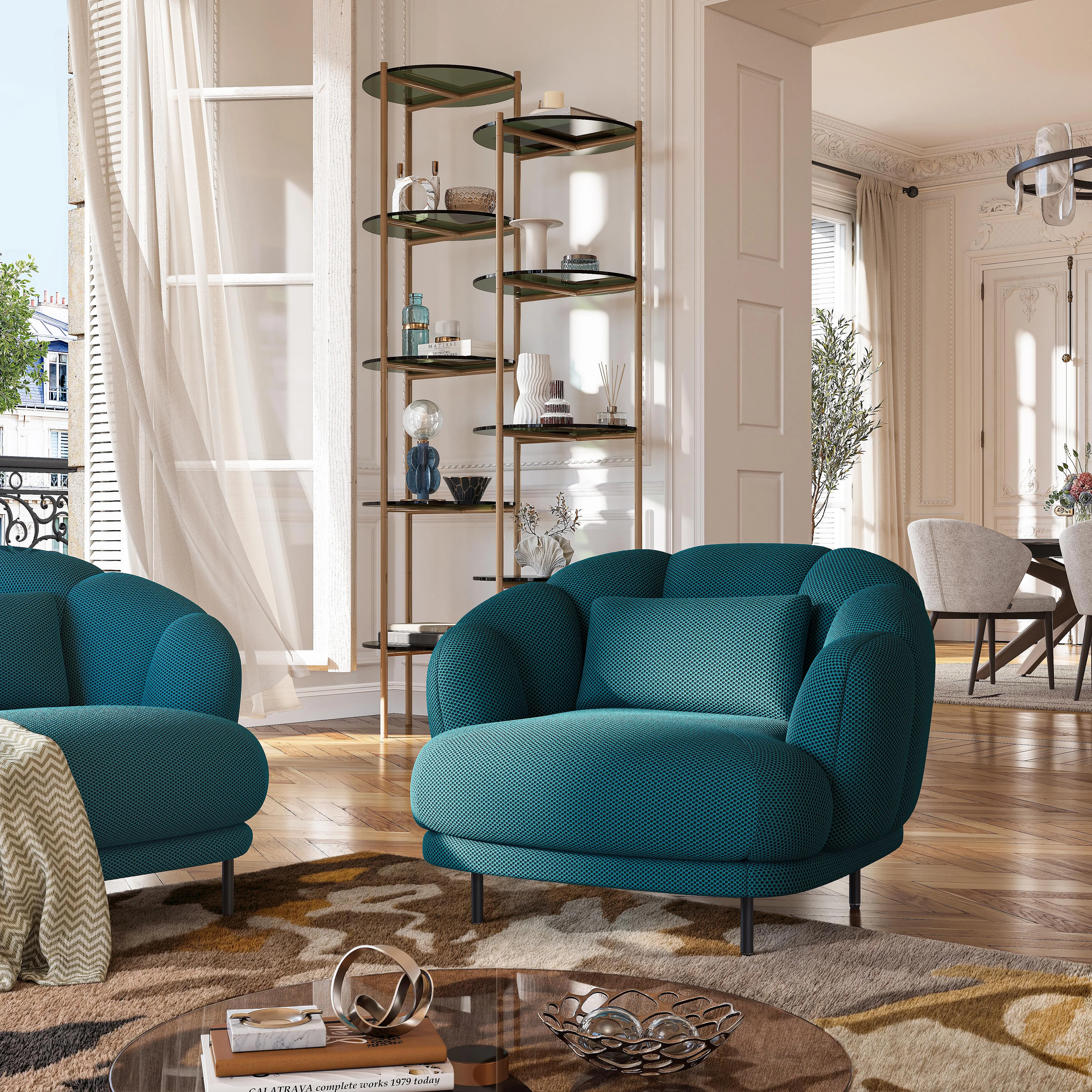 Fauteuil en tissu 3D et métal - Bleu canard et noir - Design by Federica Francini
