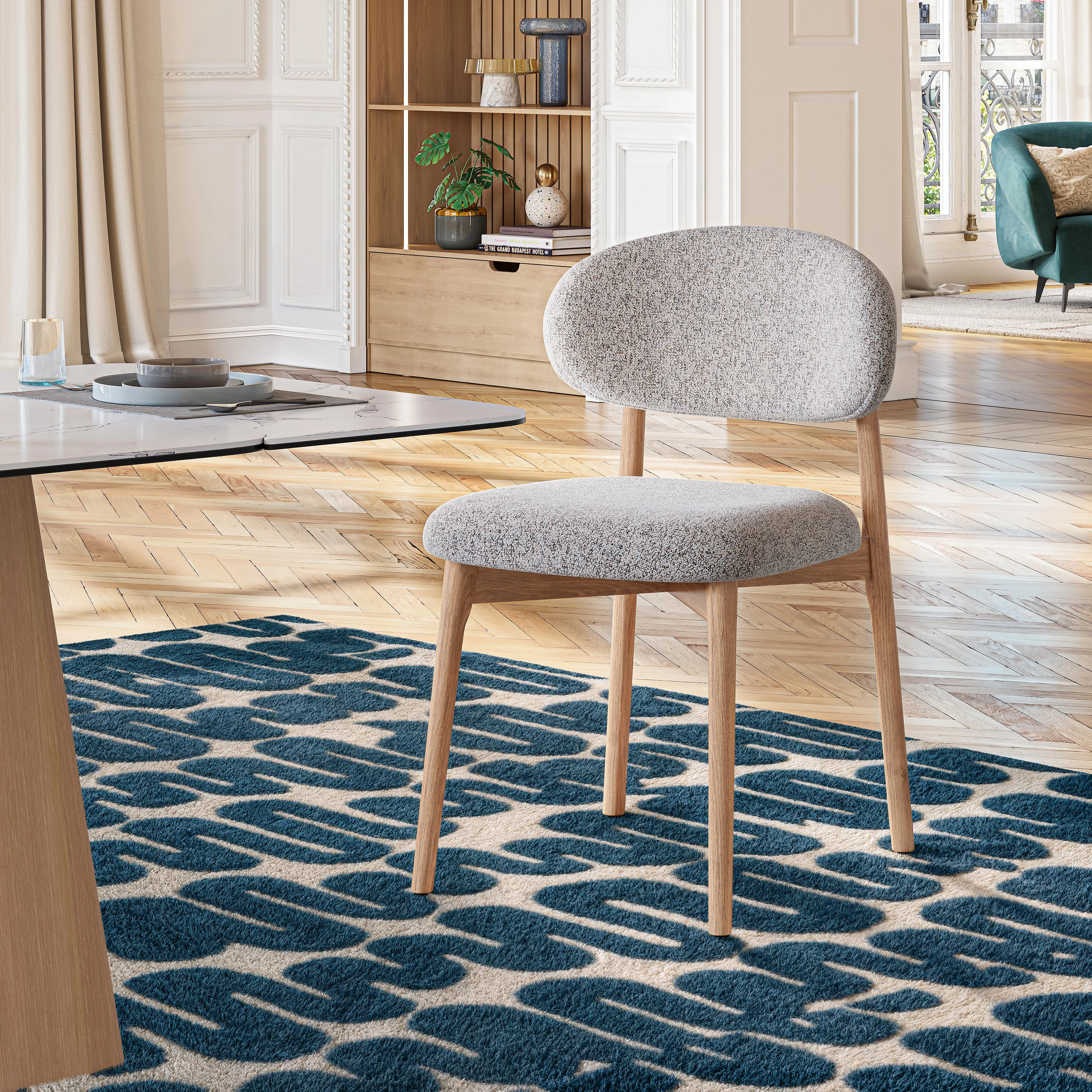 Sedino mise sur des lignes équilibrées, un tissu chiné expressif et des pieds en chêne clair. Un duo discret et raffiné, idéal autour d’une table ou dans un espace de travail au style soigné.