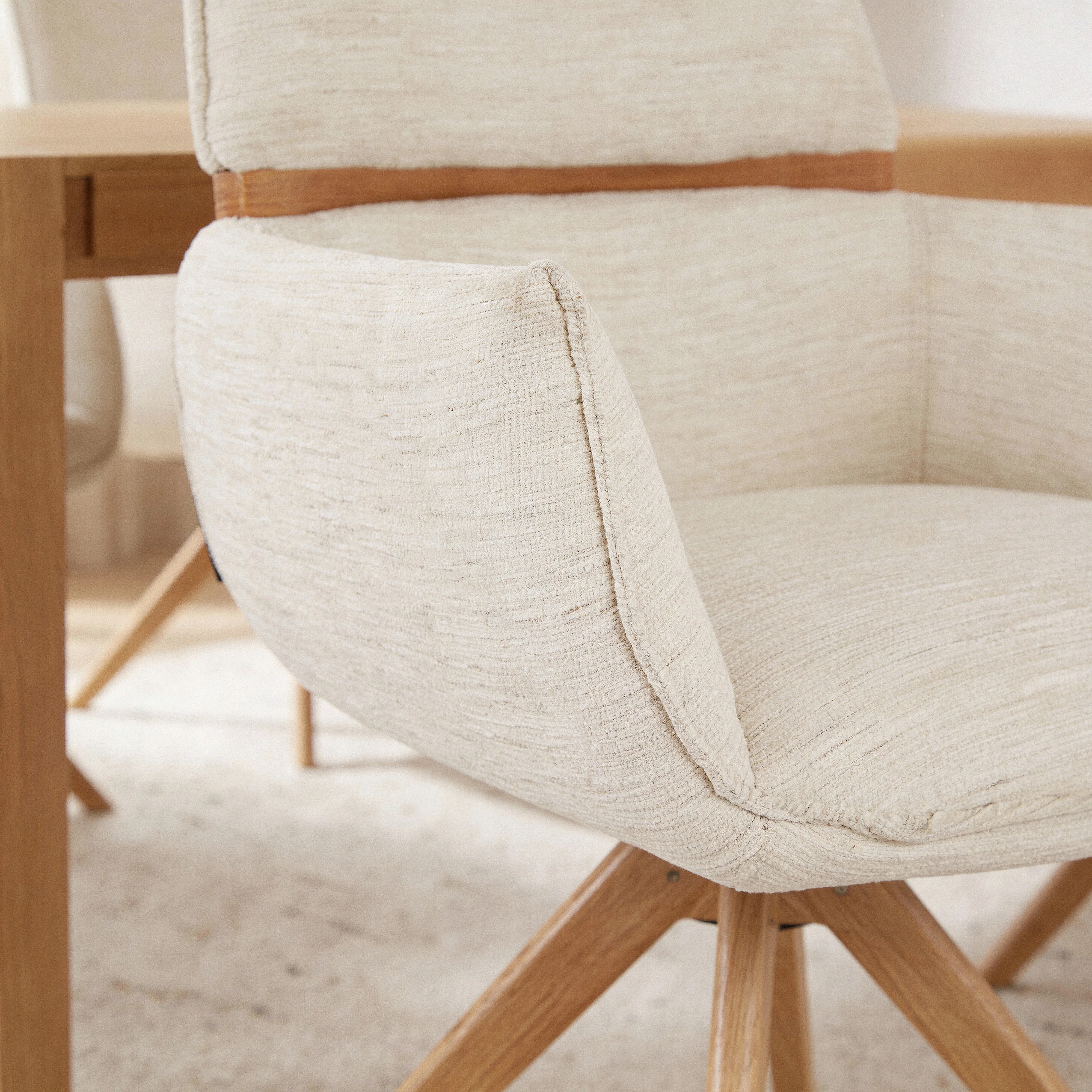 Chaise pivotante en tissu et chêne avec accoudoirs - Crème