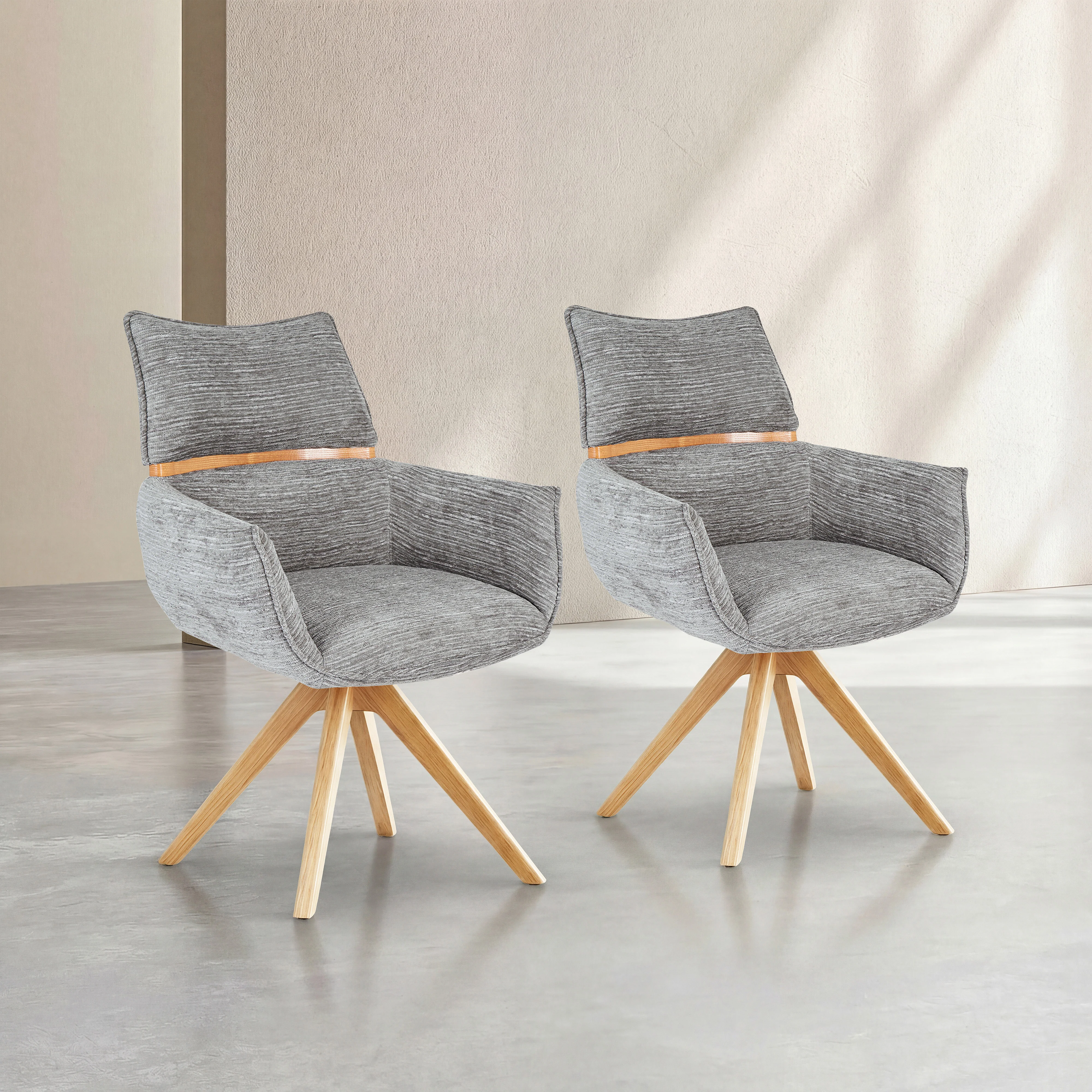 Chaise pivotante en tissu et chêne avec accoudoirs - Gris argent
