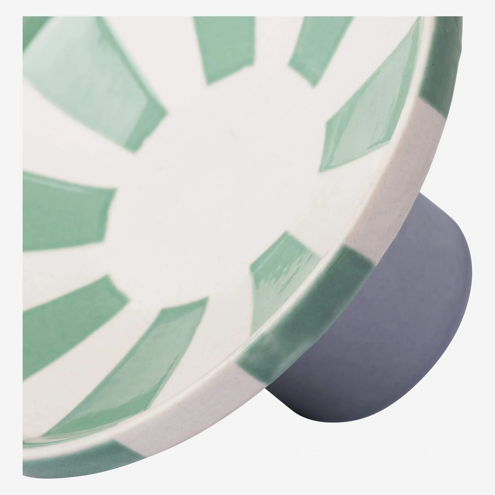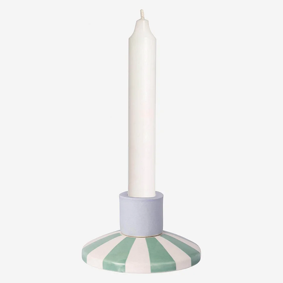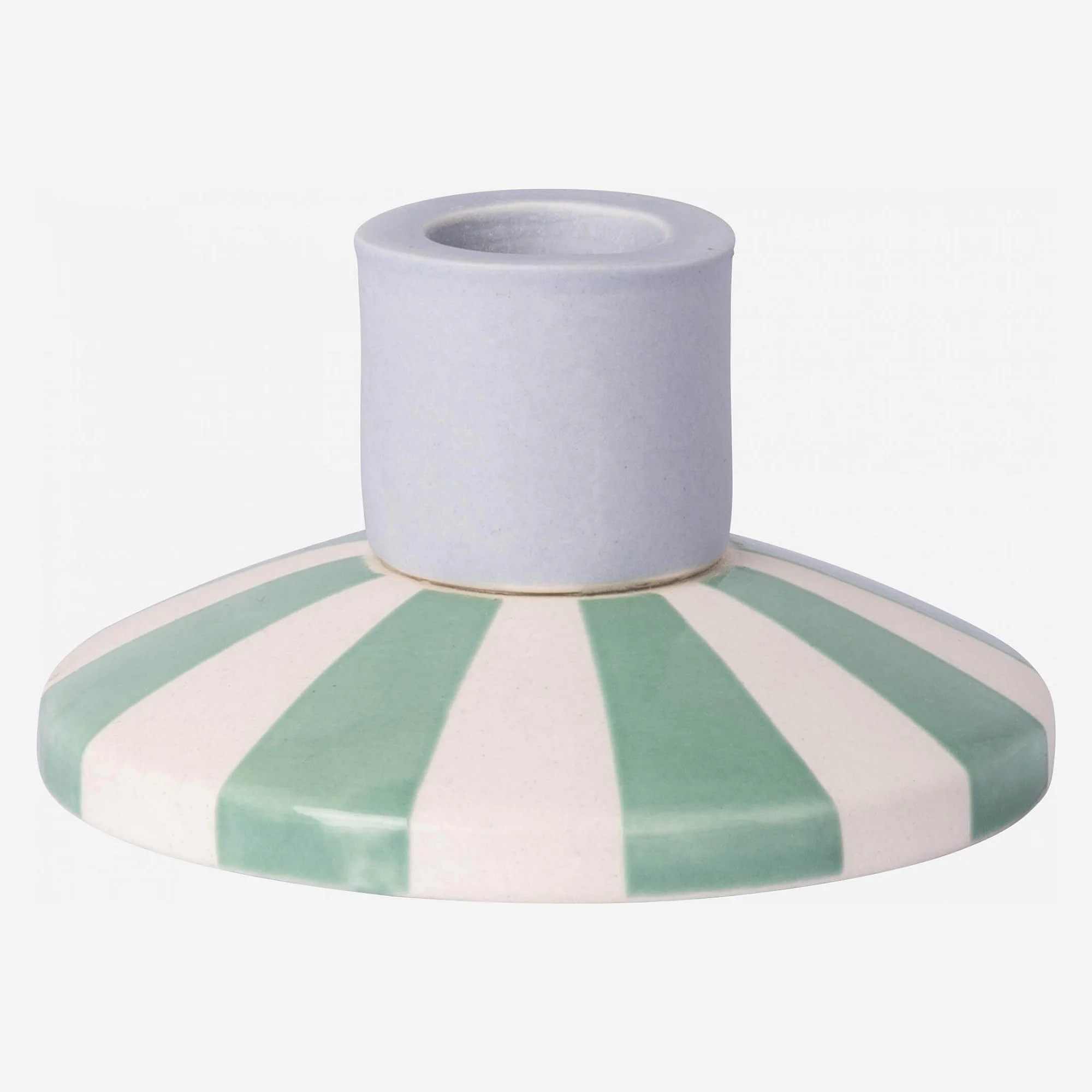 Bougeoir en grès - 9 x 5 cm - Rayures vertes - Design by Chloé Le Cam
