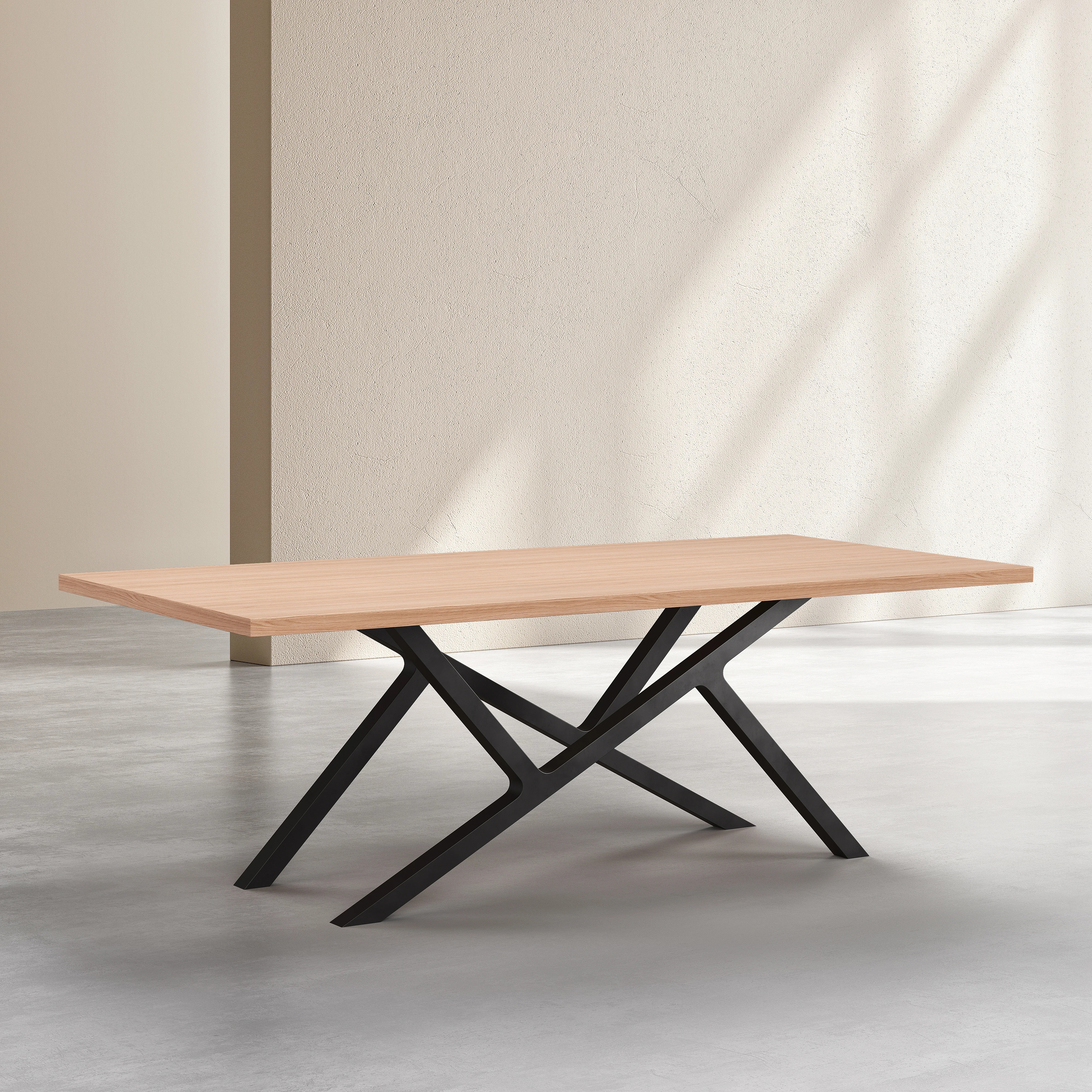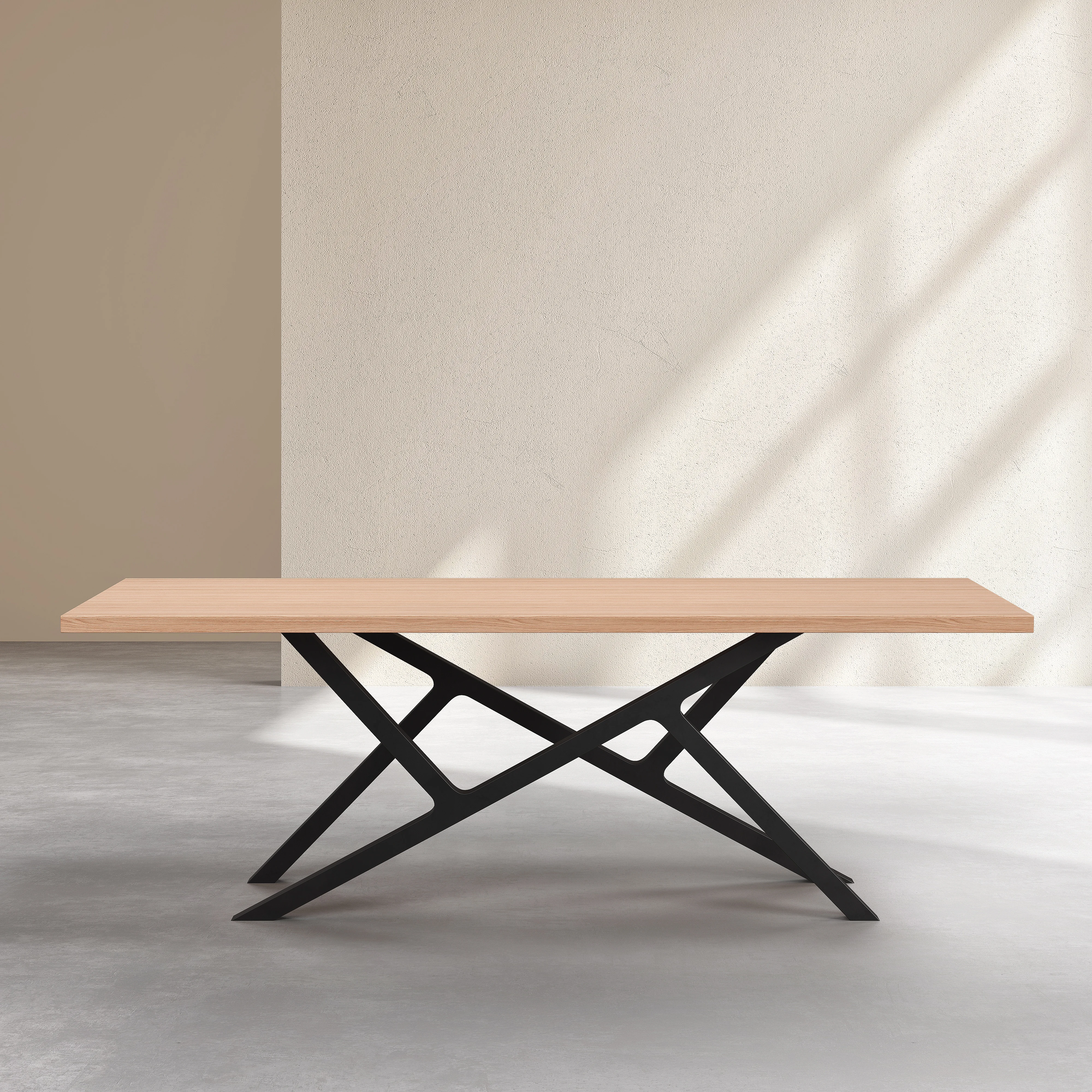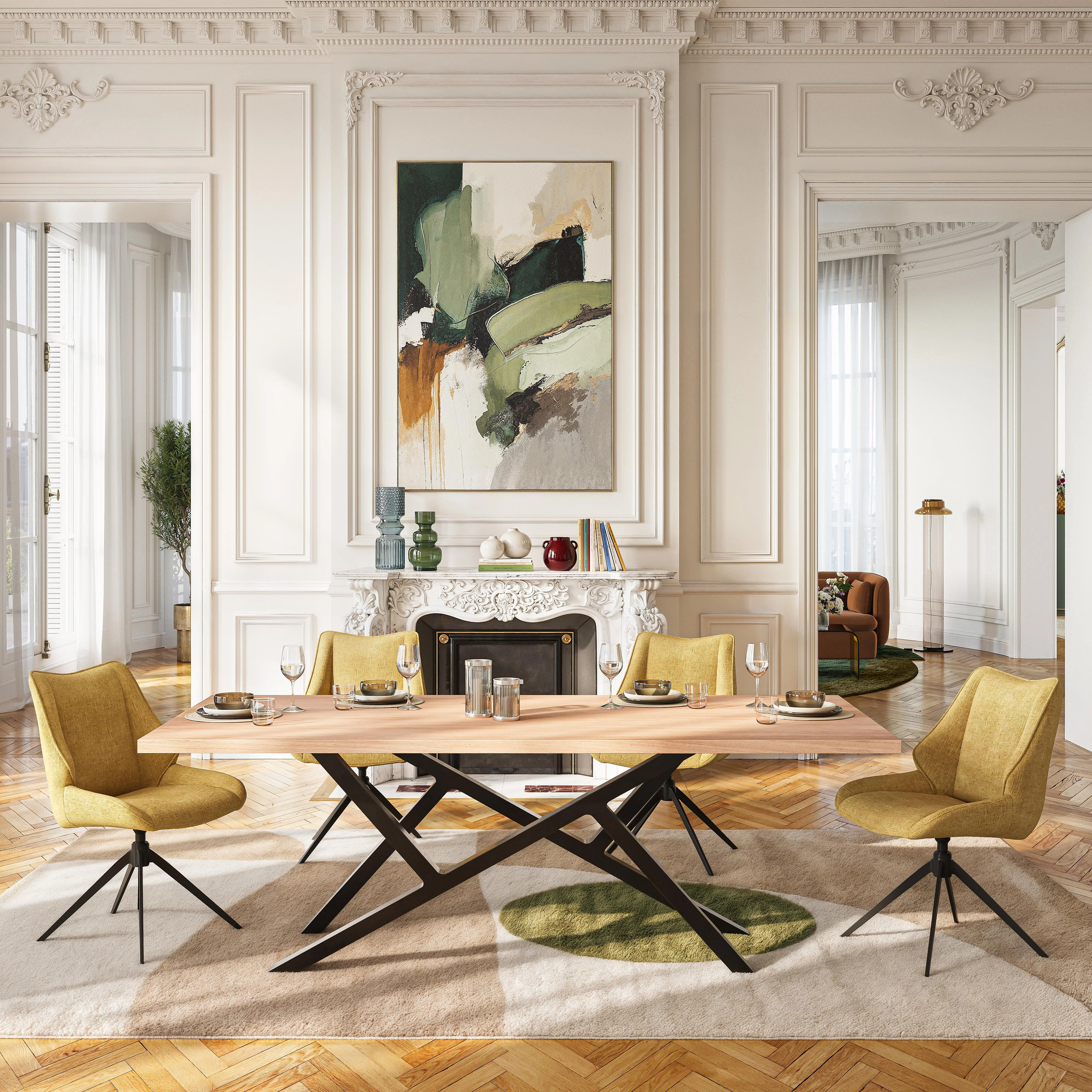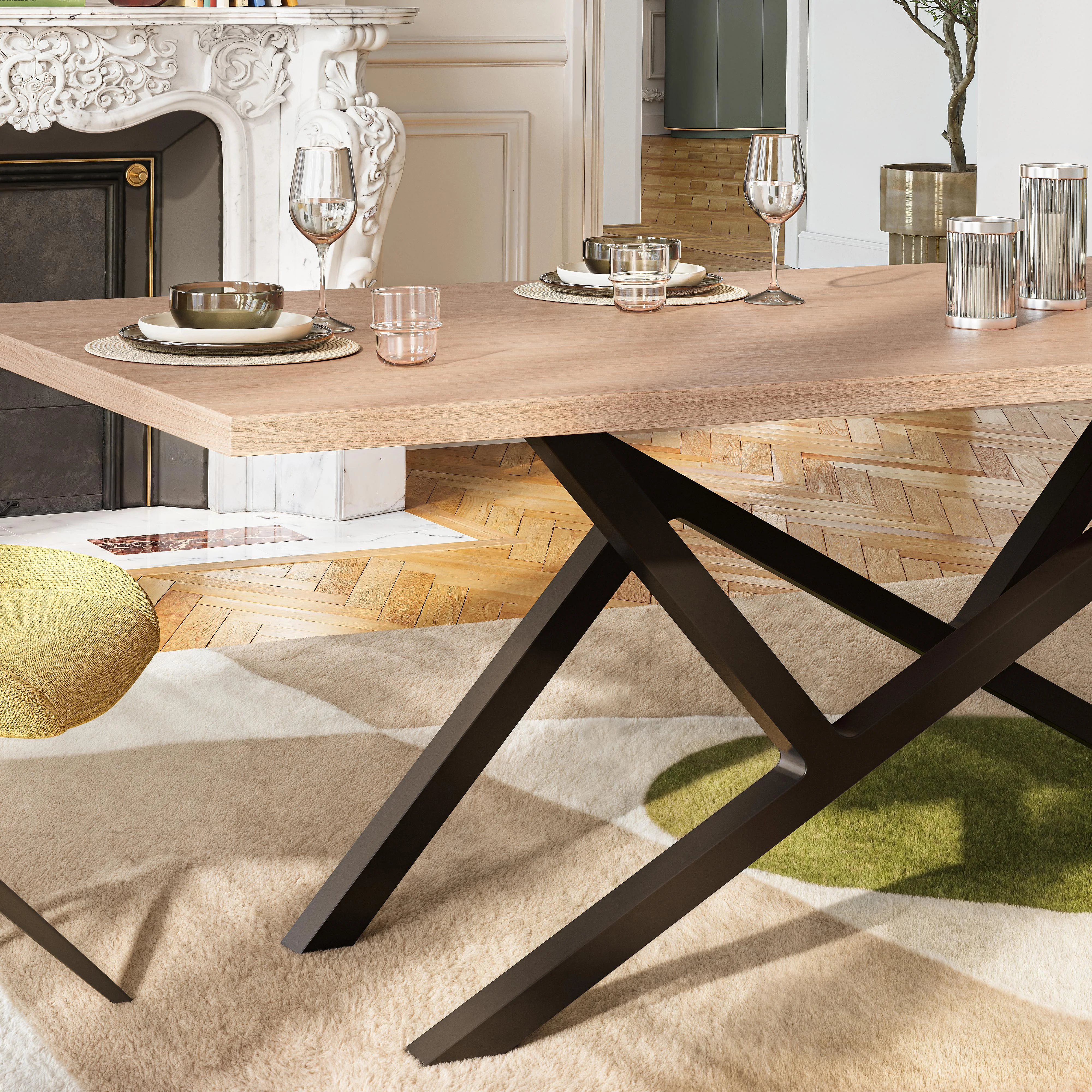 Uzana marie finition chêne clair et métal noir dans une silhouette graphique et chaleureuse. Une table de séjour contemporaine conçue pour accueillir jusqu’à 8 convives dans un cadre élégant.
