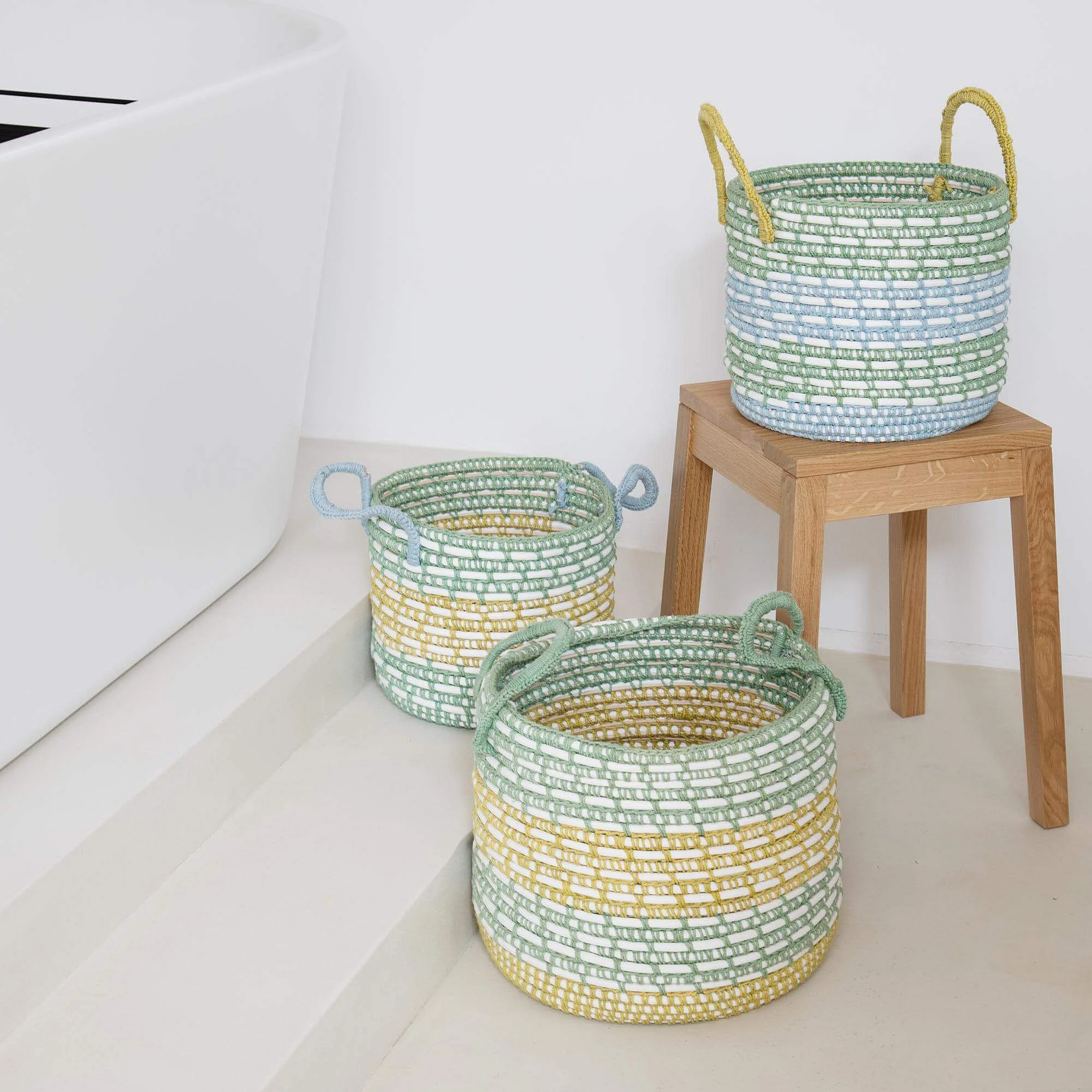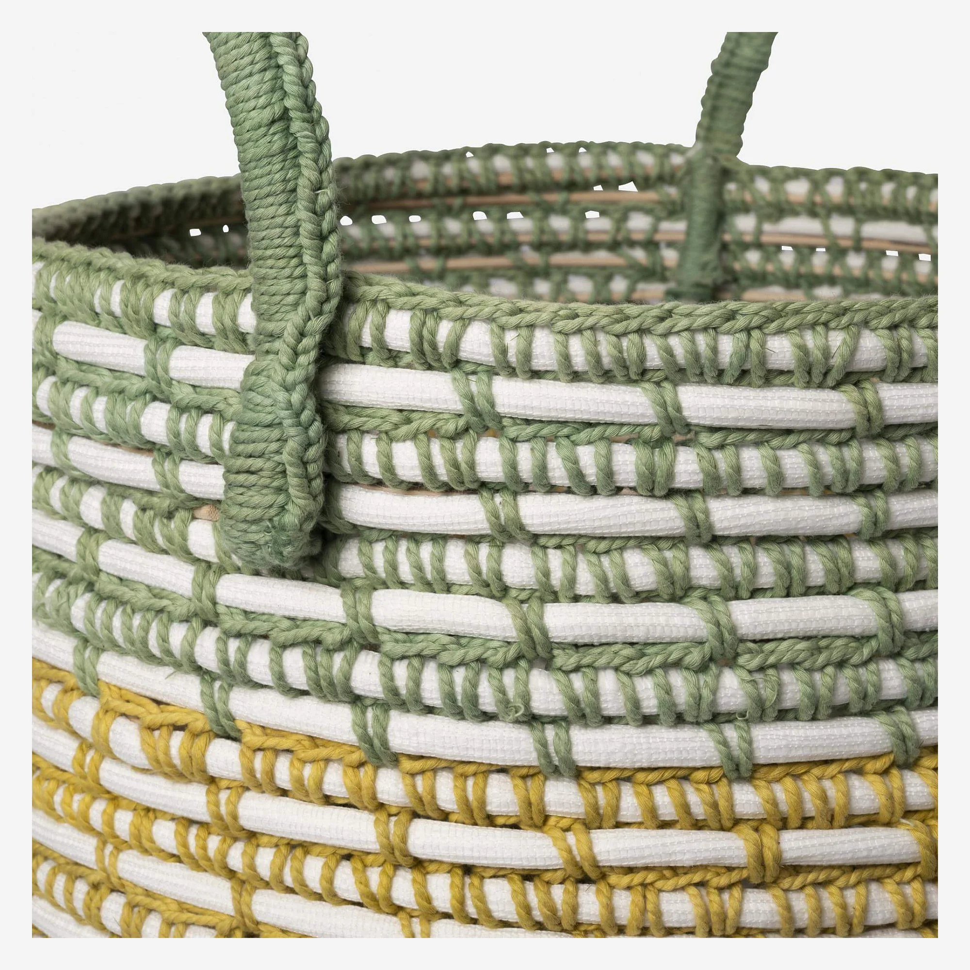 Panier de rangement en rotin et coton - 34,5 x 38,5 cm - Vert et jaune