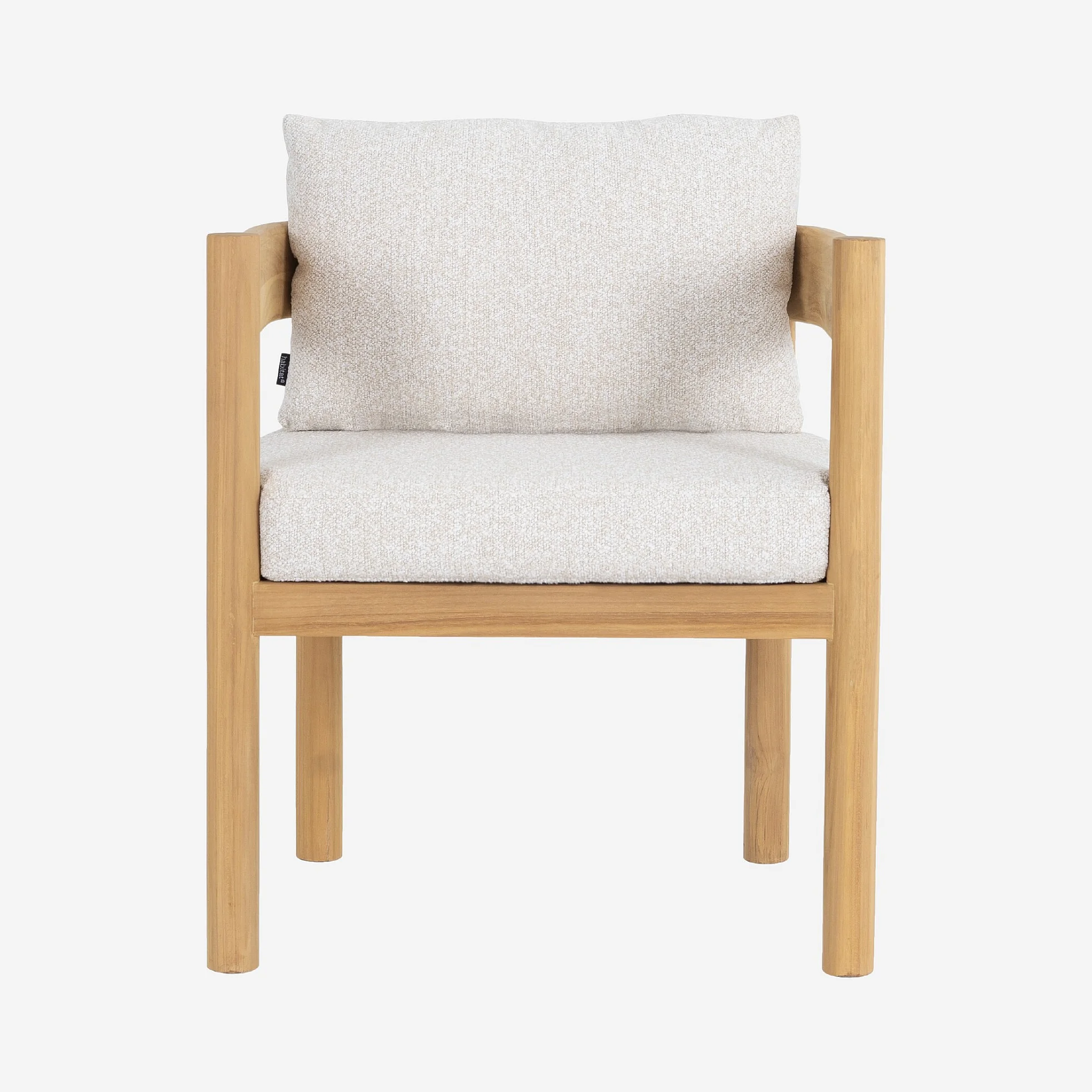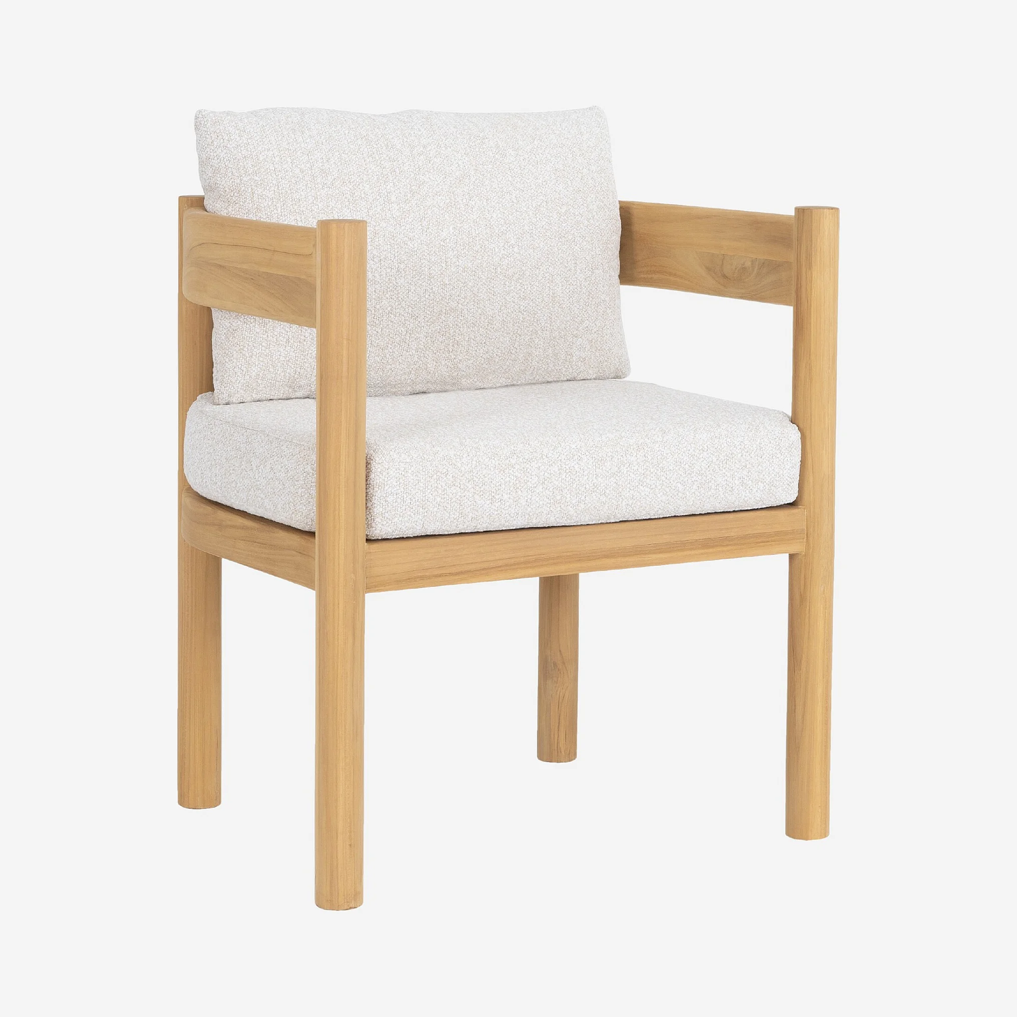 Chaise de jardin en teck massif et tissu imperméable - Naturel et blanc cassé