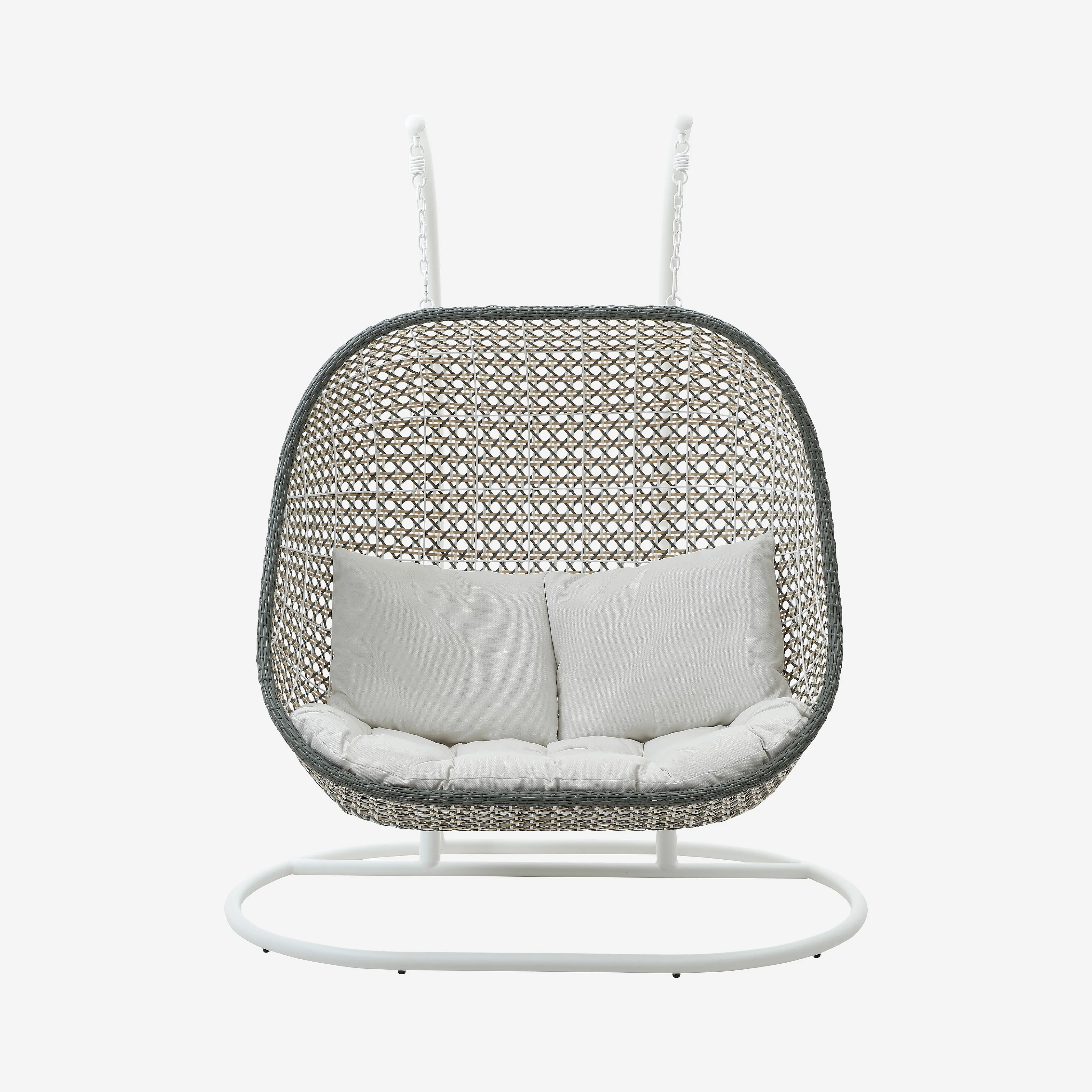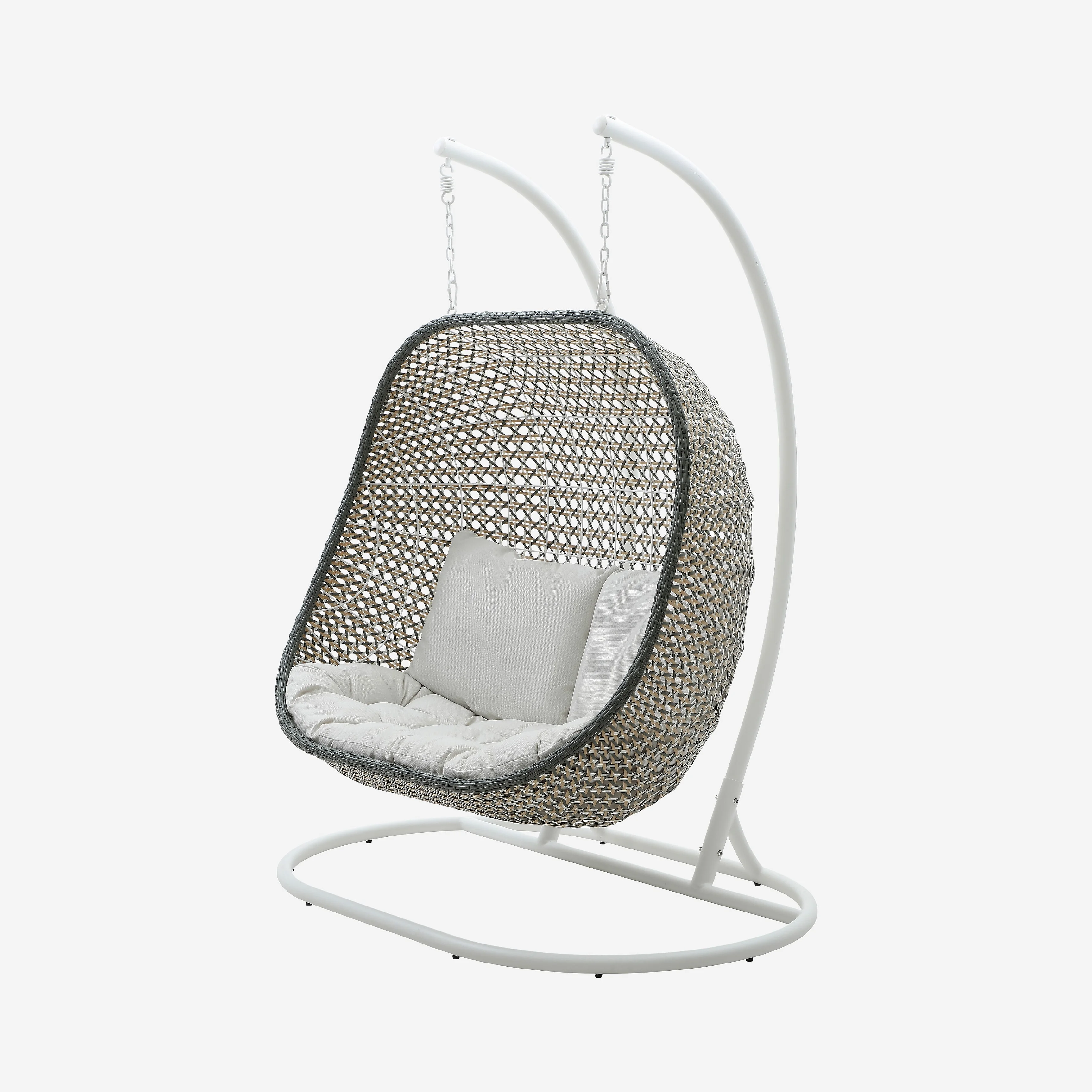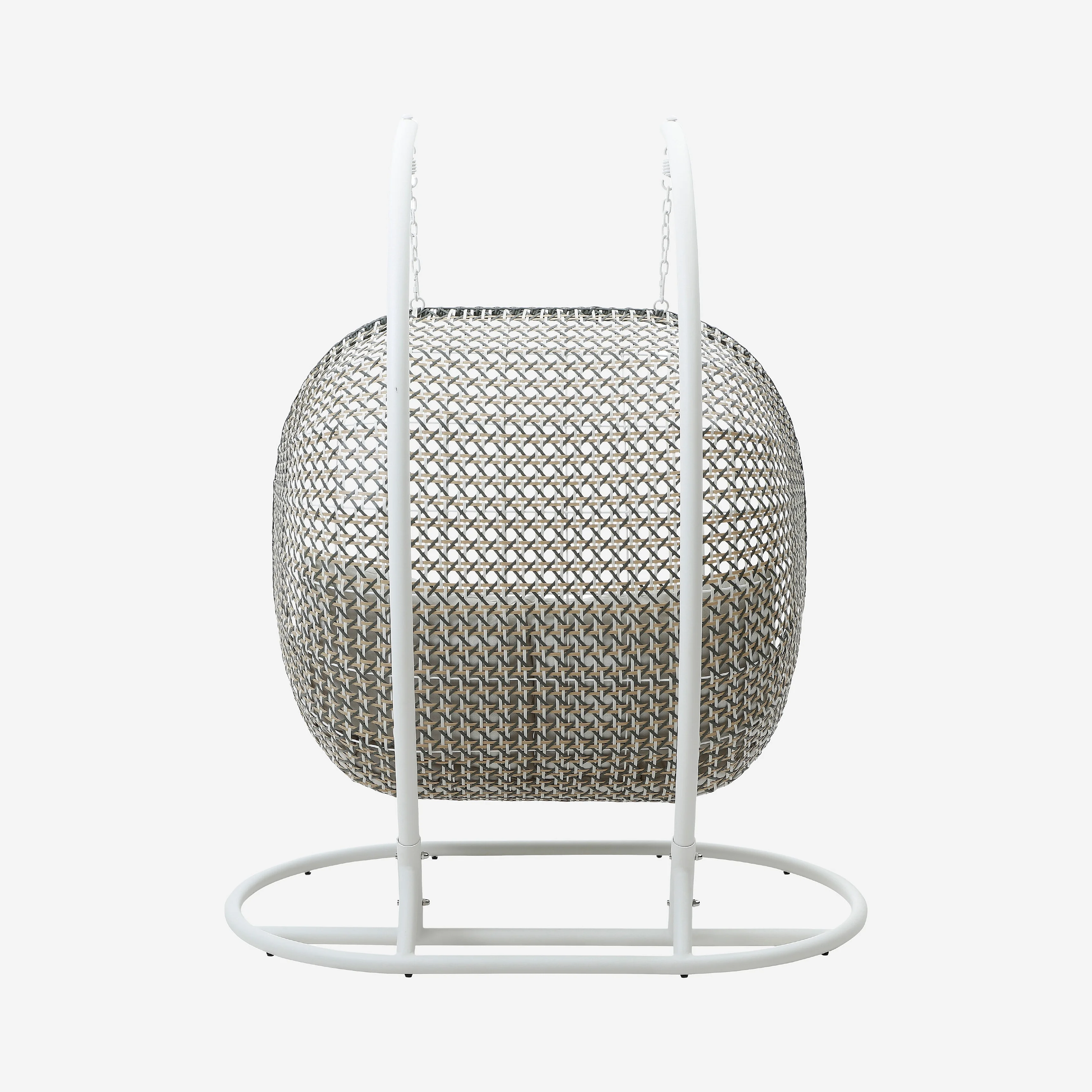 Fauteuil suspendu 2 places pour extérieur en résine tressée - Vert kaki et blanc
