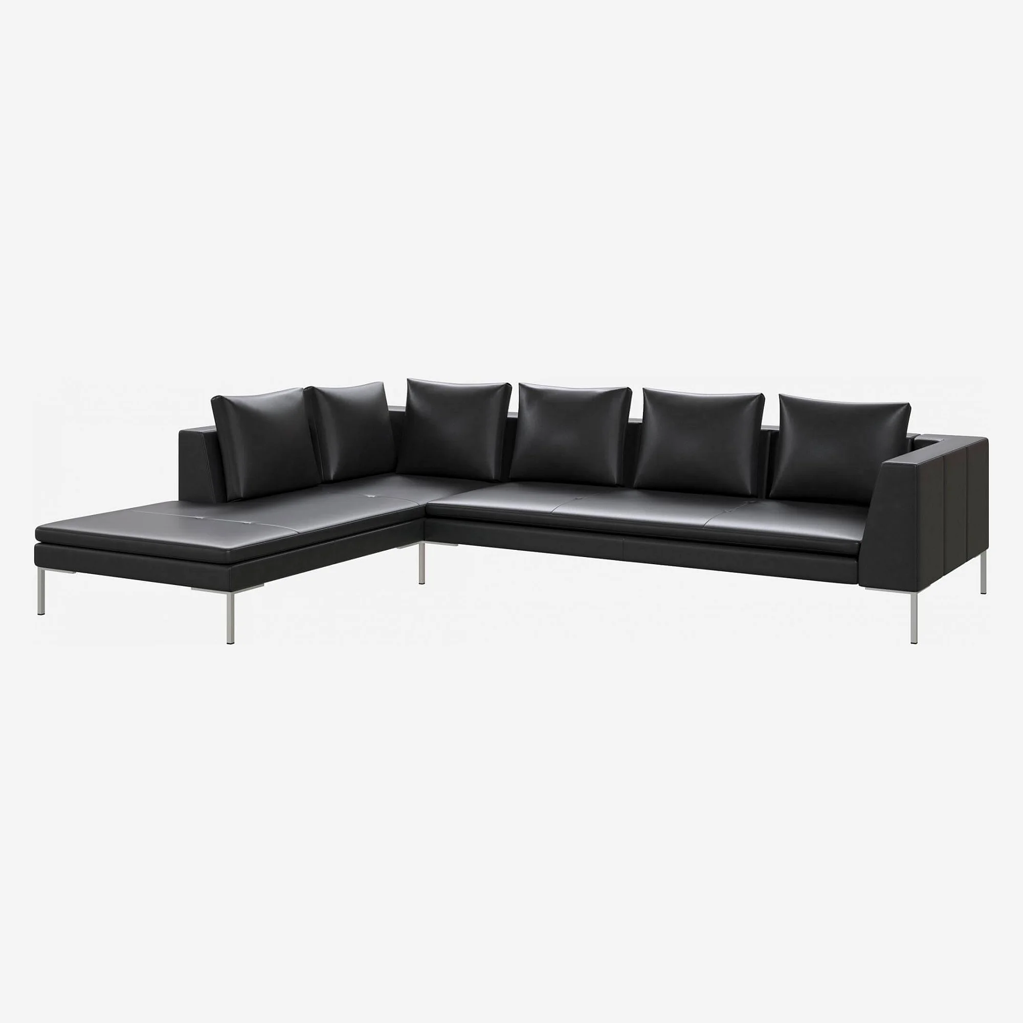 Grand canapé d'angle gauche en cuir Savoy - Noir obsidienne