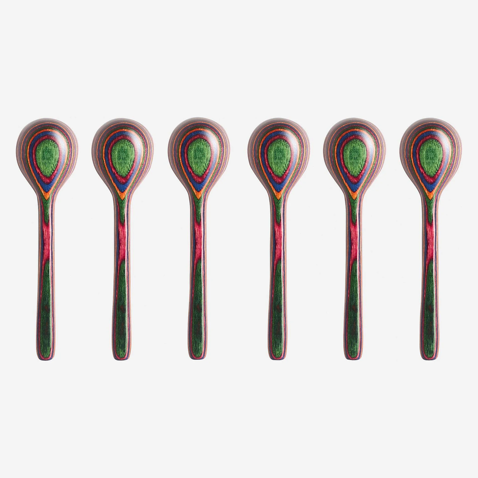 Lot de 6 cuillères à café en bois de pakka - Multicolore