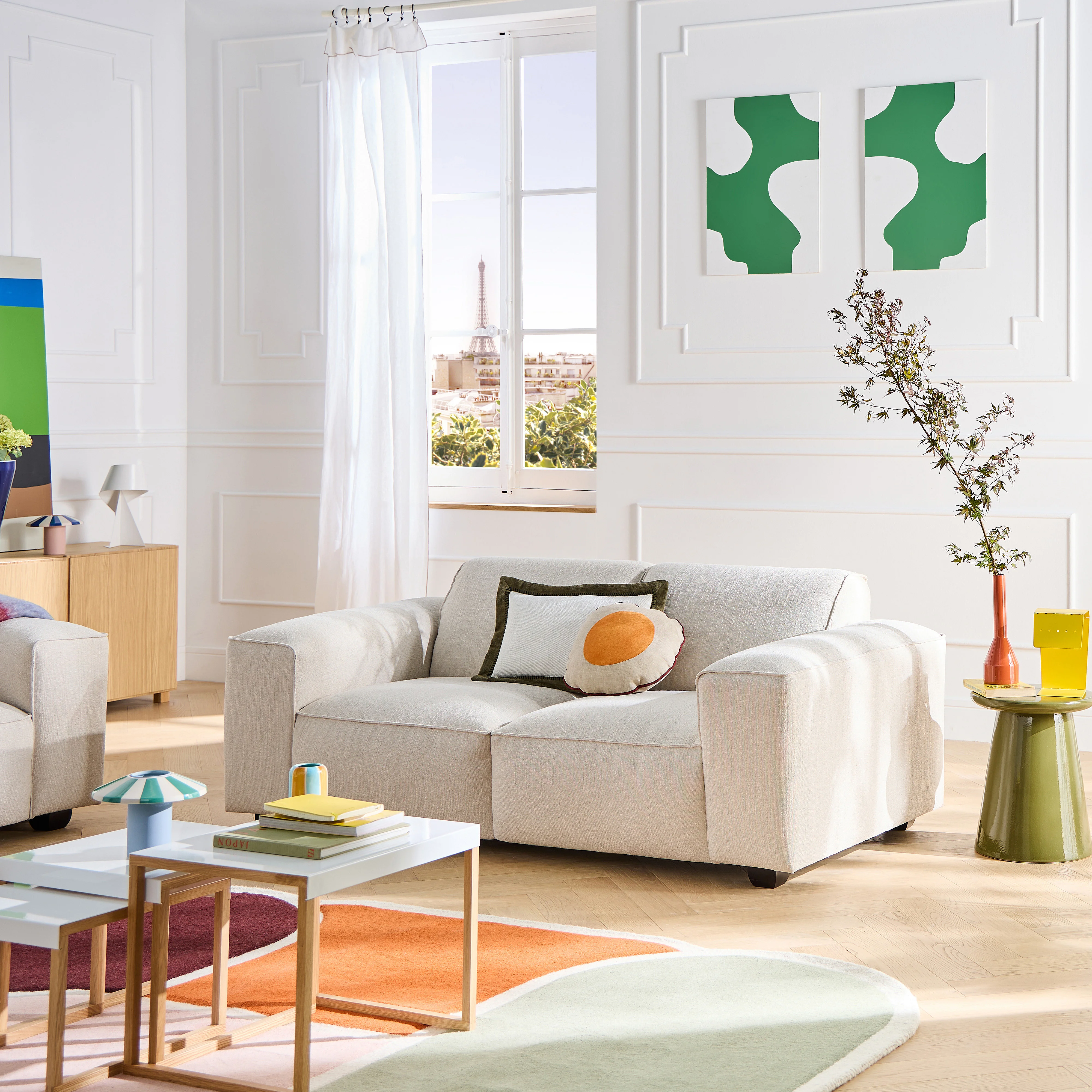 Canapé 2 places en tissu bouclette courte Mira - Marron noisette