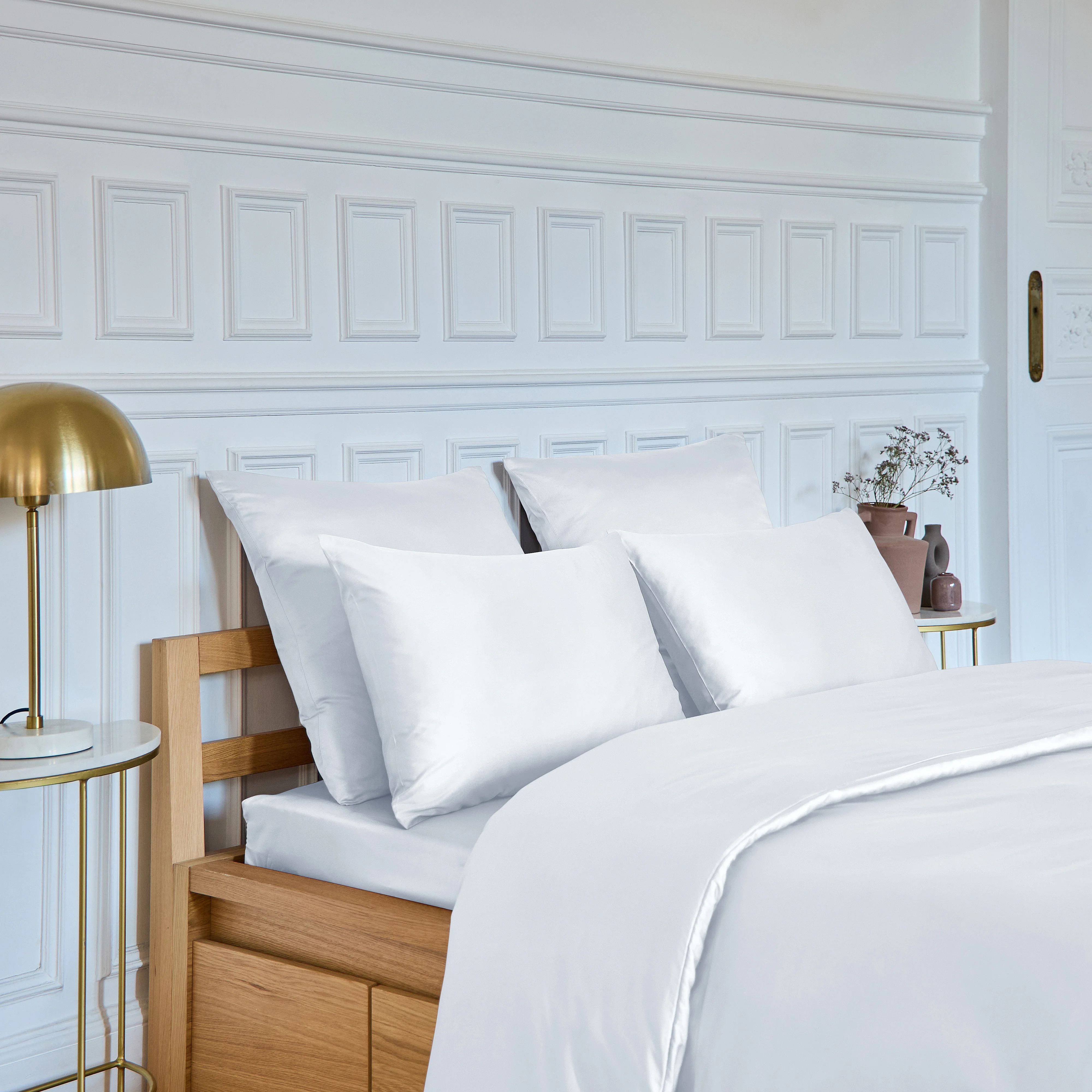 La fodera per materasso Alexane sublima il letto con la morbidezza setosa del satin di cotone. La sua delicata finitura garantisce comfort ed eleganza ogni notte.