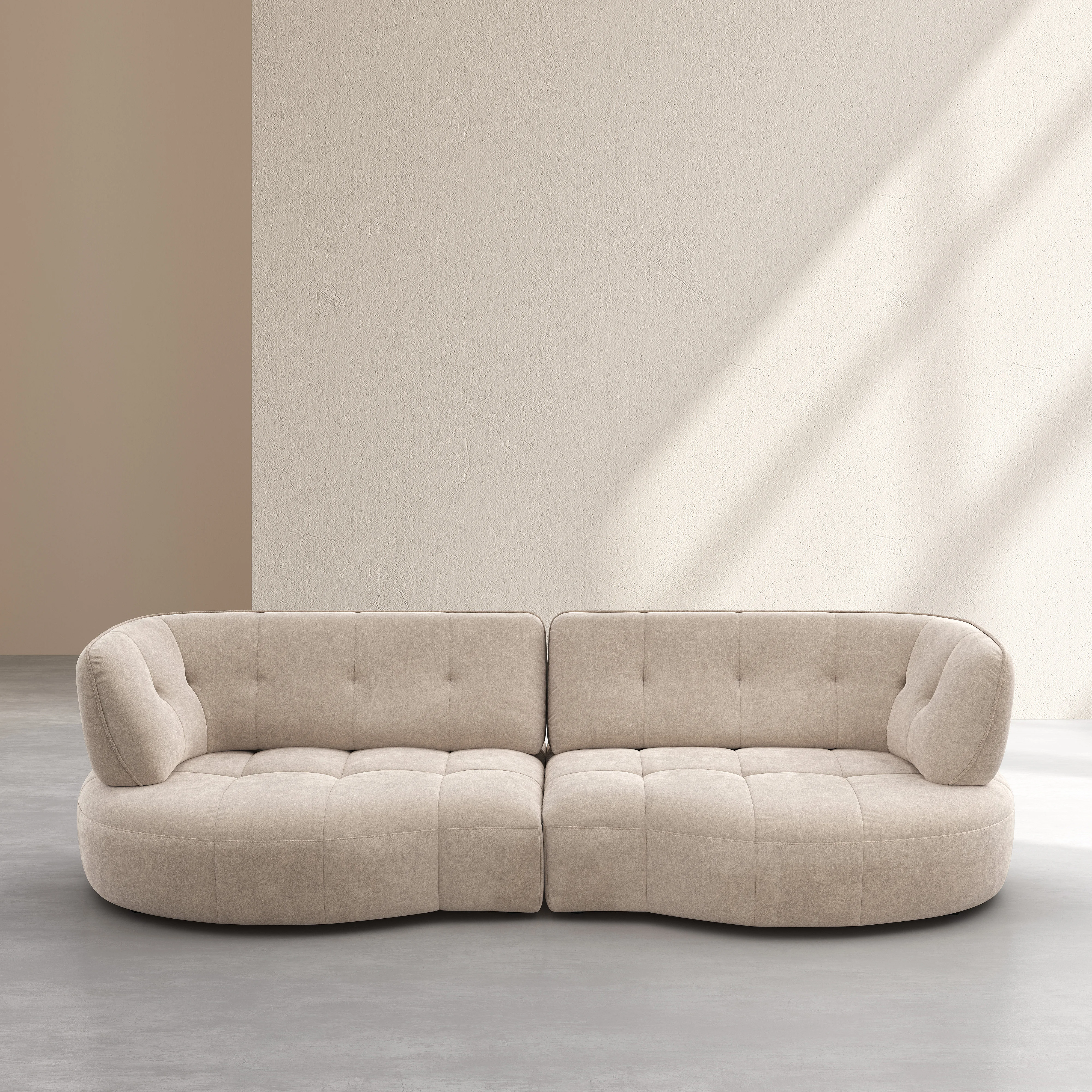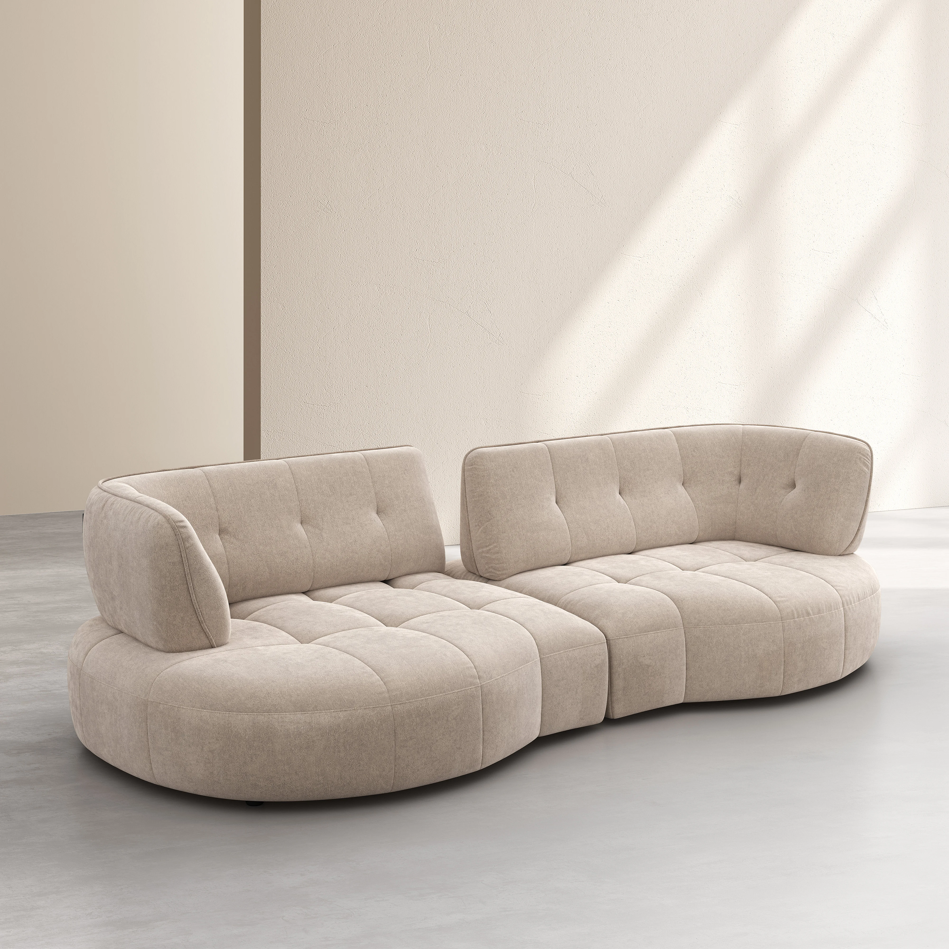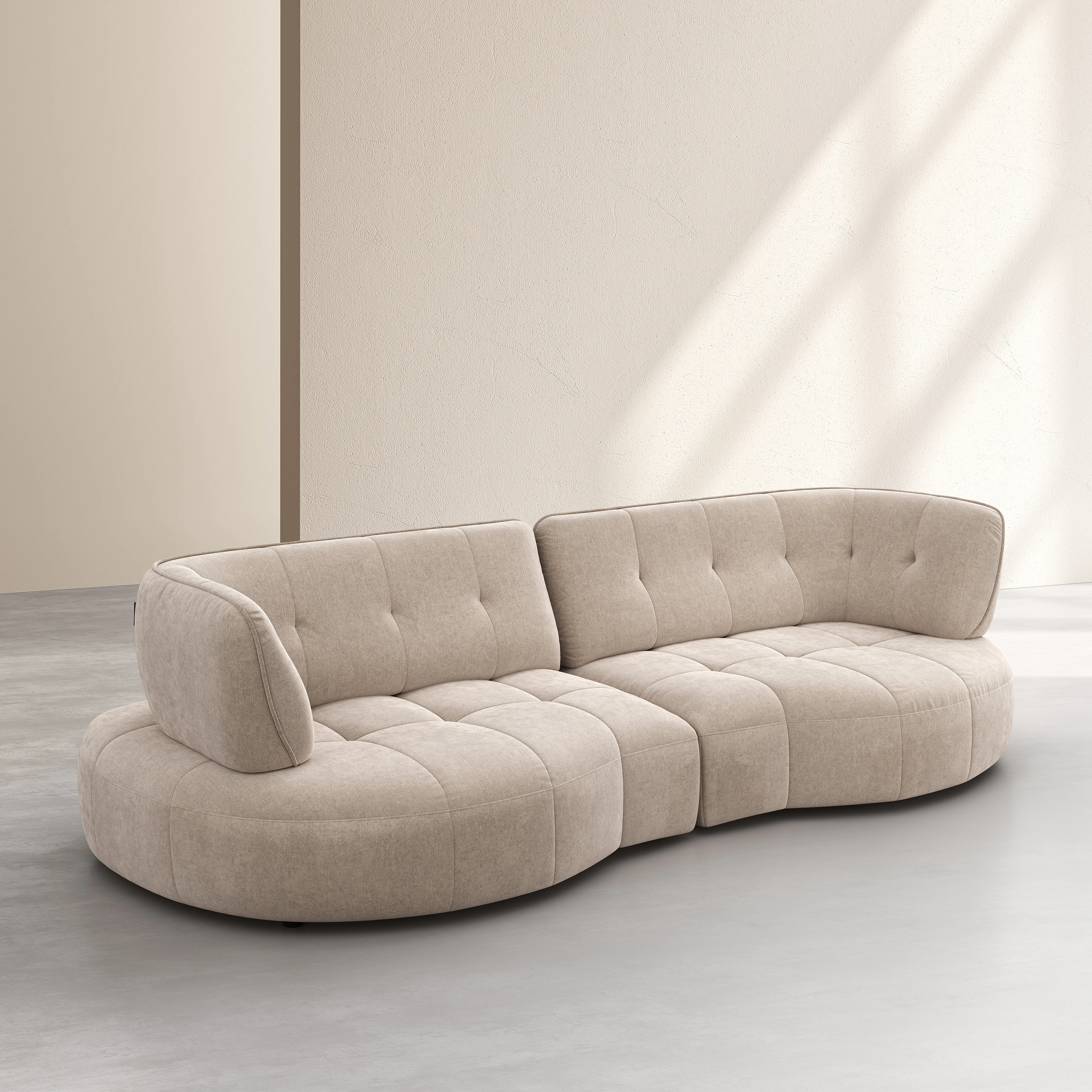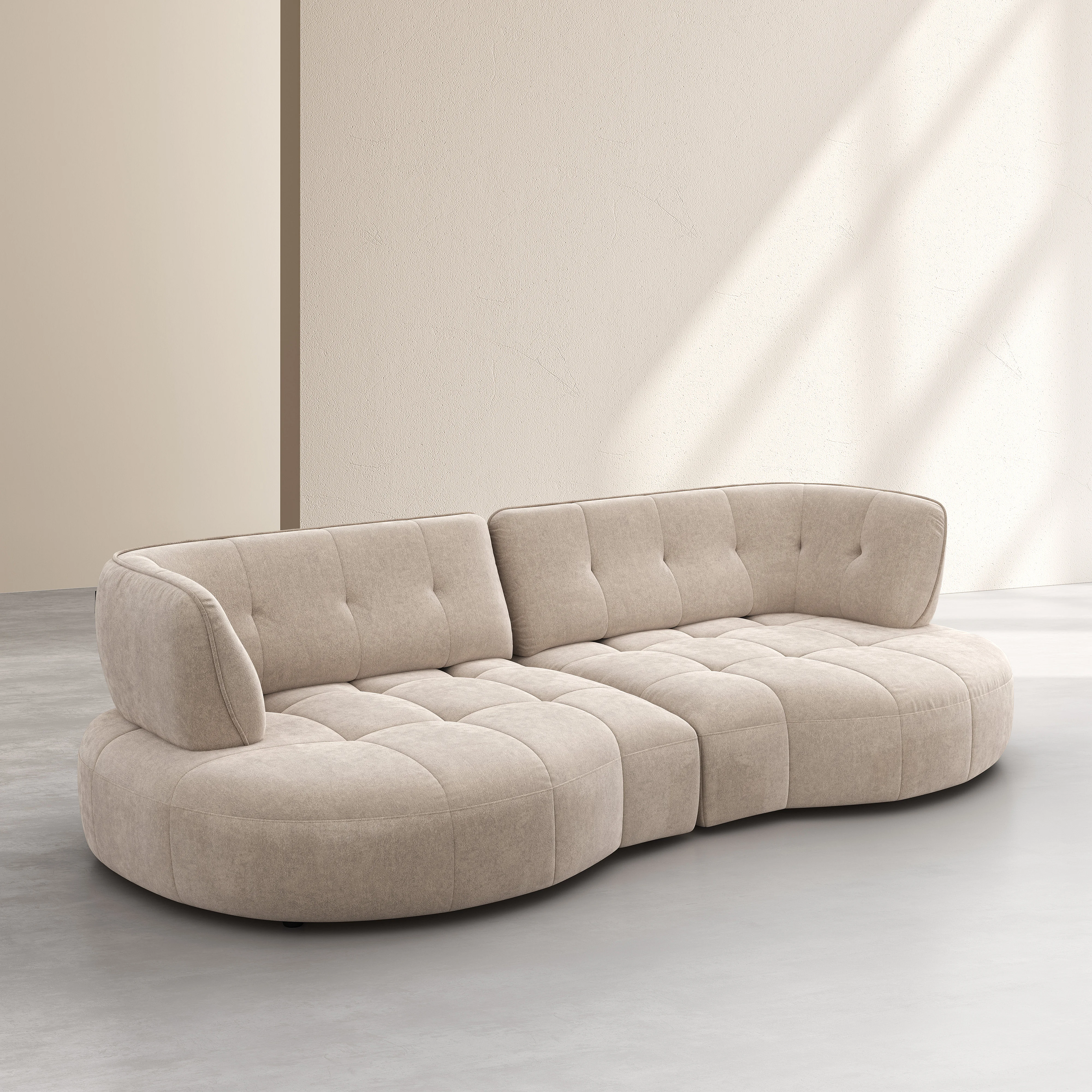 Il divano Alizée combina linee morbide e schienale avanti-indietro per un comfort quotidiano. La sua finitura trapuntata sottolinea un design elegante, pensato per strutturare lo spazio con carattere.