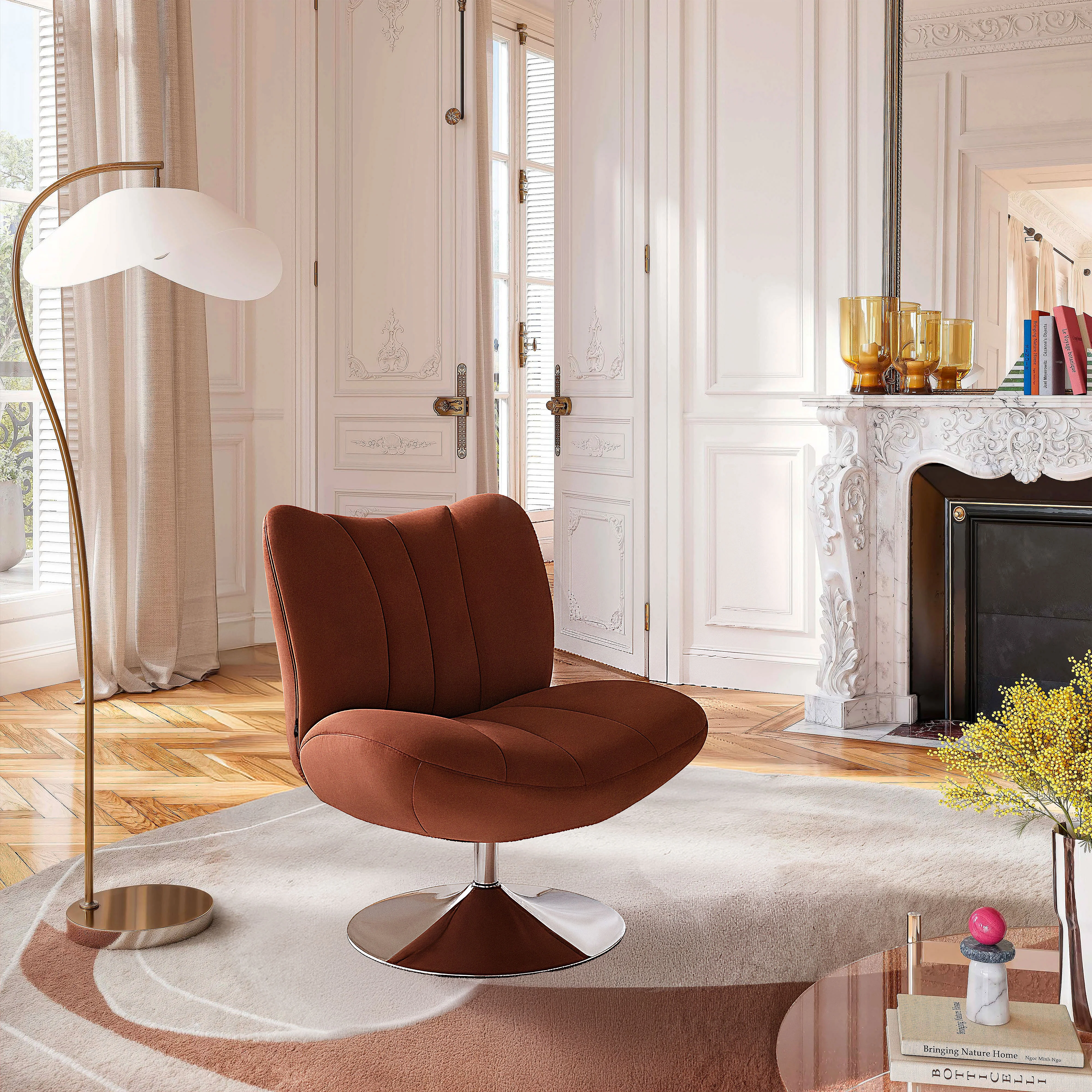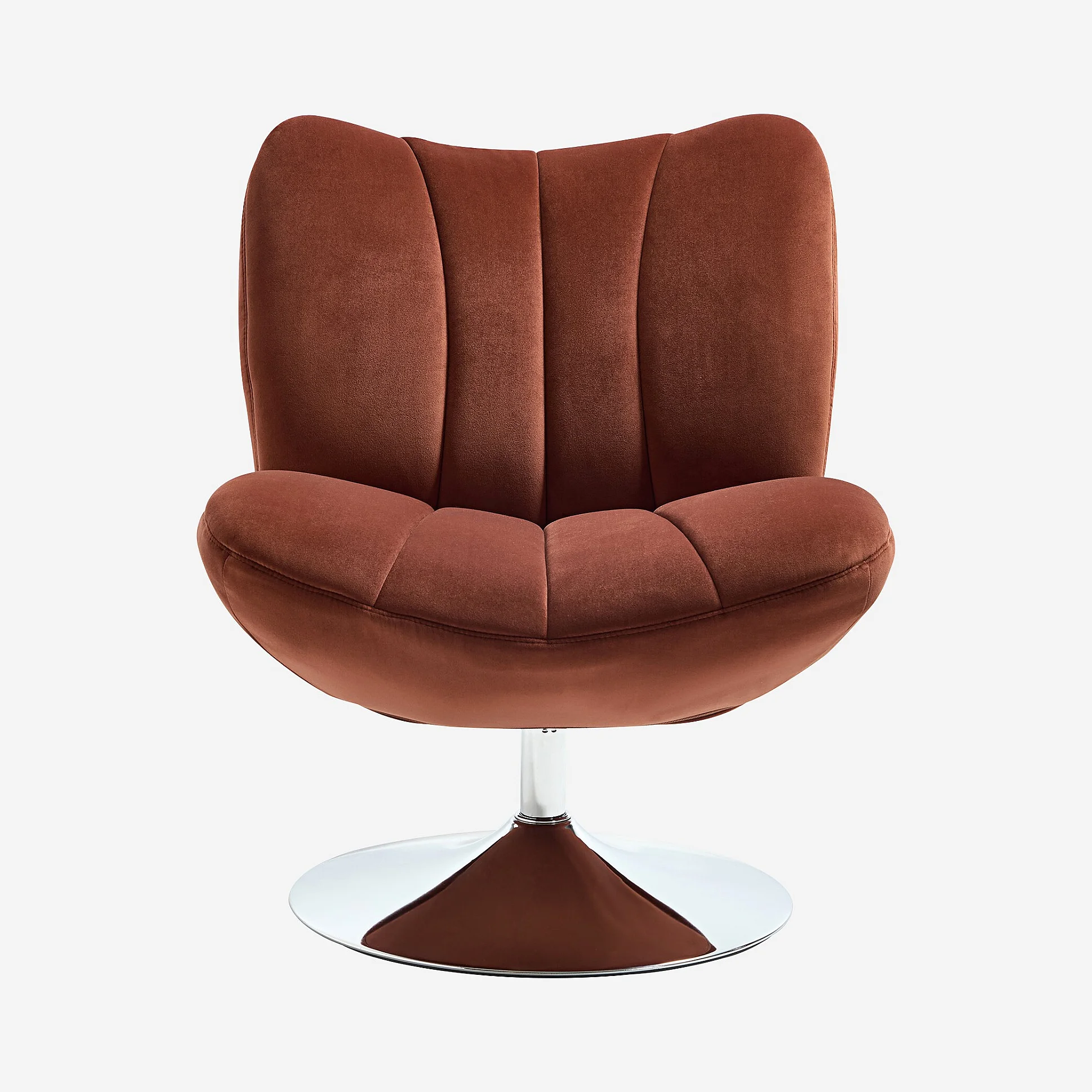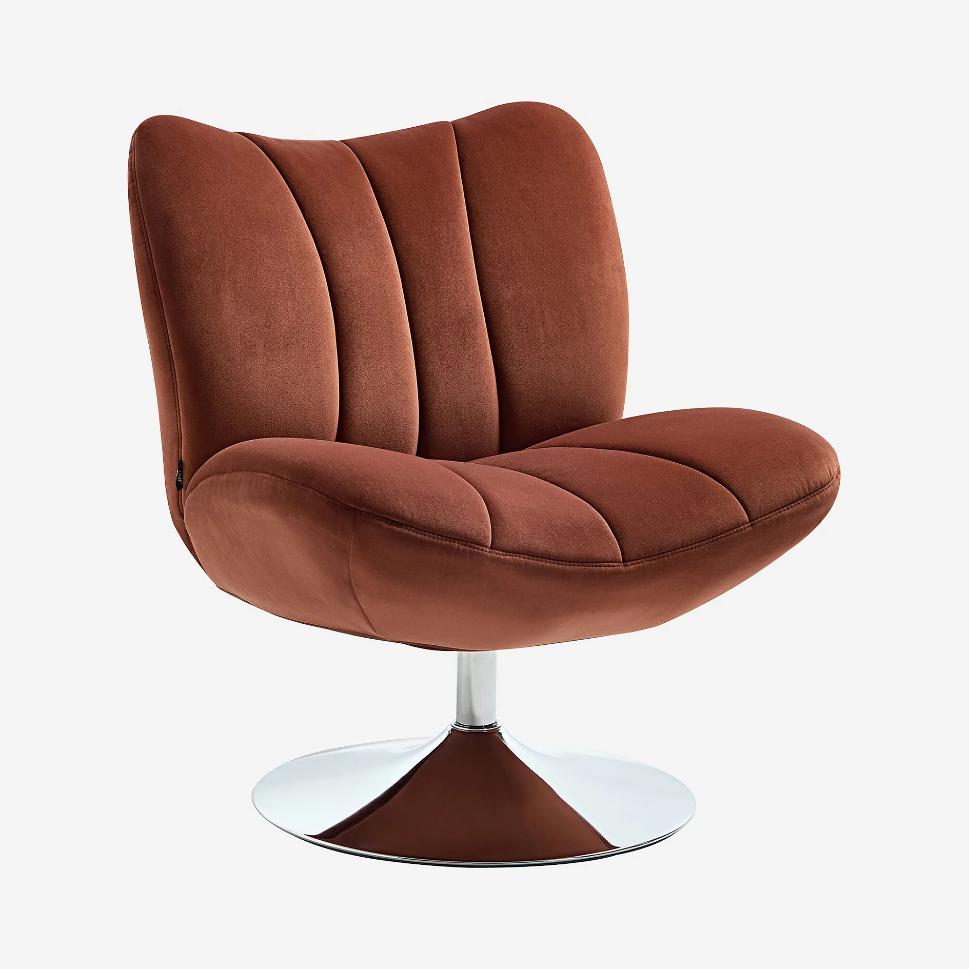 Poltrona girevole imbottita in tessuto e metallo cromato - Terracotta