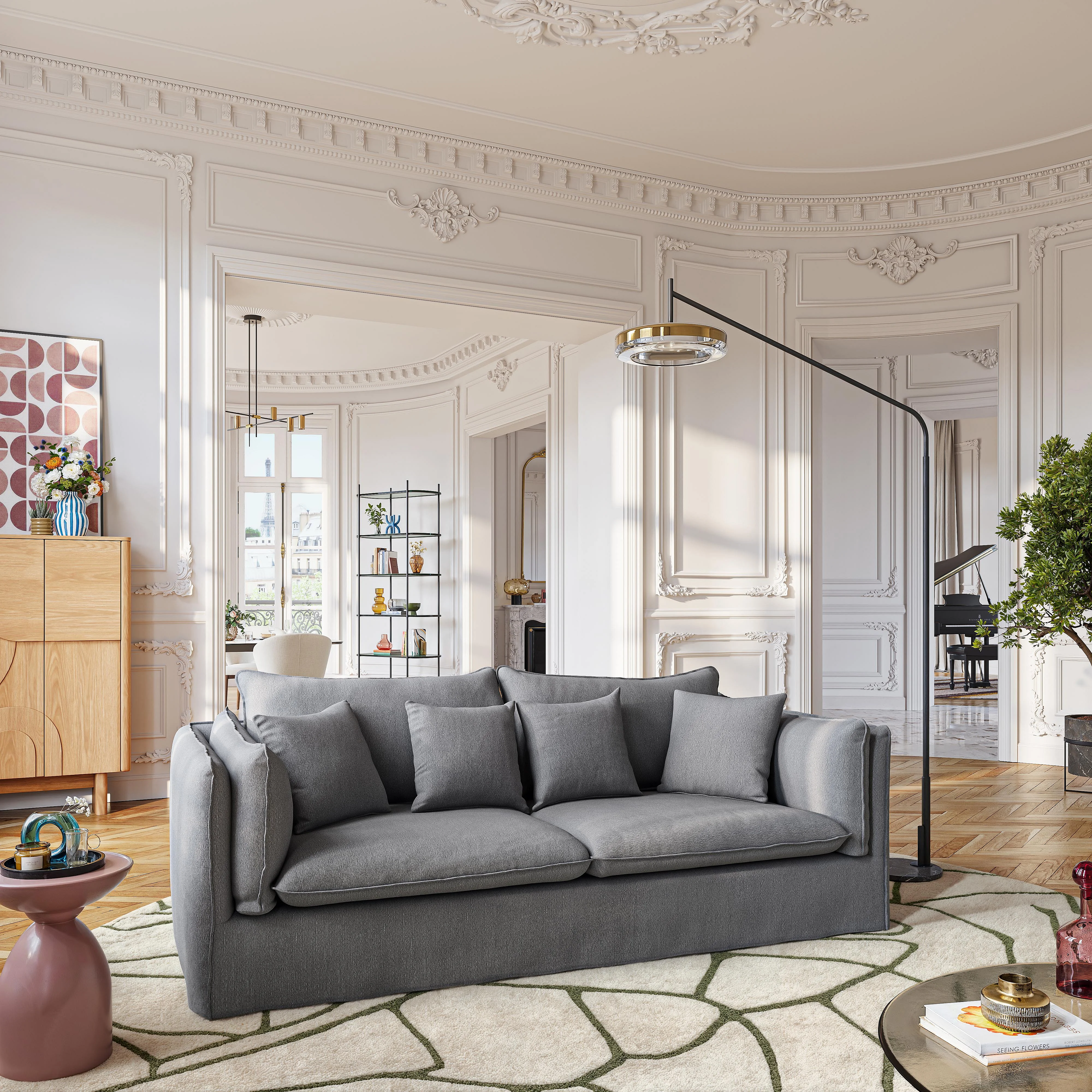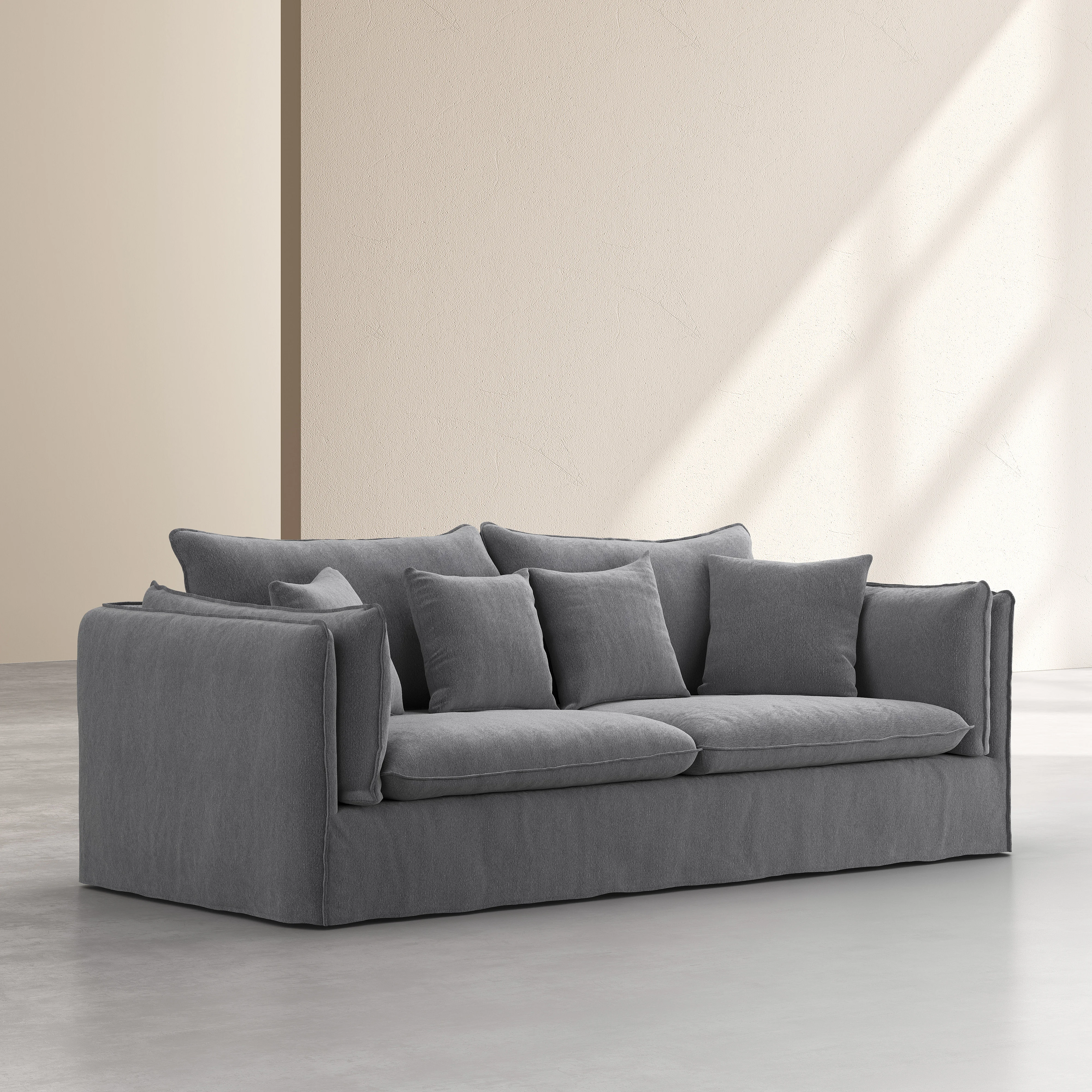 Divano 3 posti sfoderabile in cotone e lino - Grigio ardesia