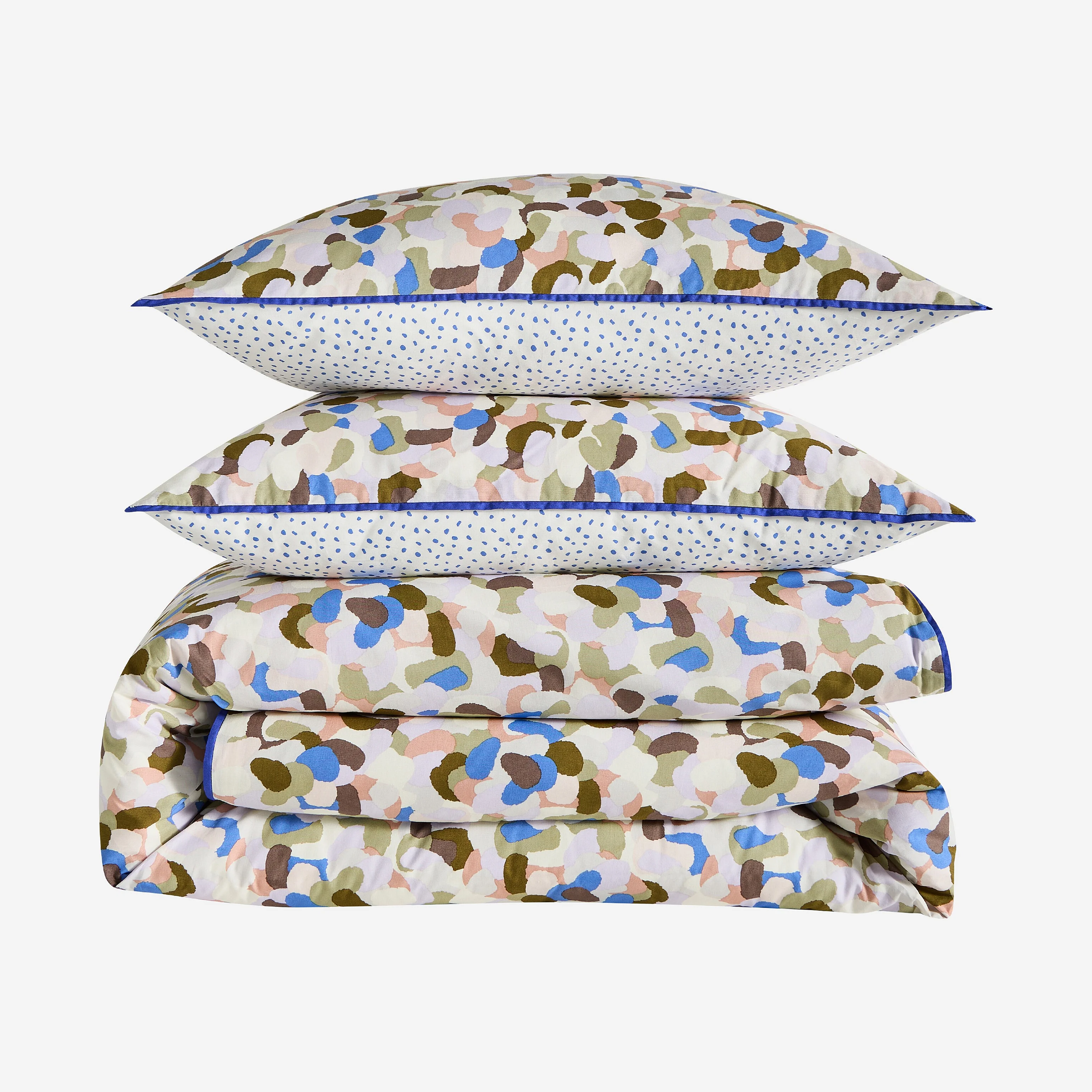Certificata OEKO-TEX e GOTS, Aubin gioca su forme astratte e sfumature delicate per infondere un tocco espressivo alla camera da letto. In percalle di cotone biologico, questa parure unisce morbidezza, comodità ed eleganza discreta.