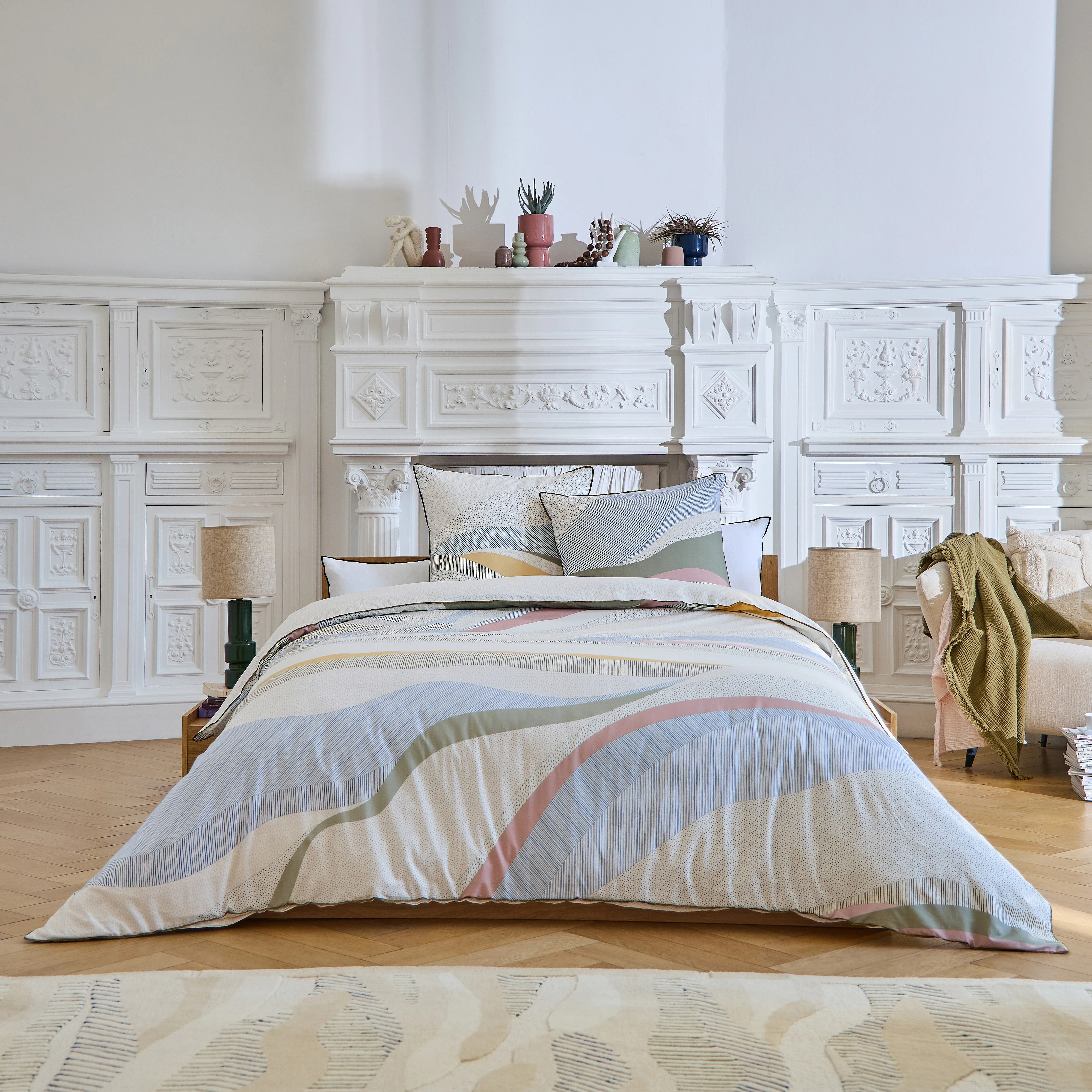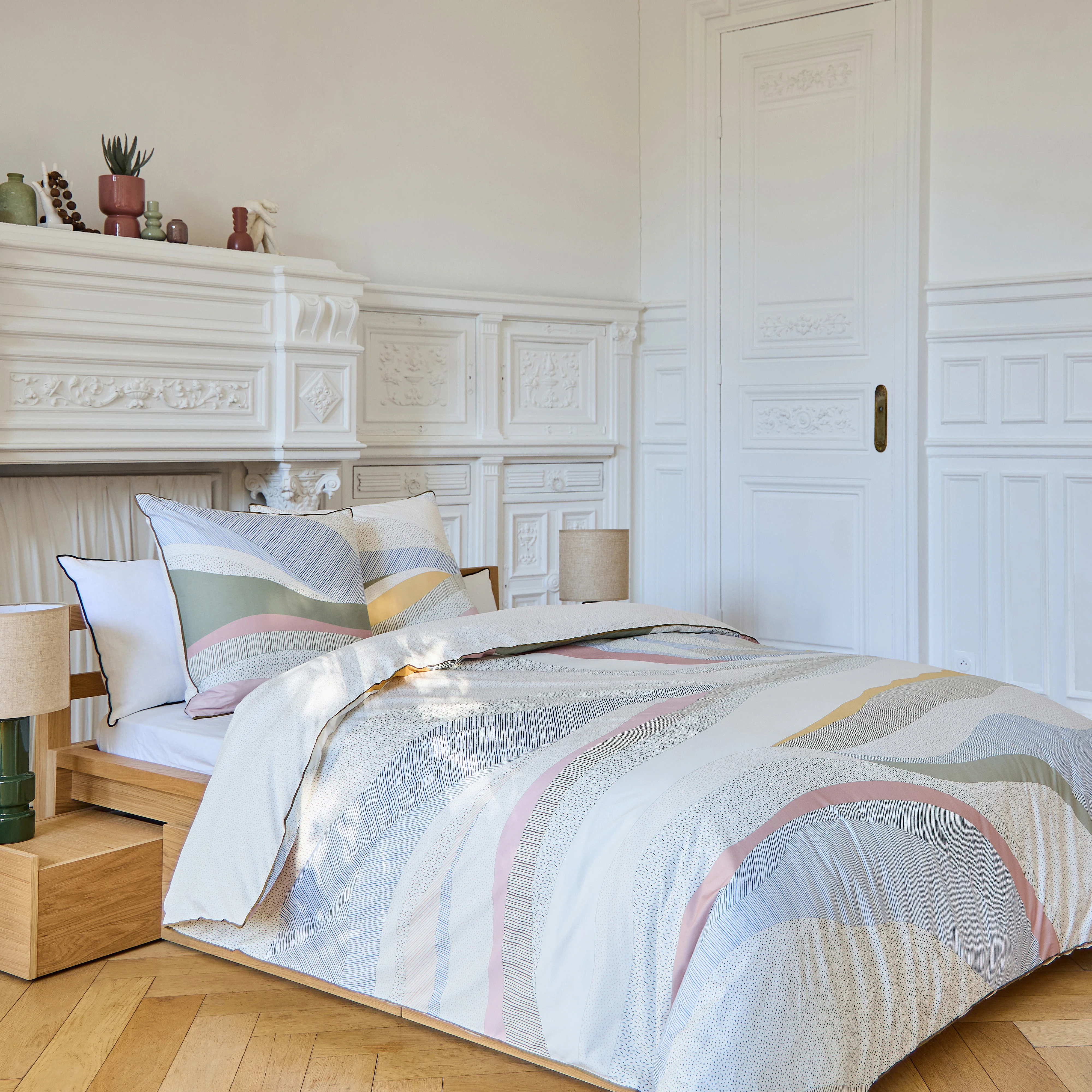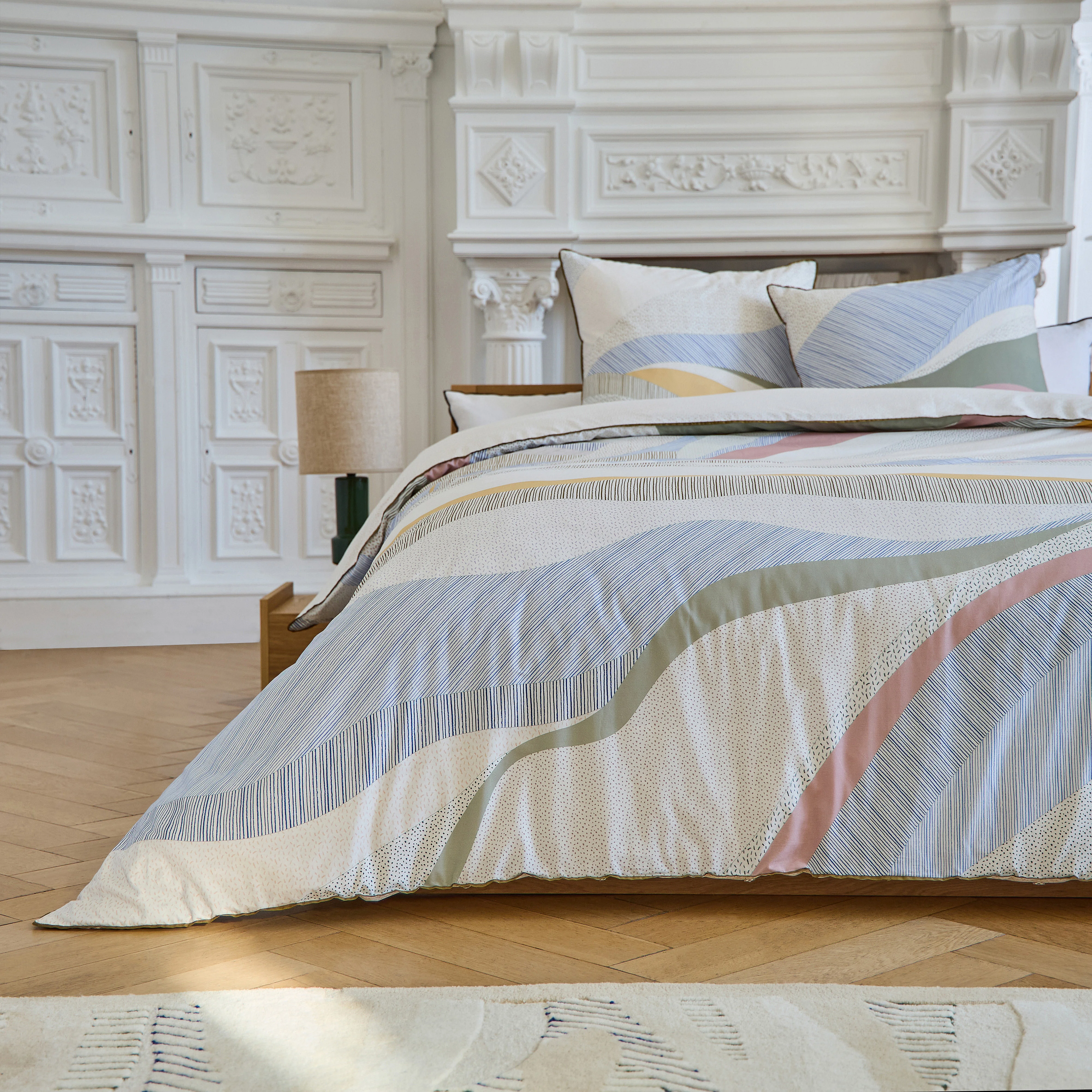 Certificata OEKO-TEX e GOTS, la parure da letto Azélie apporta un tocco grafico e poetico alla camera da letto con le sue linee fluide e i sottili contrasti. In percalle di cotone biologico, unisce morbidezza, eleganza e comfort quotidiano.