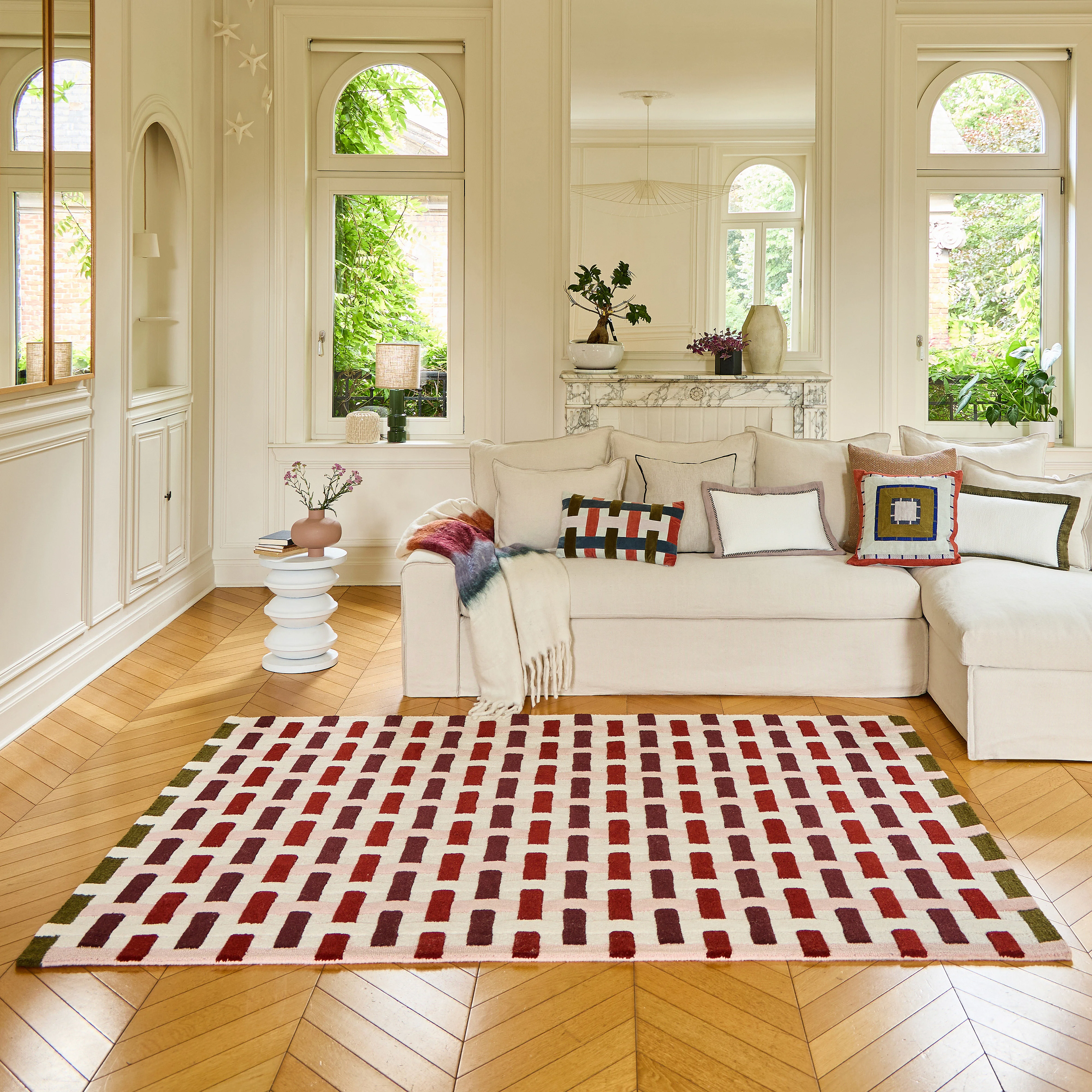 Bertin esalta la maestria artigianale indiana con una lana taftata ricca di colori. Ideato da Floriane Jacques, trova posto nei salotti di design e moderni come un pezzo imprescindibile.