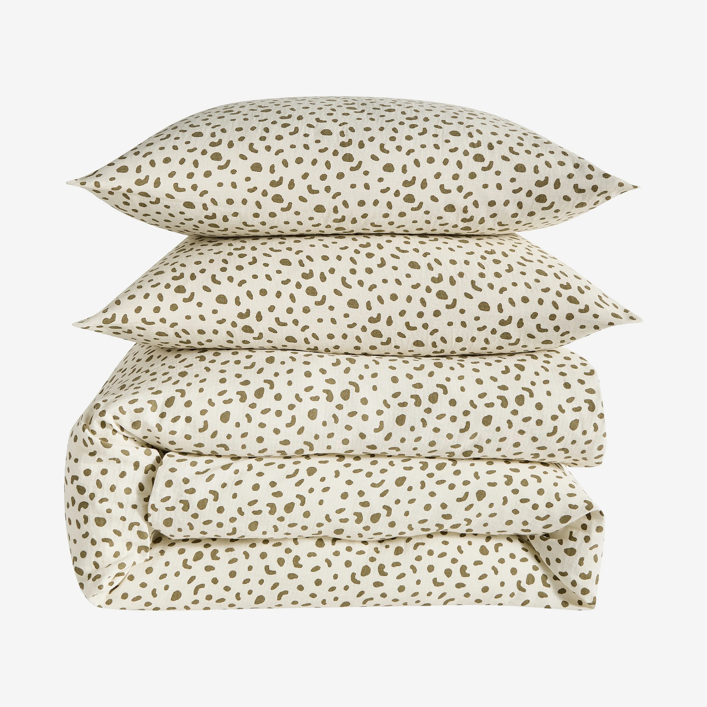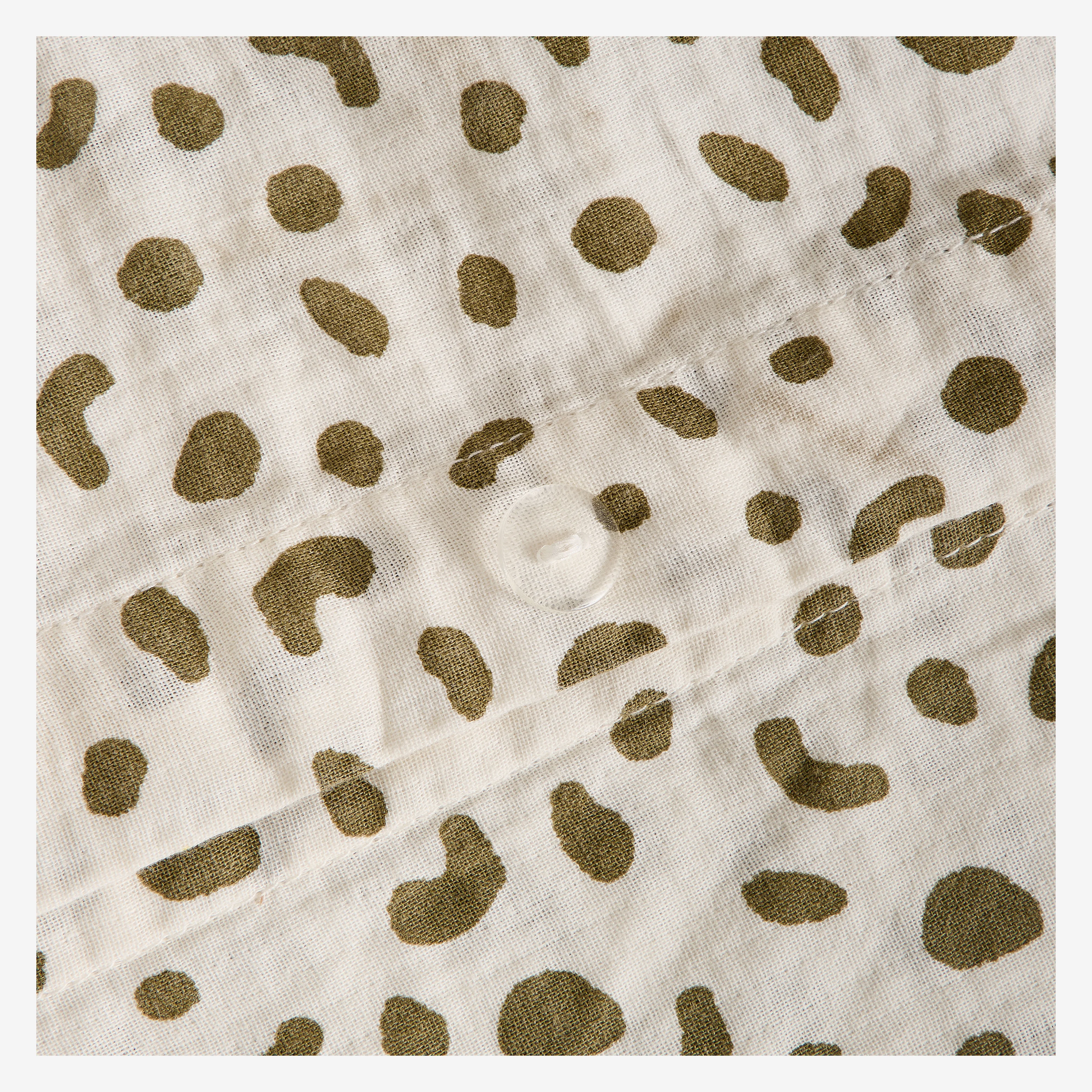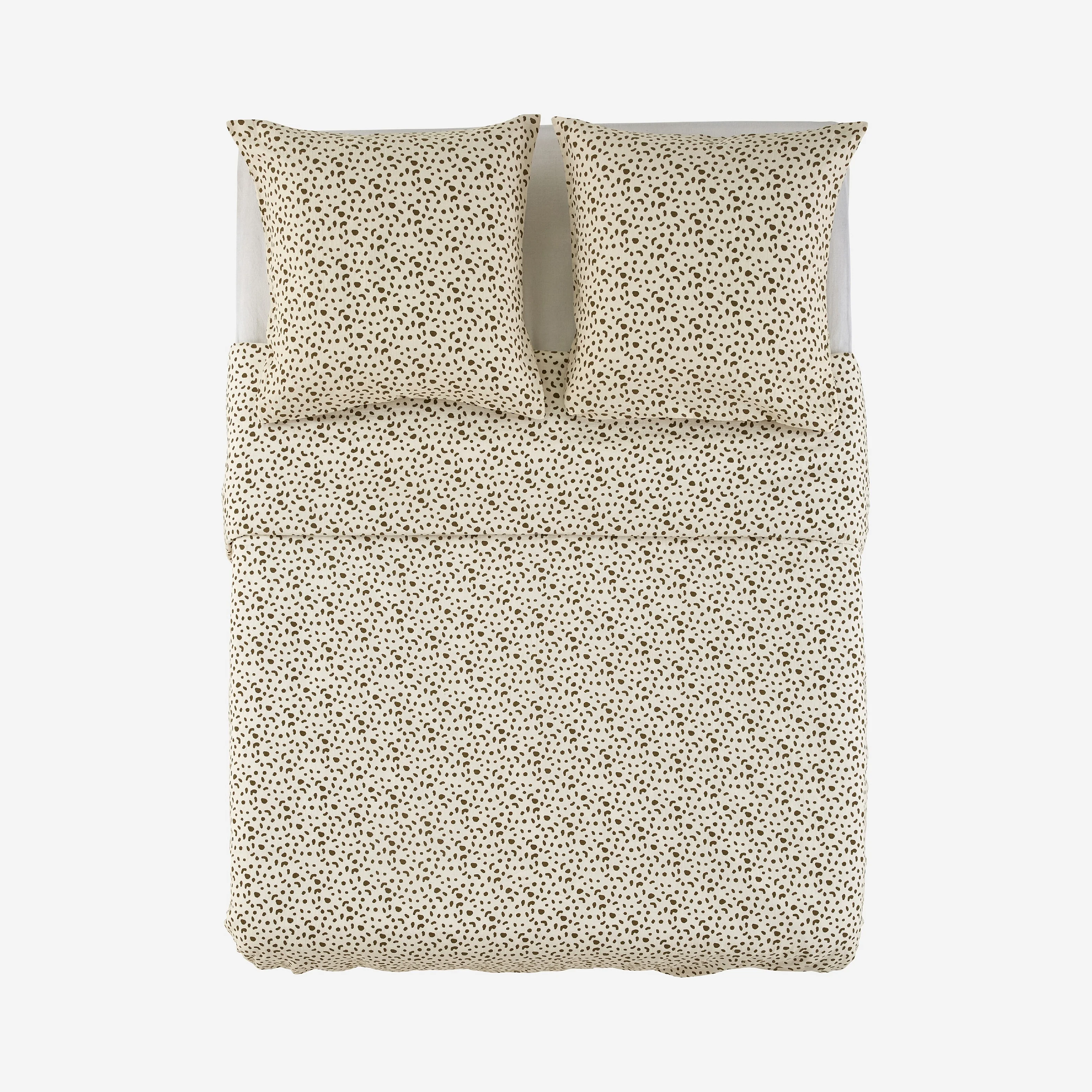 Il completo letto Briac gioca sulla leggerezza della doppia garza di cotone e un motivo a pois rivisitato per creare un'atmosfera morbida e contemporanea. Un equilibrio sottile tra modernità, comfort e delicatezza.