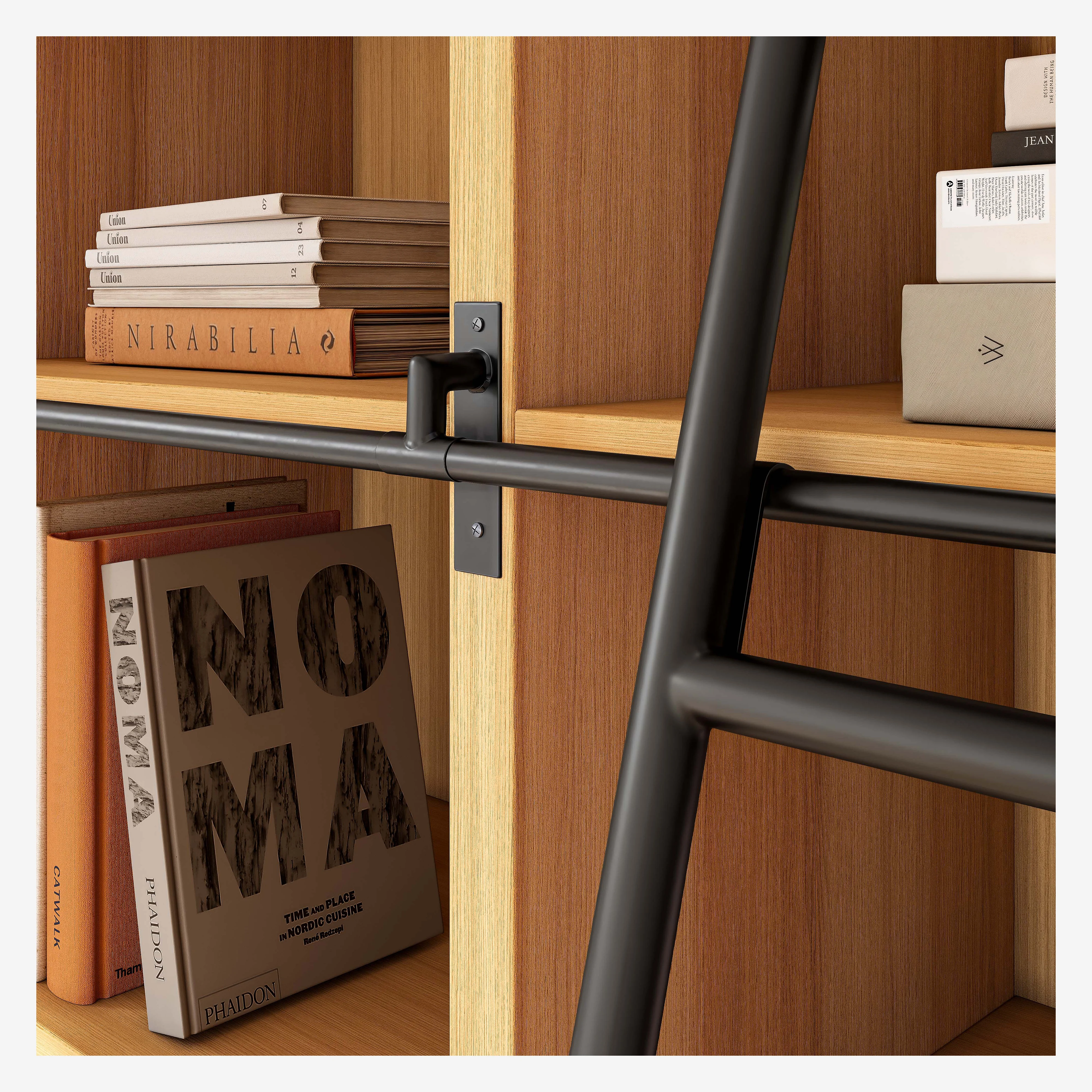 Grande libreria in rovere con scala mobile - Naturale - Design by Hélèna Pille