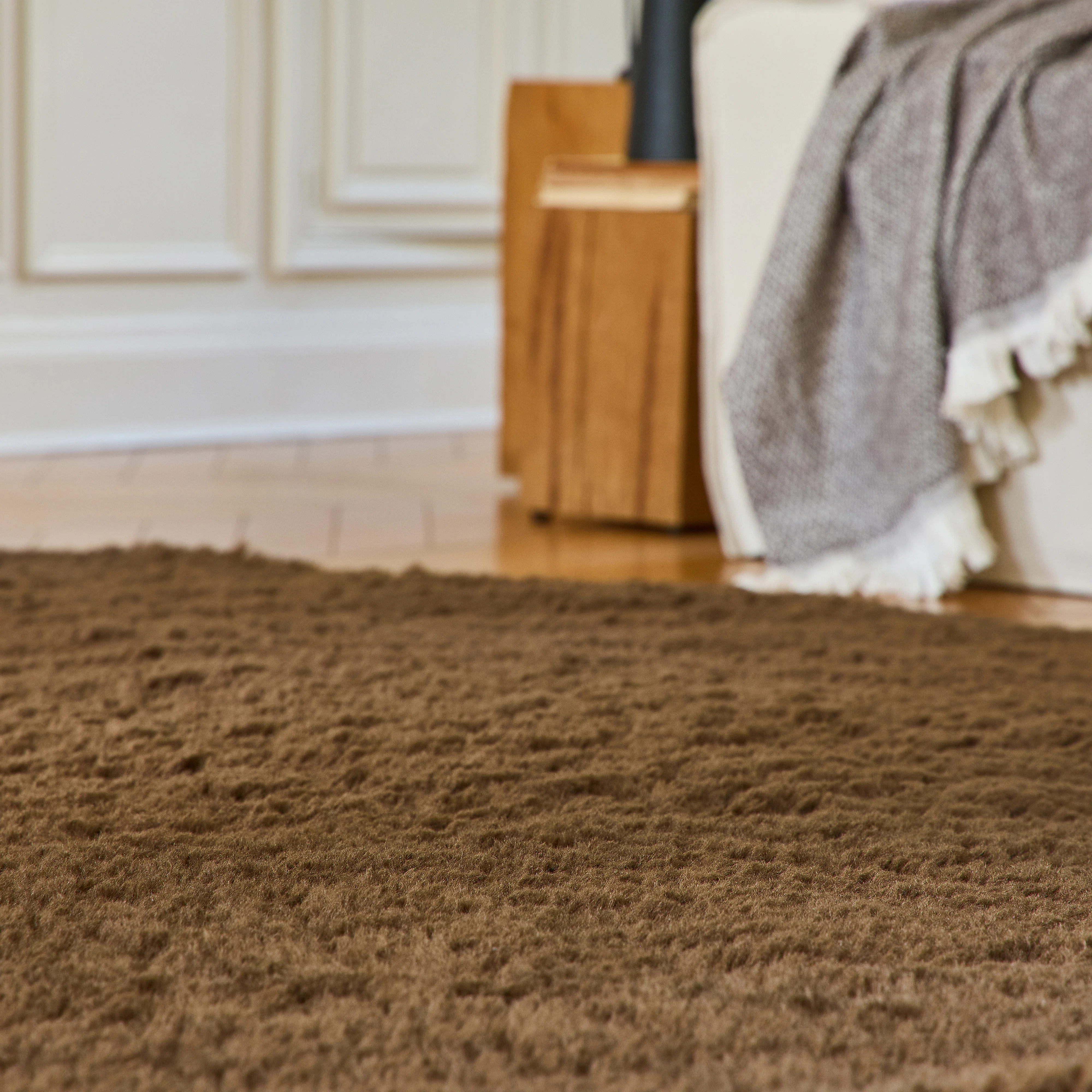 In marrone profondo e finitura pelliccia, il tappeto Cazimir attira lo sguardo con la sua fitta texture e il suo aspetto confortevole. Un pezzo che struttura lo spazio avvolgendolo di calore.