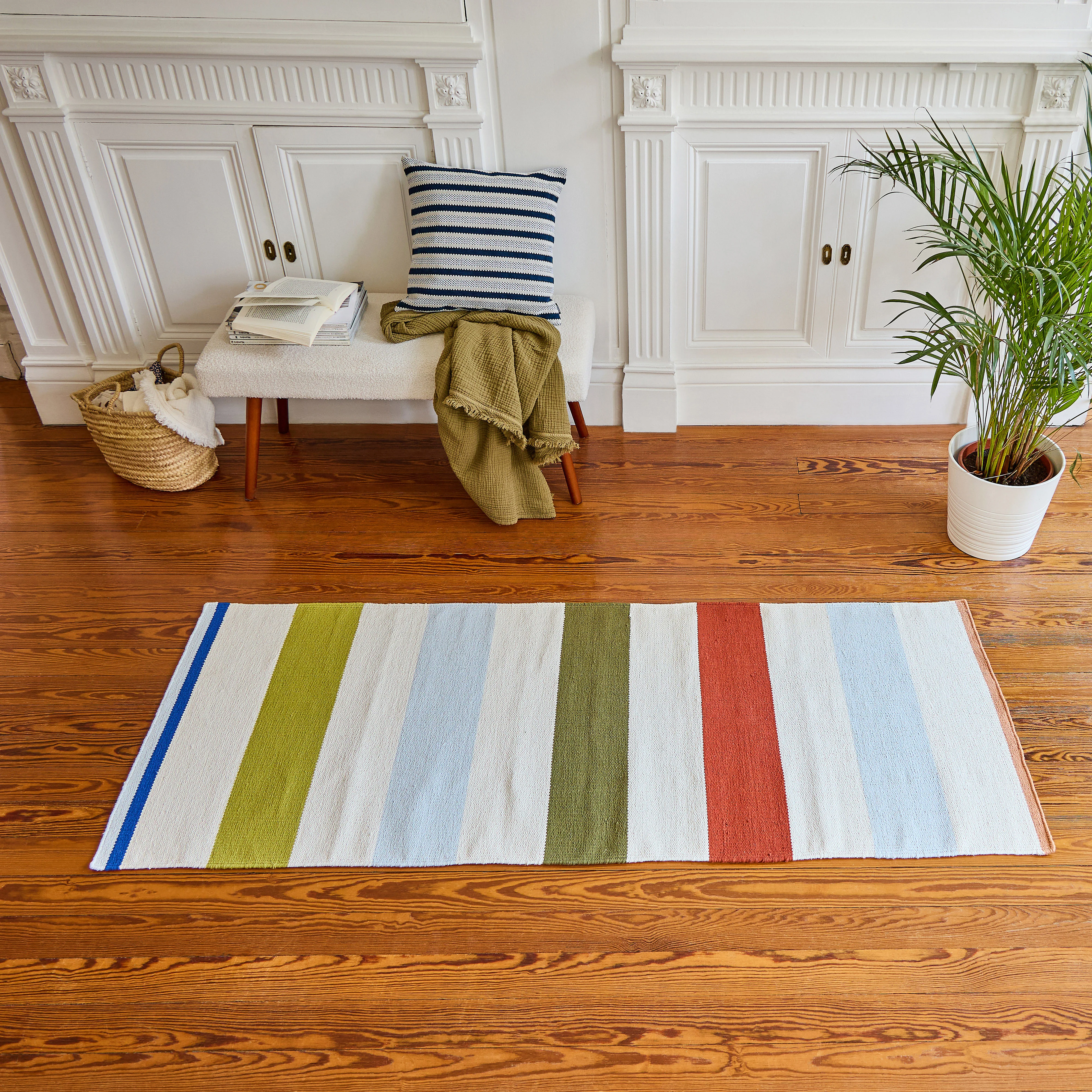 Con le sue ampie strisce ispirate agli spazi aperti, il tappeto Claudie infonde un'energia dolce e naturale in casa. In cotone leggero, unisce modernità grafica e serenità semplice.