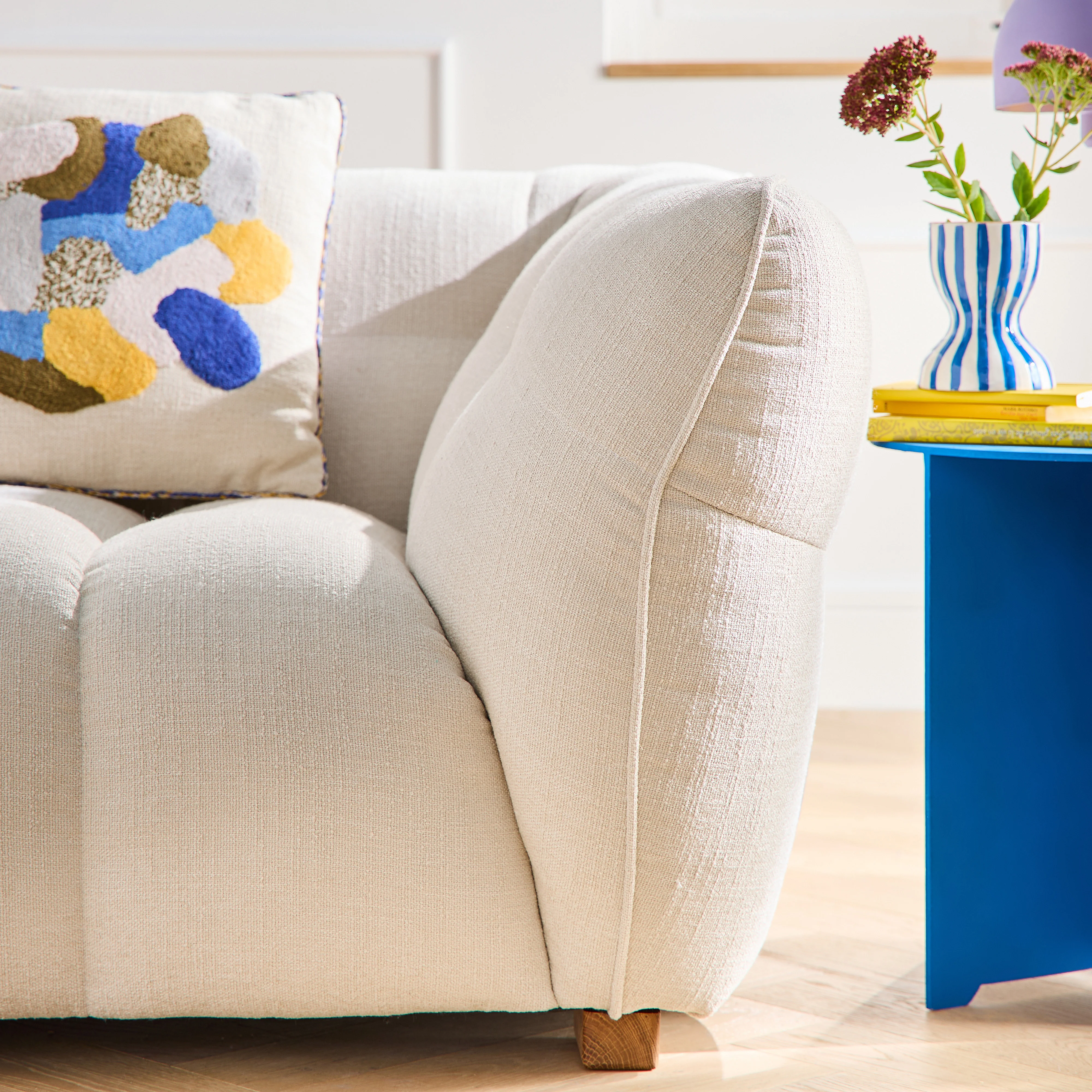 Dalvi seduce per la sua silhouette audace e la sua seduta generosa. Un divano dal design singolare, tra dolcezza visiva e comfort immersivo.