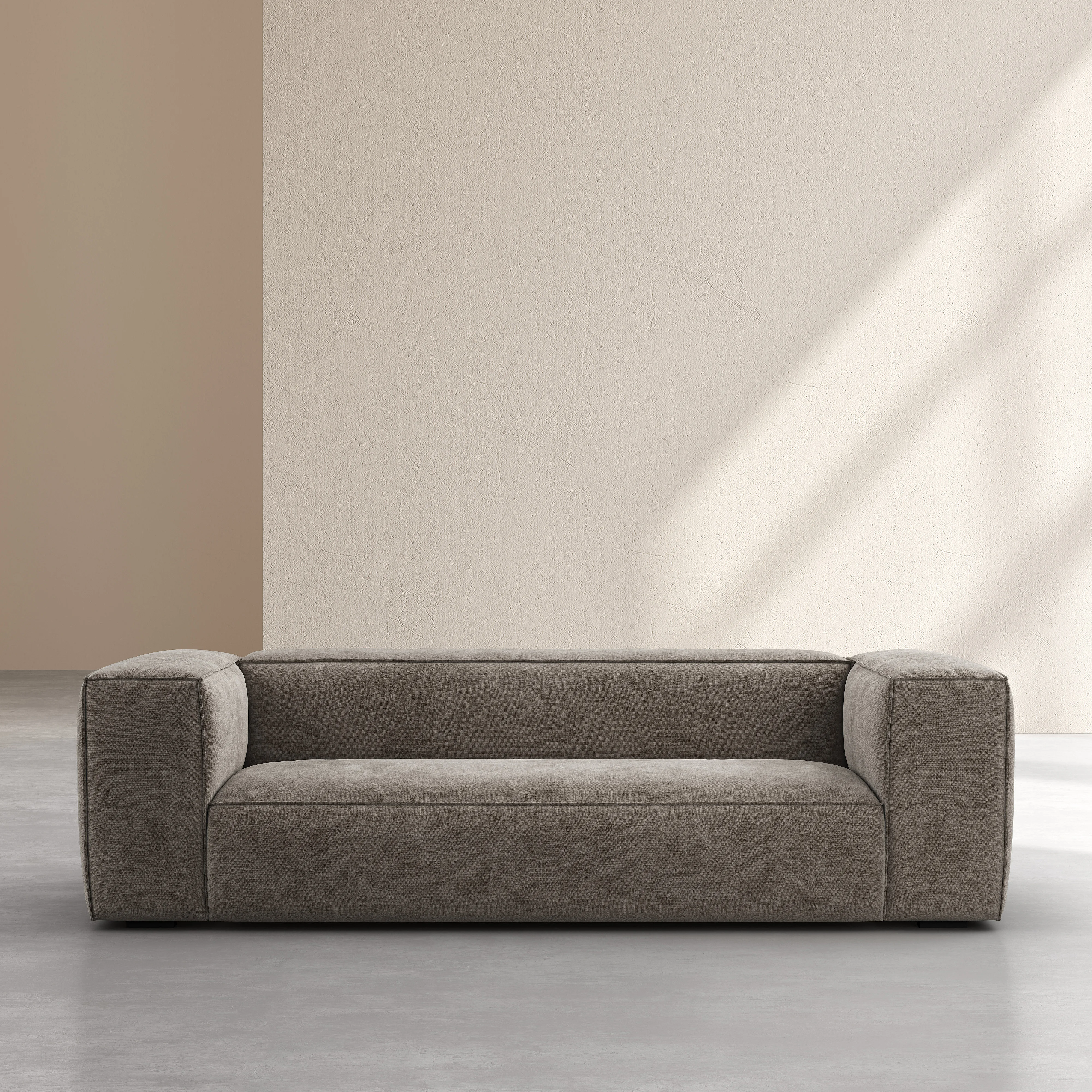 Edwin afferma una silhouette scultorea dalle linee generose e decise. Un divano dal design monoblocco, pensato come pezzo centrale del salotto.