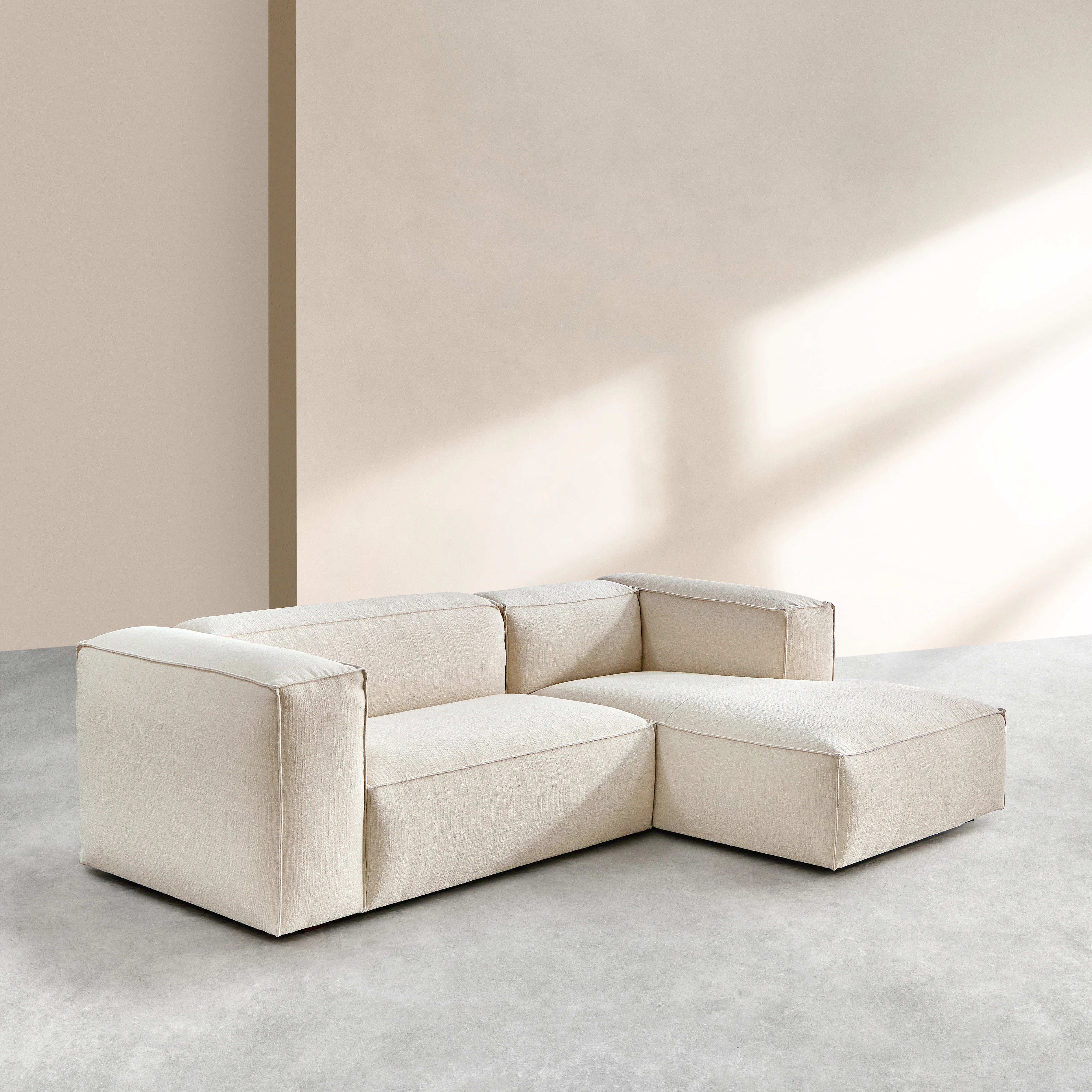 Divano angolare destro in tessuto bouclé corto Mira - Avorio