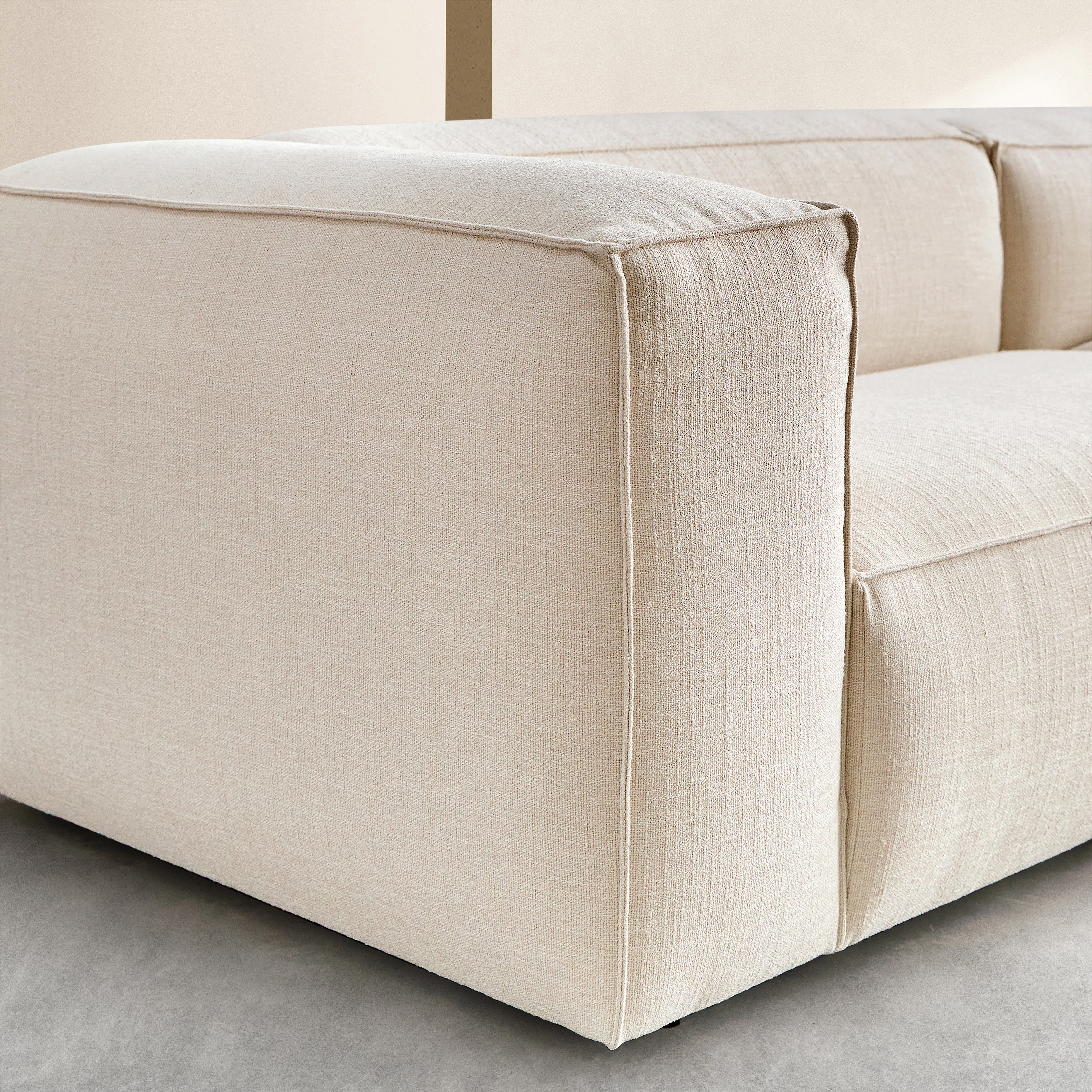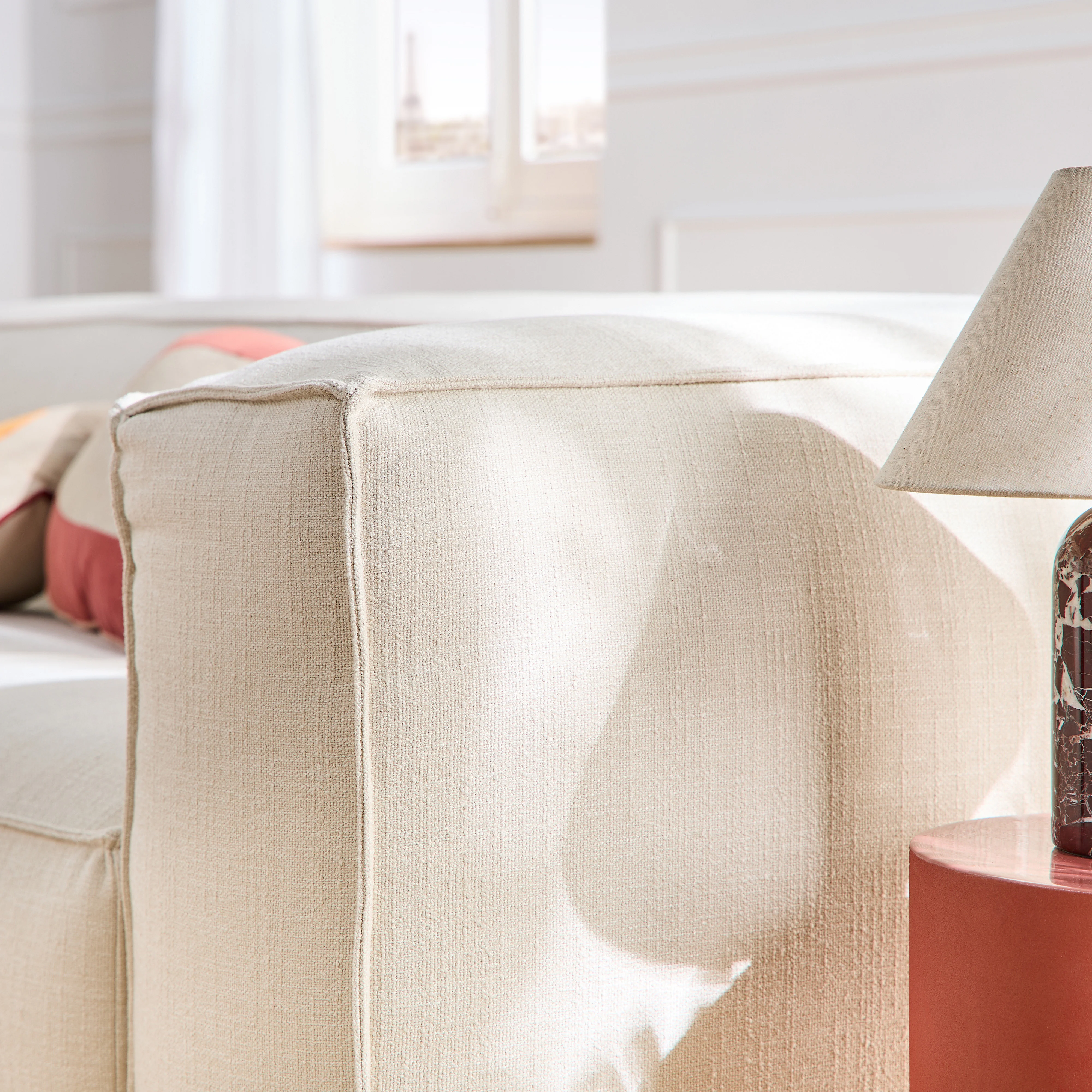 Edwin afferma una silhouette scultorea dalle linee generose e decise. Un divano dal design monoblocco, pensato come pezzo forte del soggiorno.
