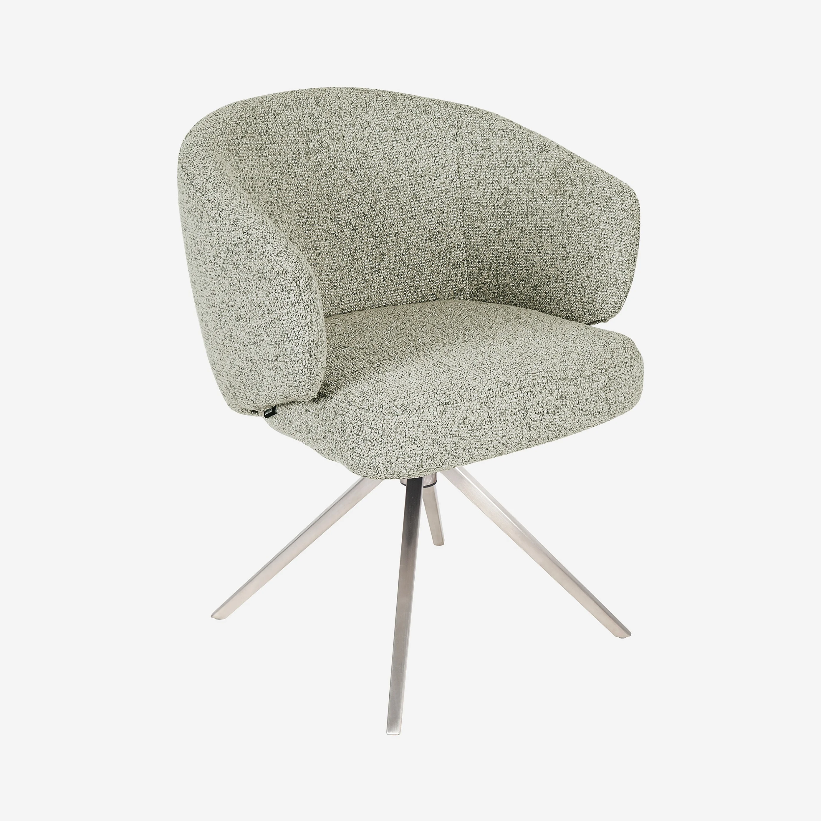 Con la sua forma avvolgente, il tessuto testurizzato e i piedi cromati, la sedia Galati aggiunge un tocco di modernità funzionale al soggiorno.