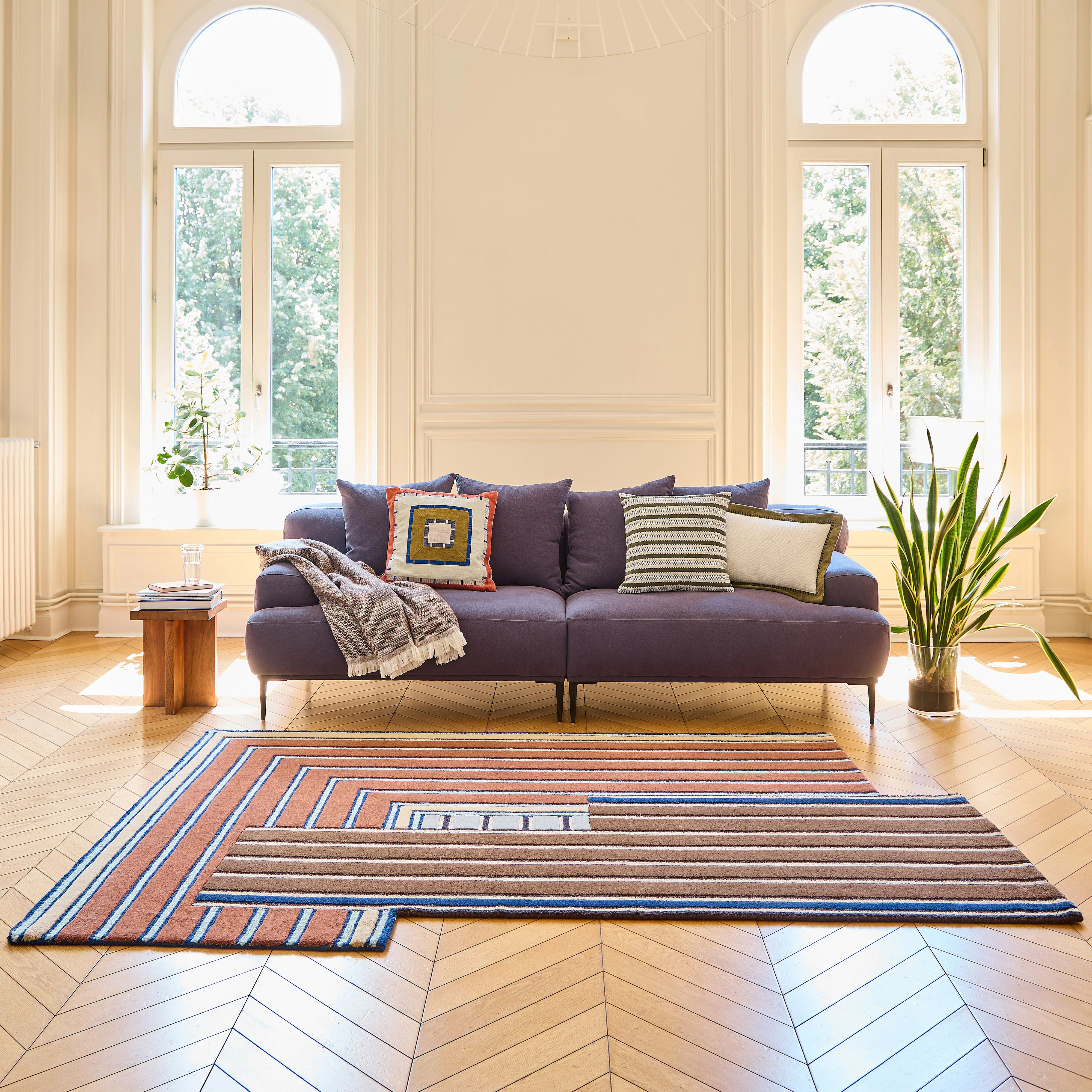 Righe destrutturate, forme libere e colori contrastanti: Galon infonde un tocco grafico e vivace allo spazio.