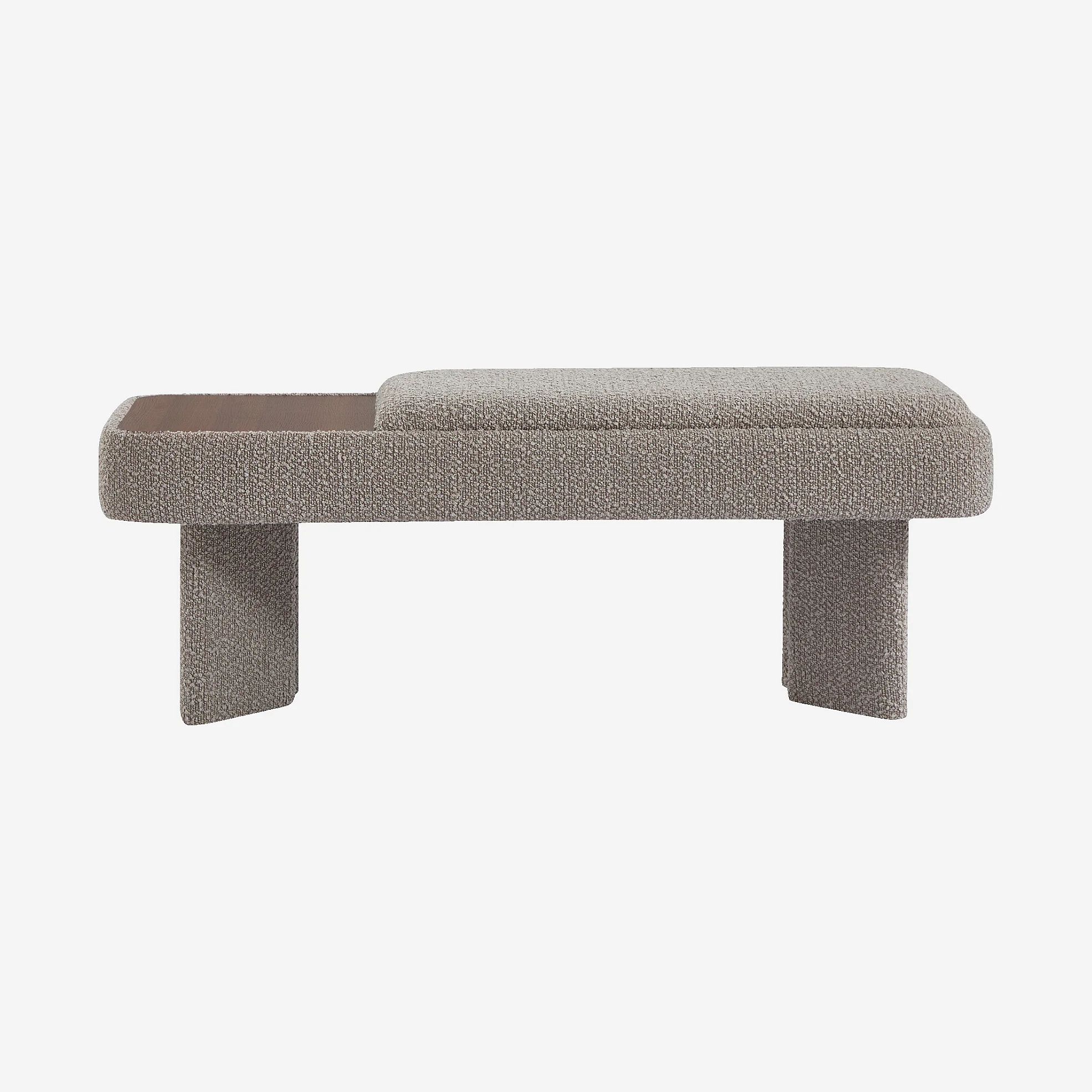 Panca in tessuto bouclé e legno - Grigio perla e noce
