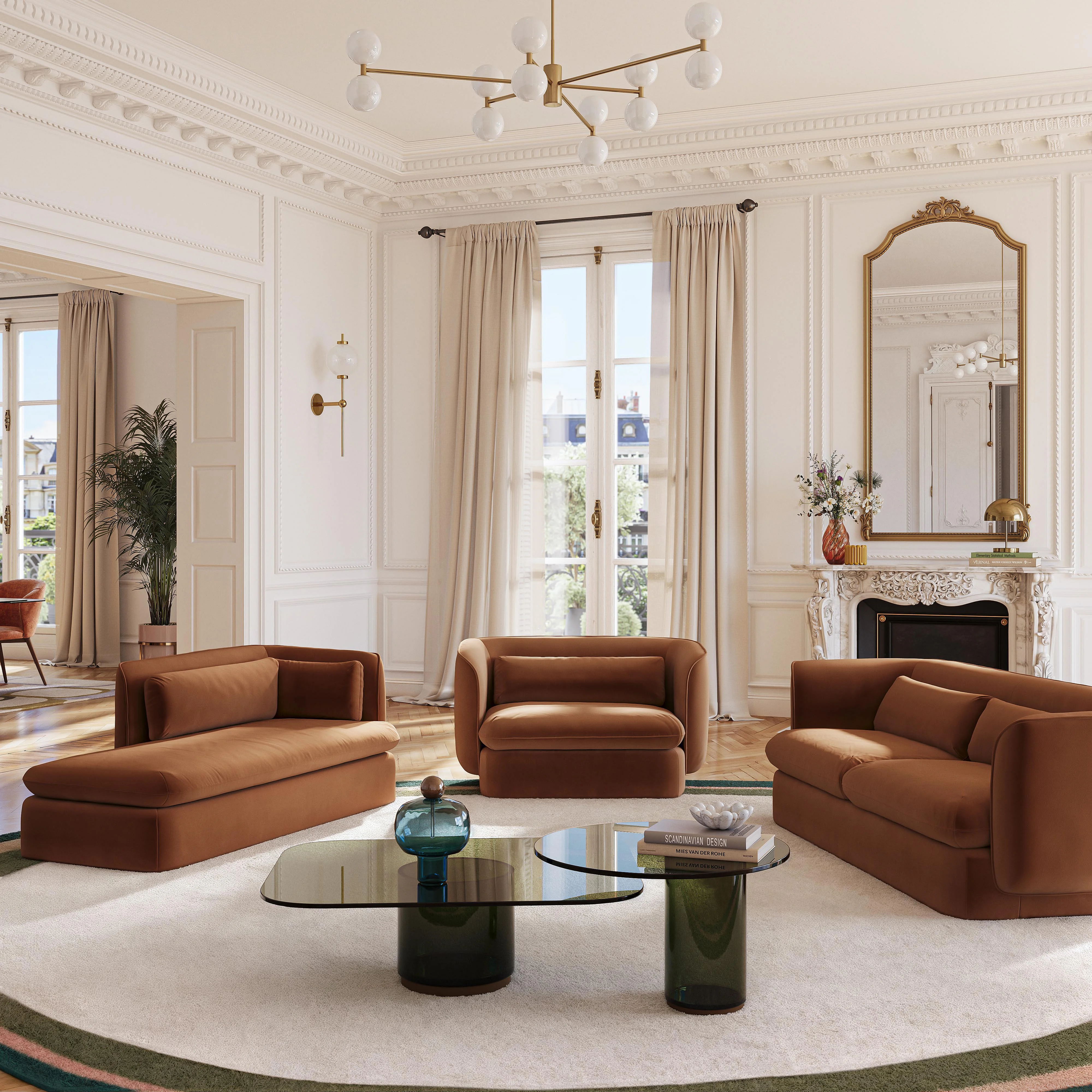 Divano 3 posti in tessuto imbottito di piume - Terracotta