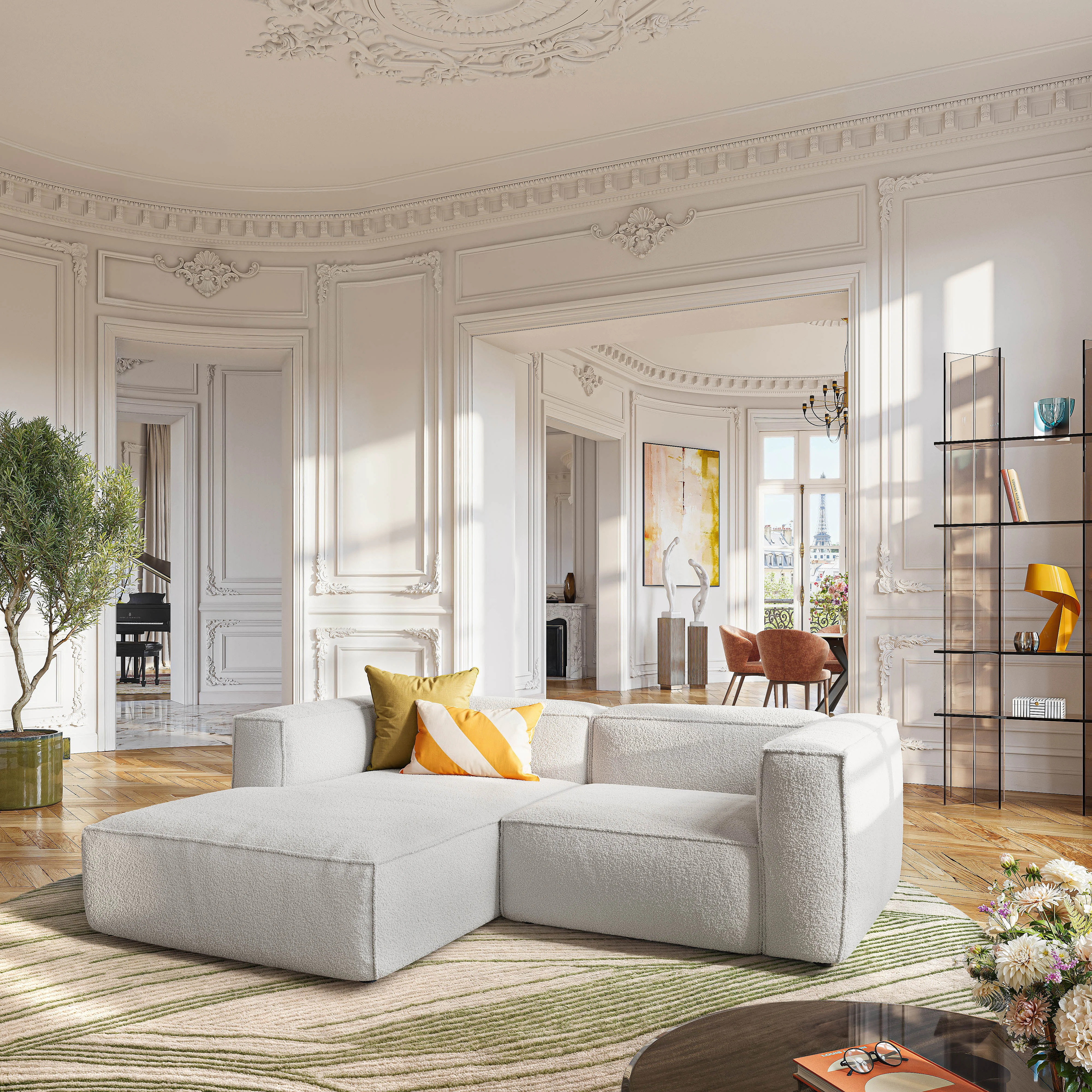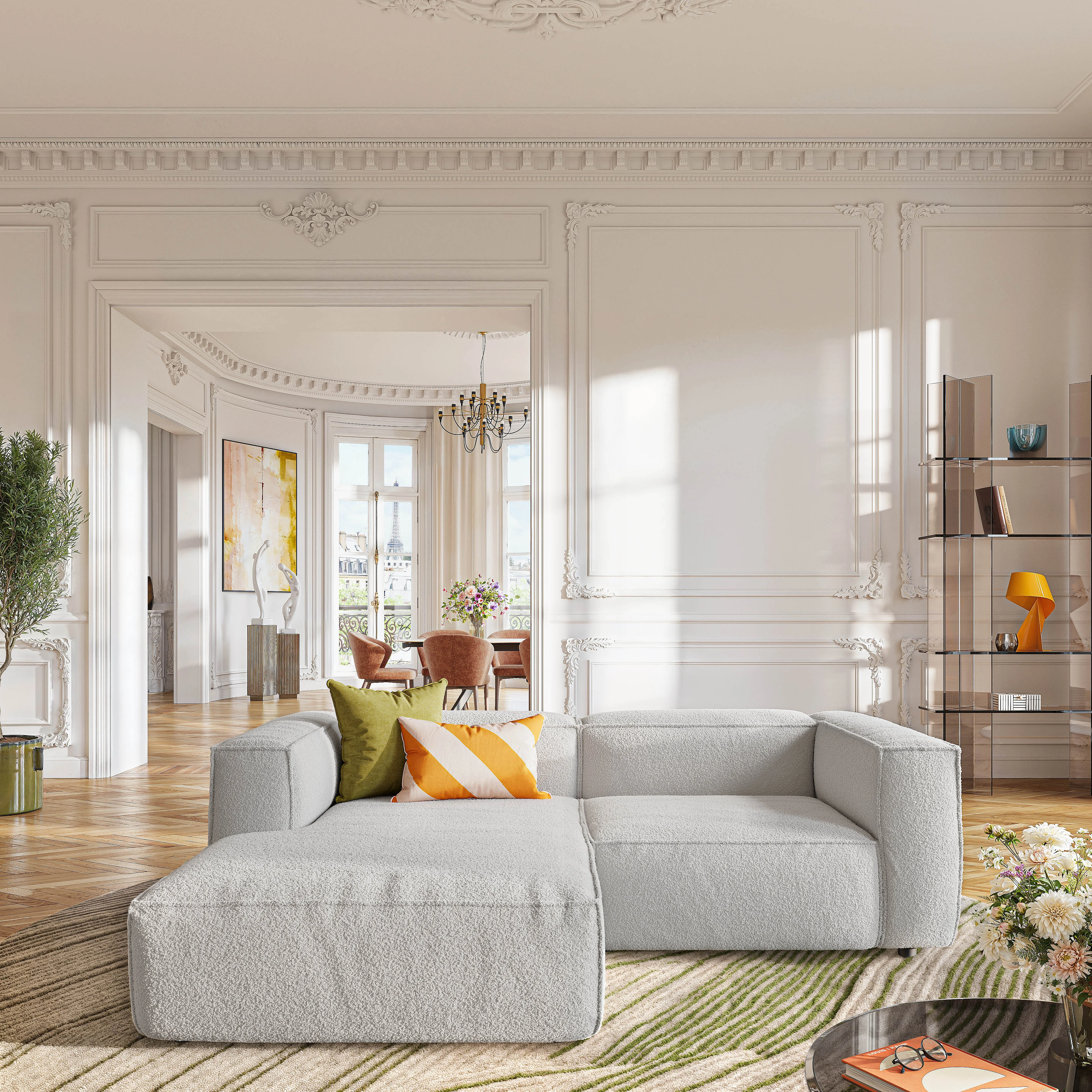 Divano angolare sinistro in tessuto bouclé - Beige melange
