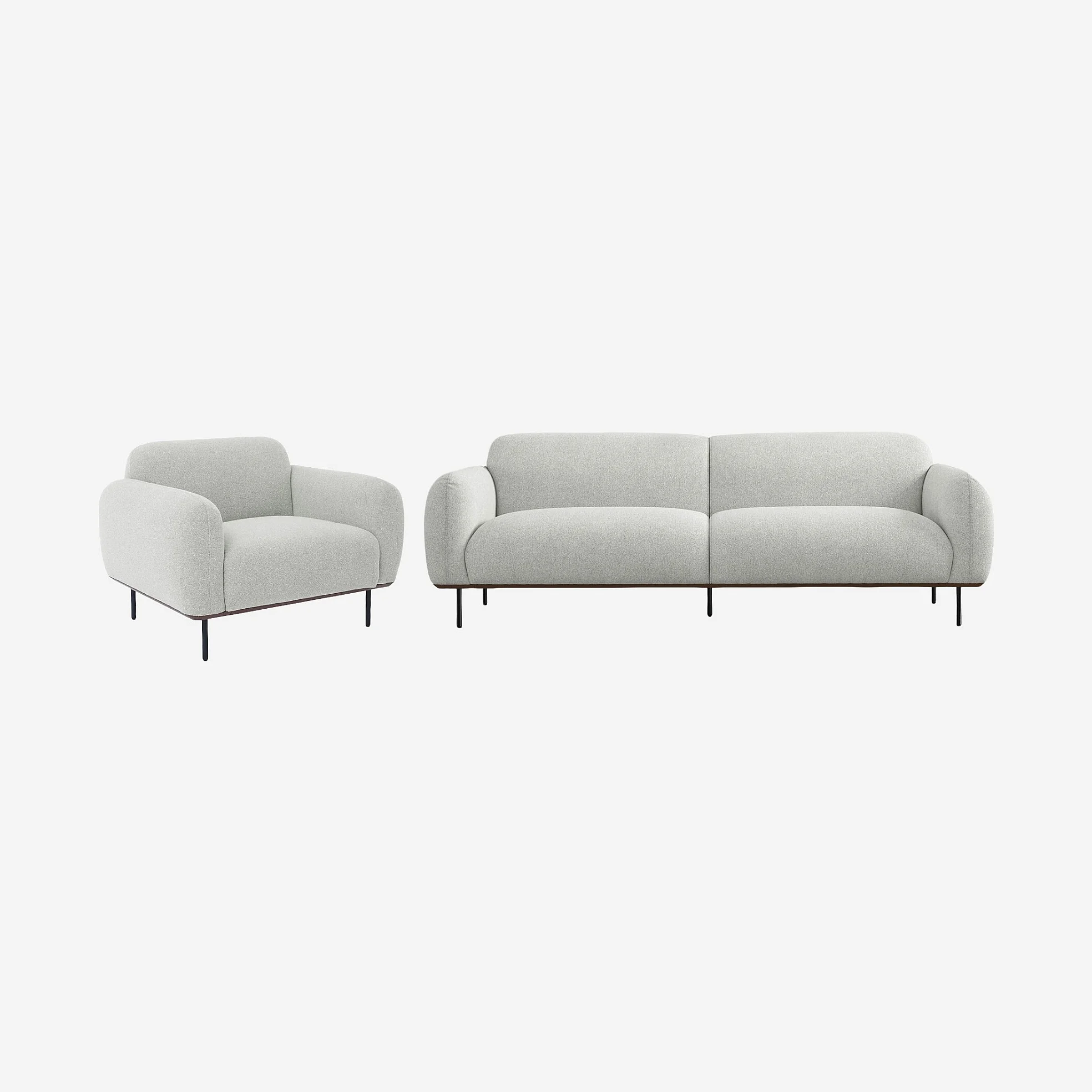 Set divano 3 posti e poltrona in tessuto - Grigio melange