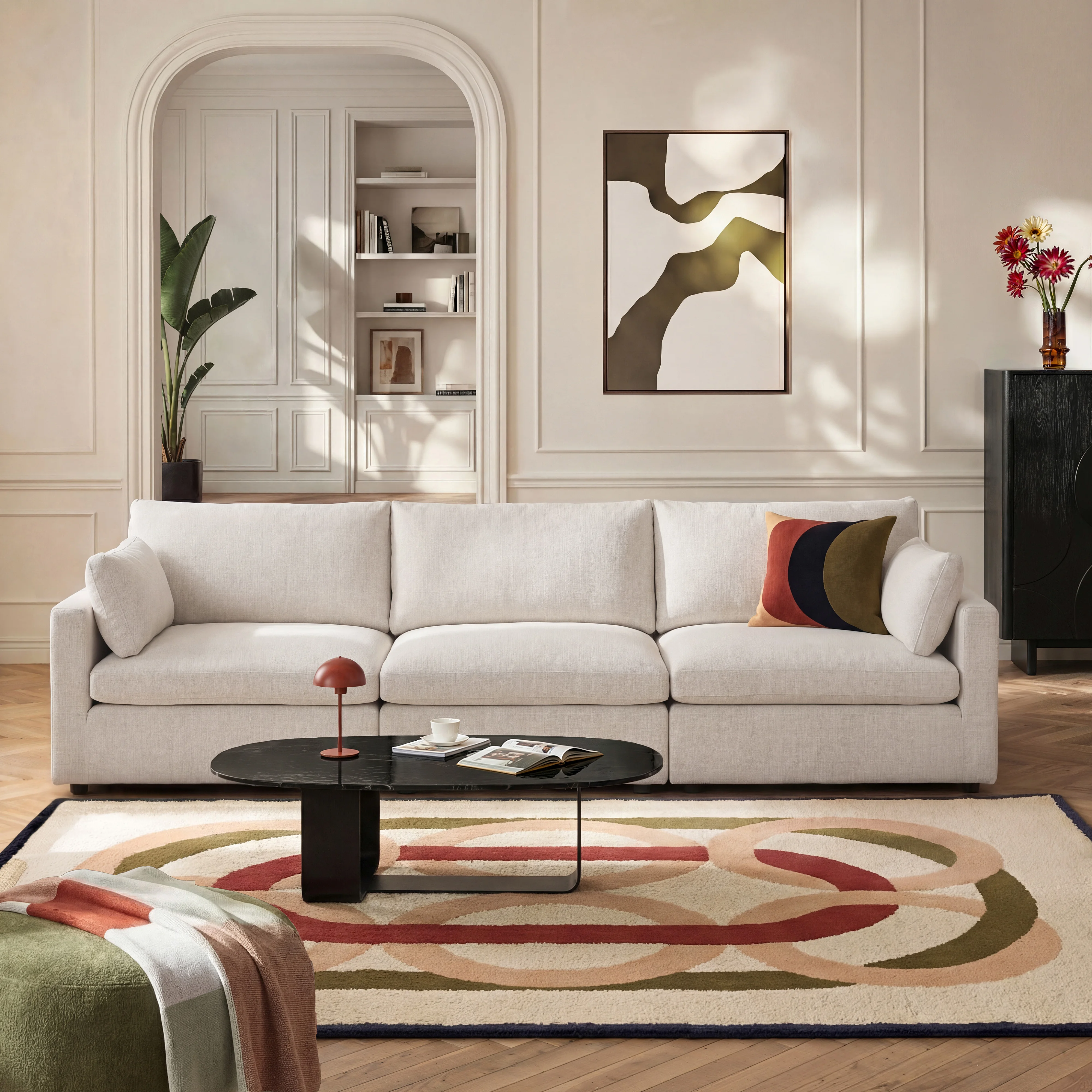 Lavinio reinventa il divano componibile con una silhouette essenziale e un comfort generoso. I suoi moduli si assemblano liberamente per comporre, ampliare o trasformare il tuo divano nel corso del tempo.