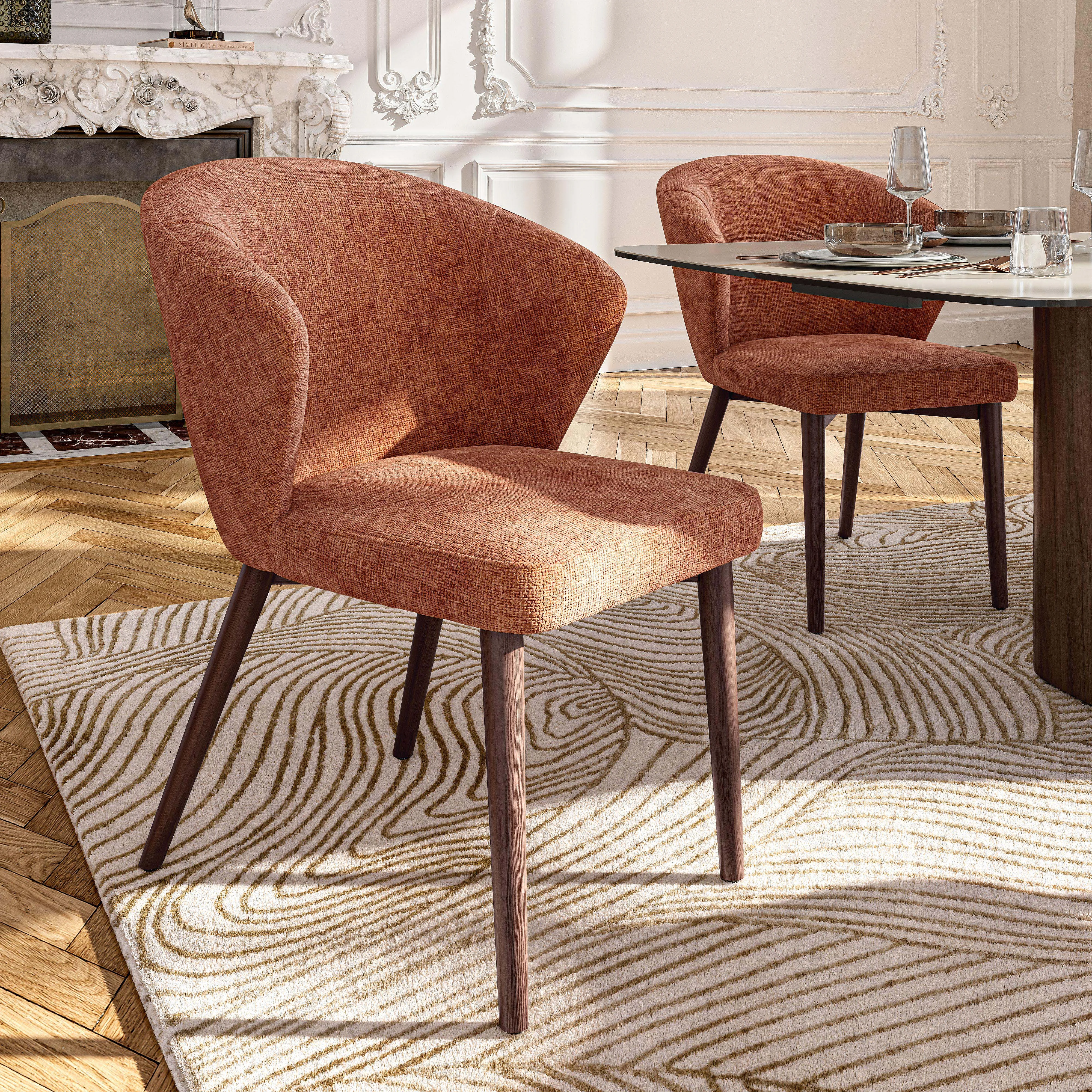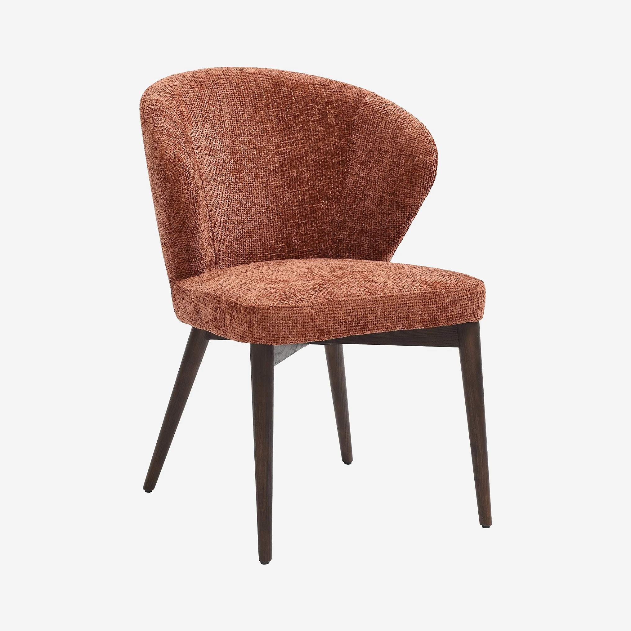 Set di 2 sedie in tessuto chenille e legno massiccio color noce - Terracotta