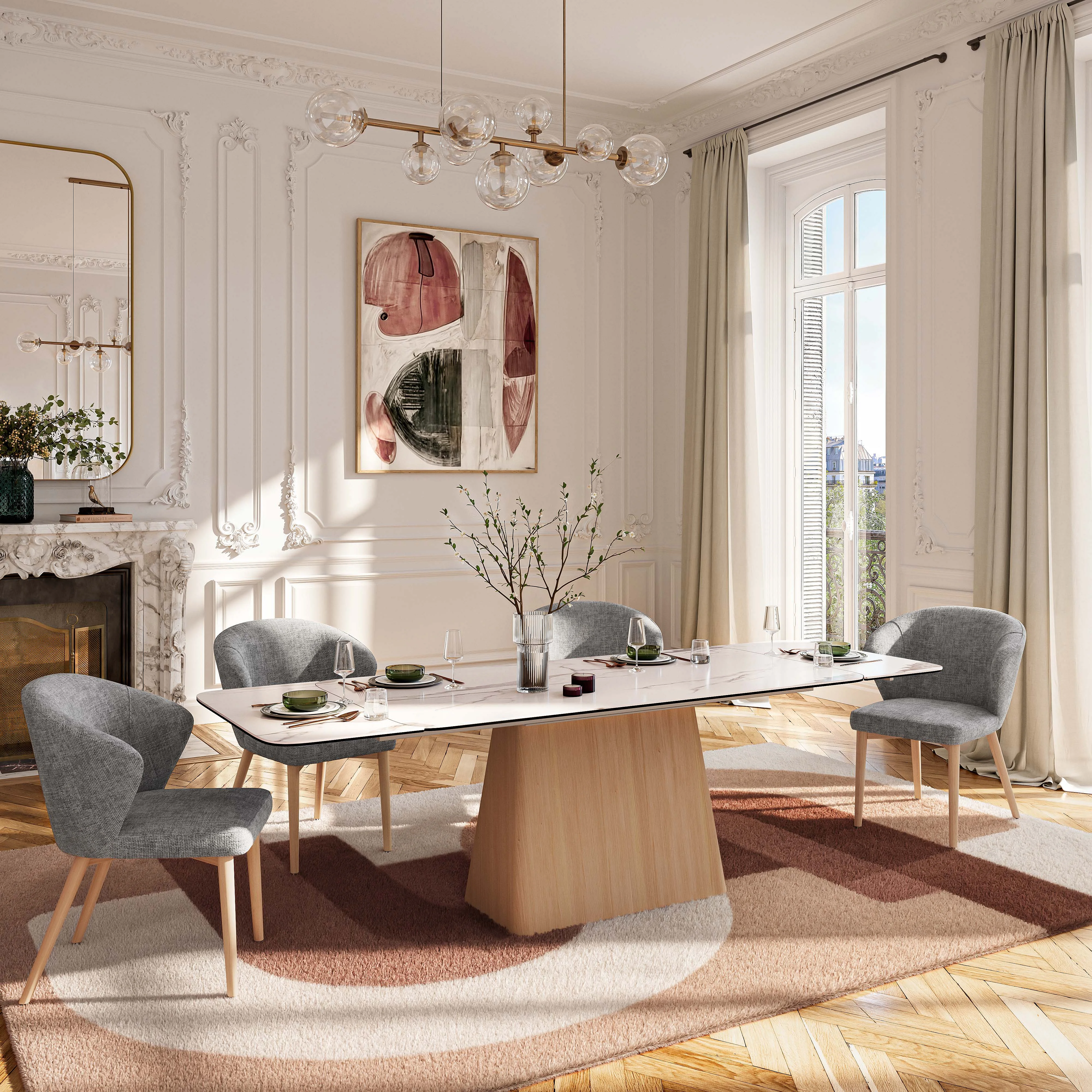 Una silhouette minimalista dalle curve avvolgenti, sublimata dalla dolcezza del tessuto chenille. La sedia Luris è concepita come un tocco di eleganza, sia sottile che accogliente.