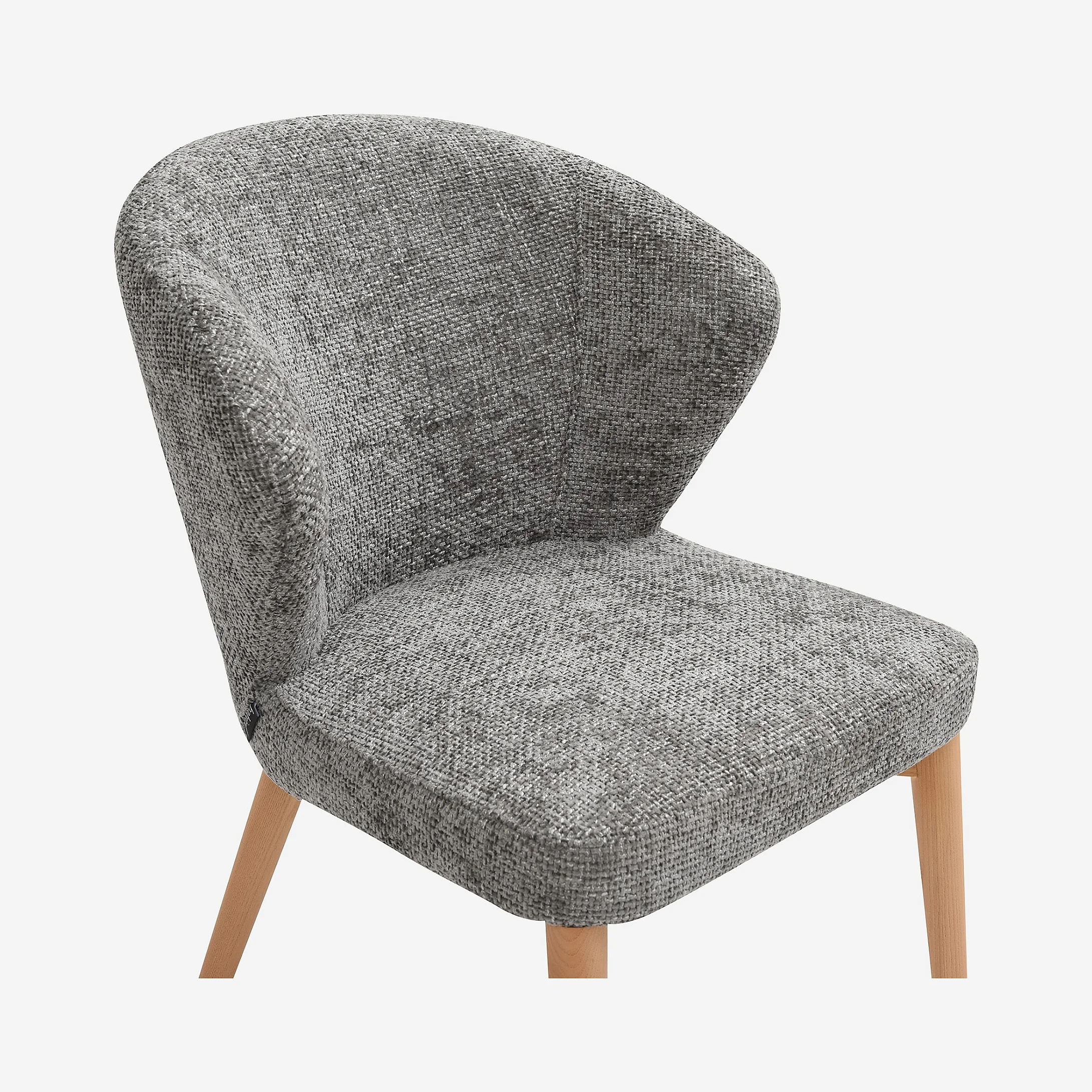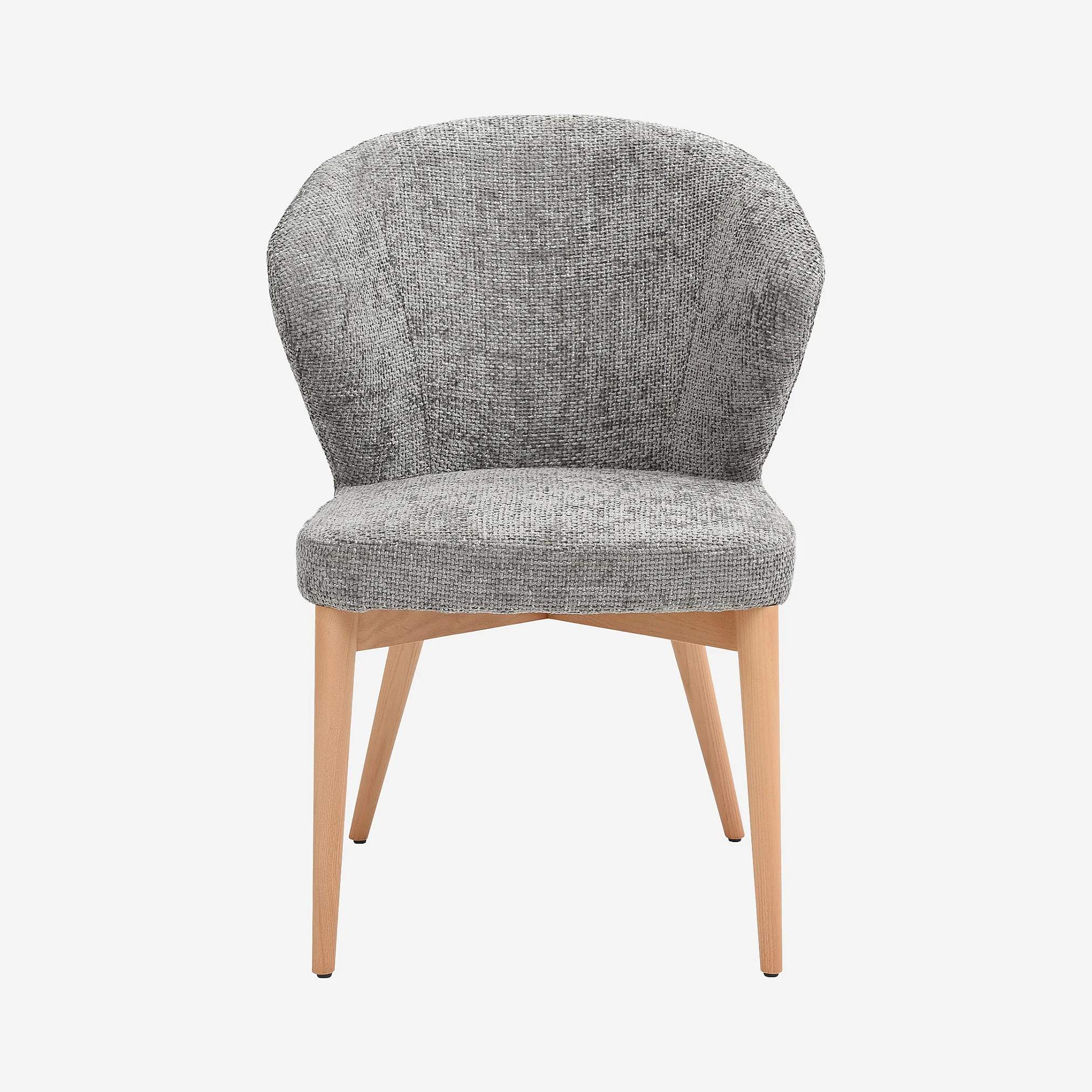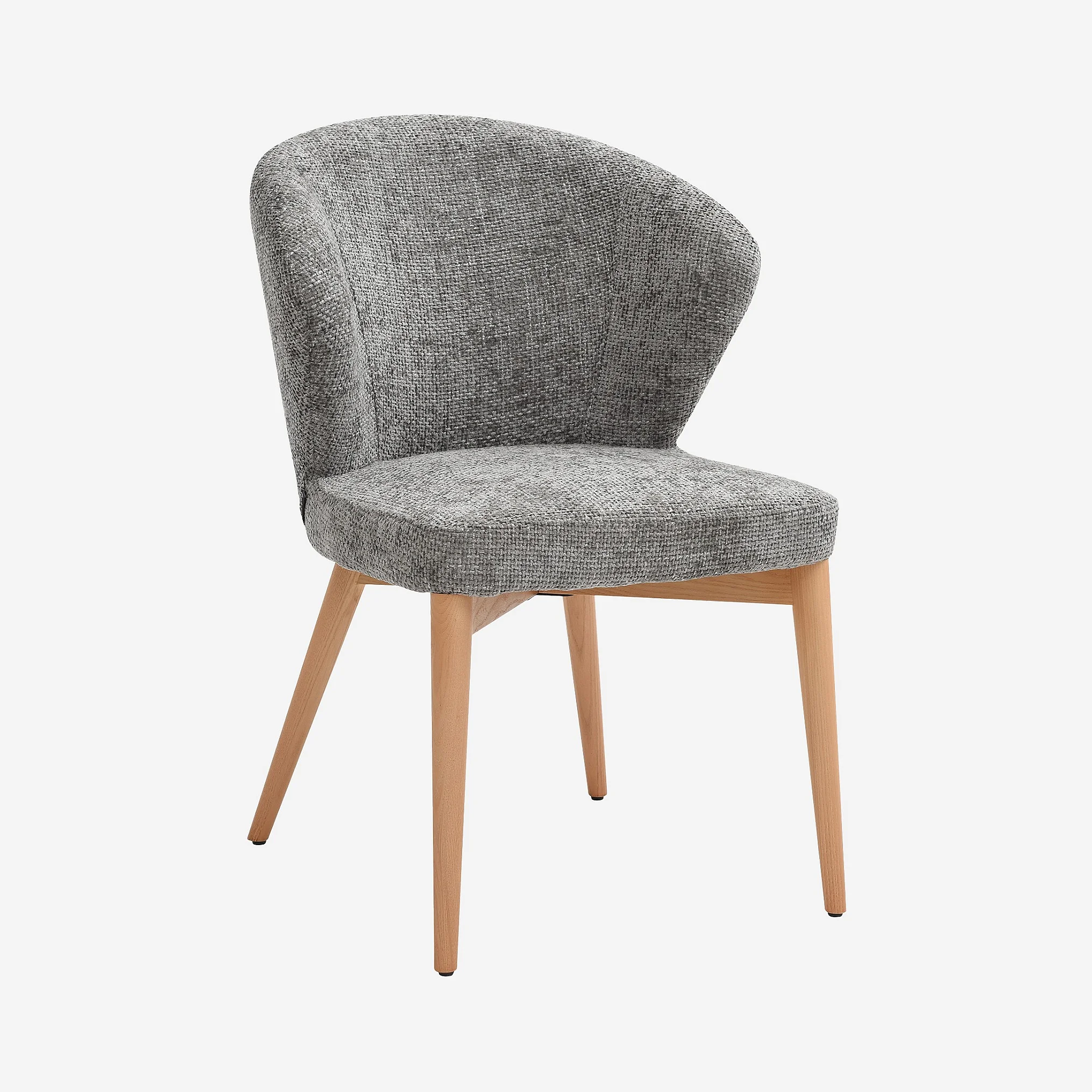 Set di 2 sedie in tessuto chenille e legno massiccio colore quercia - Grigio argento