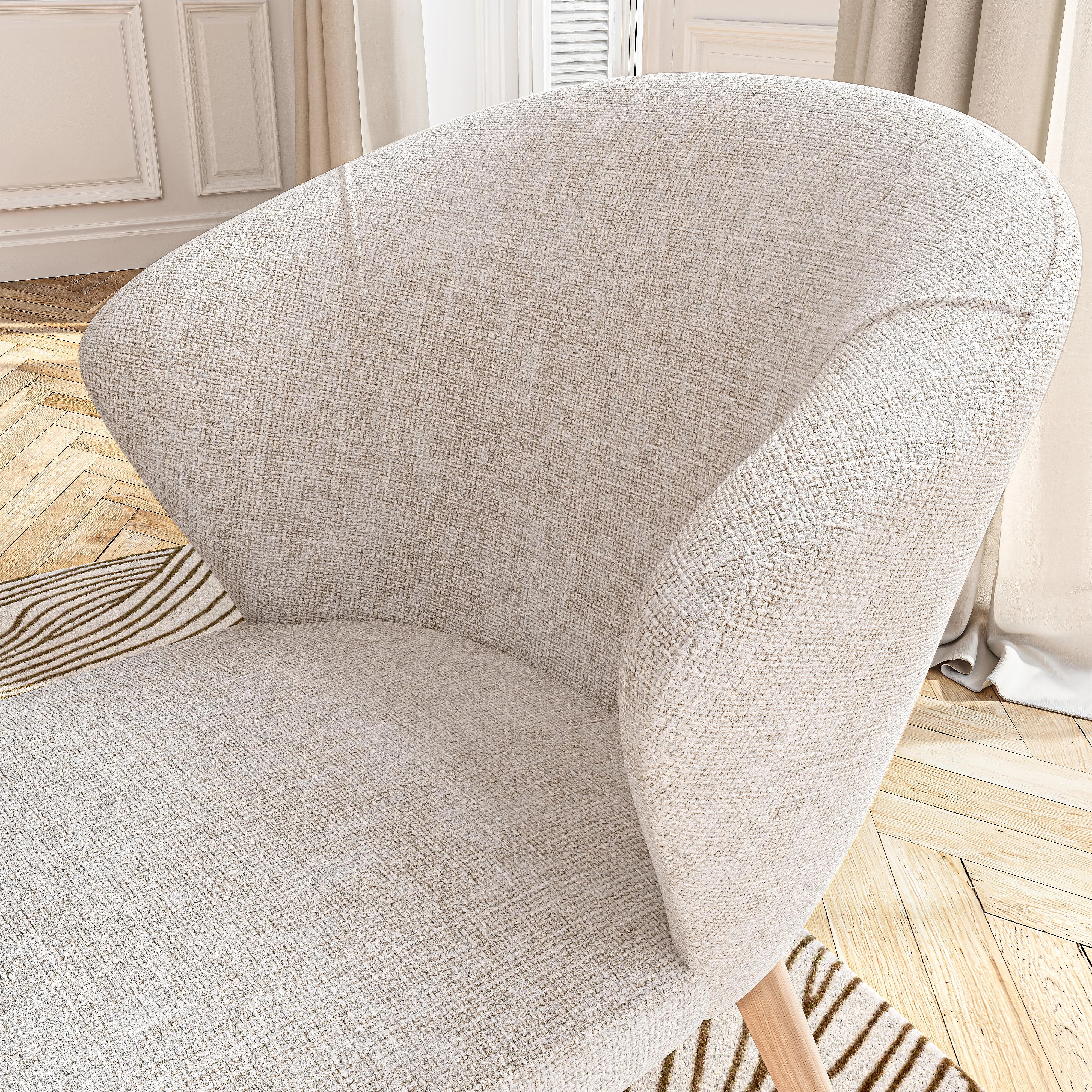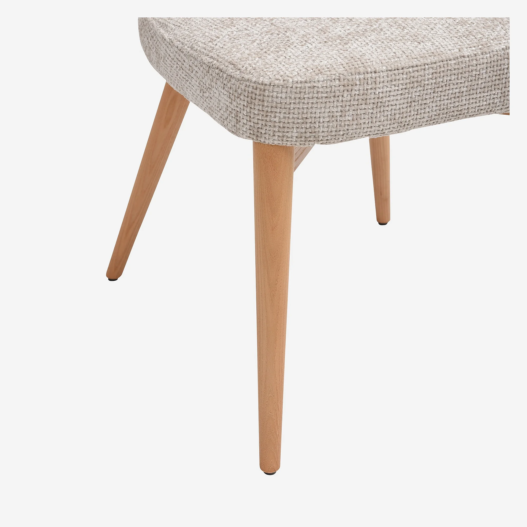 Set di 2 sedie in tessuto chenille e legno massiccio colore rovere - Crema