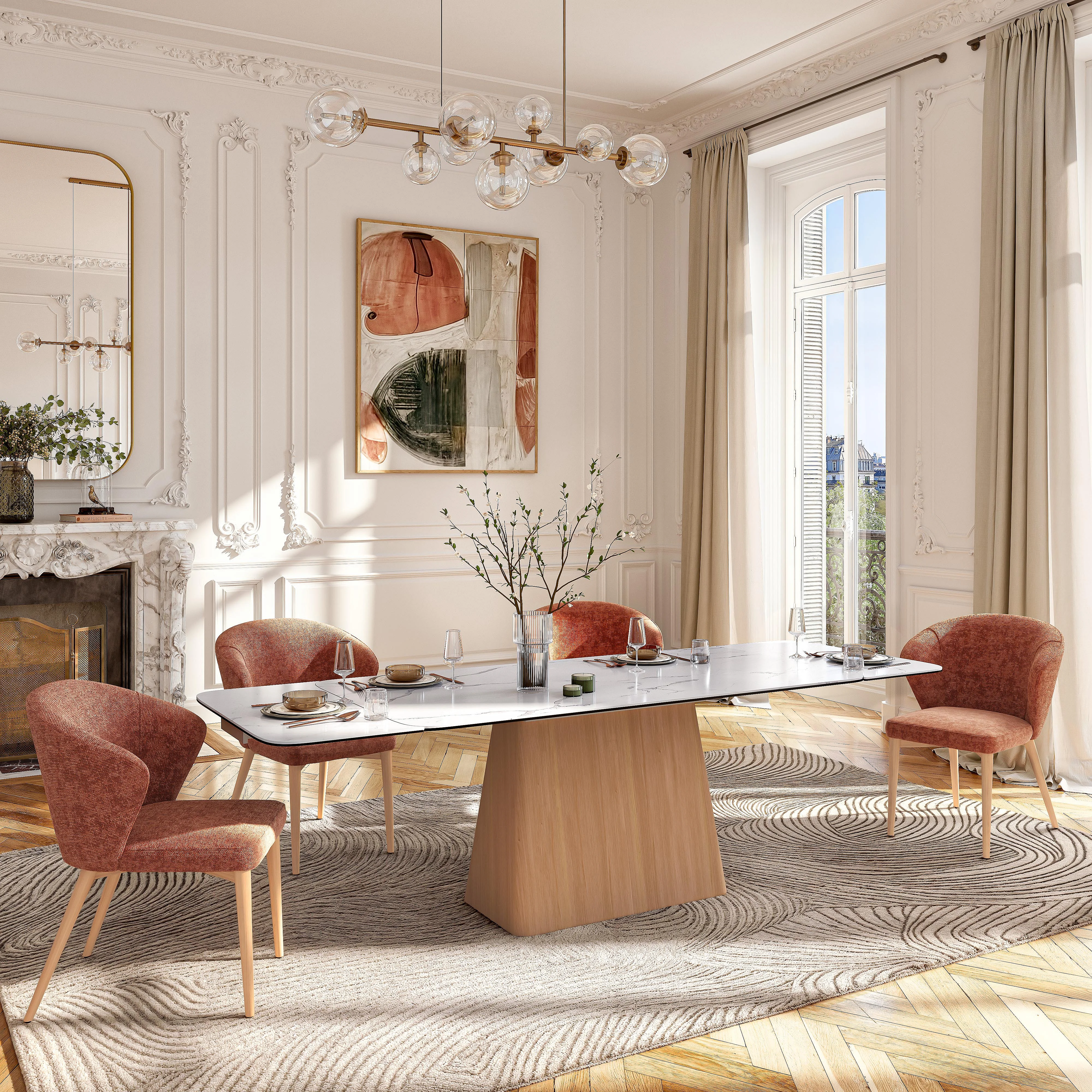 Una silhouette minimalista dalle curve avvolgenti, esaltata dalla morbidezza del velluto. La sedia Luris è pensata come un segno di eleganza, sia sottile che accogliente.