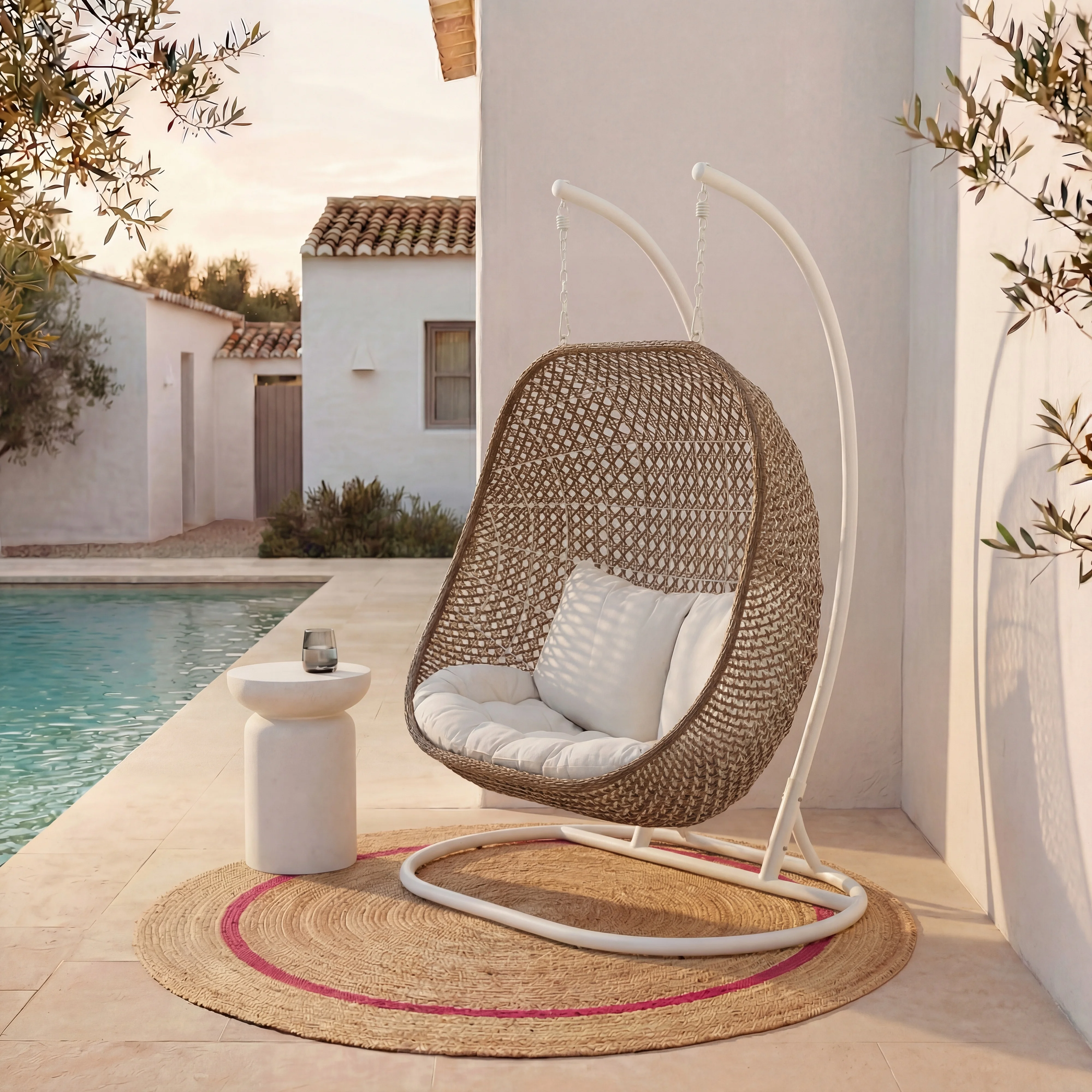 Sottile connubio tra modernità ed eleganza, la poltrona sospesa Manoa diventa il pezzo forte dei tuoi spazi esterni. La sua silhouette aerea e le linee essenziali invitano al relax per un momento di puro comfort.