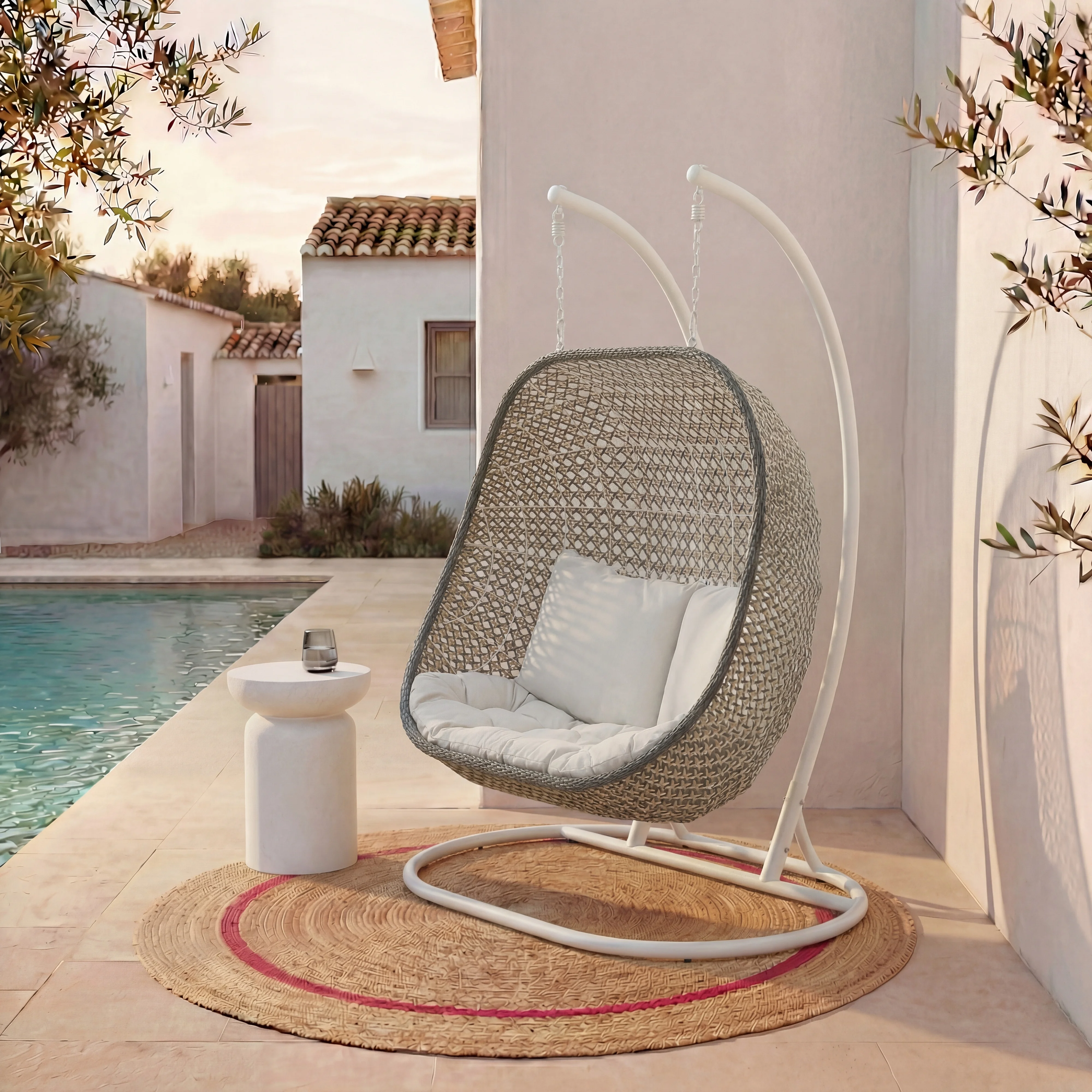Sottile connubio tra modernità ed eleganza, la poltrona sospesa Manoa diventa il pezzo forte dei tuoi spazi esterni. La sua silhouette aerea e le linee essenziali invitano al relax per un momento di puro comfort.