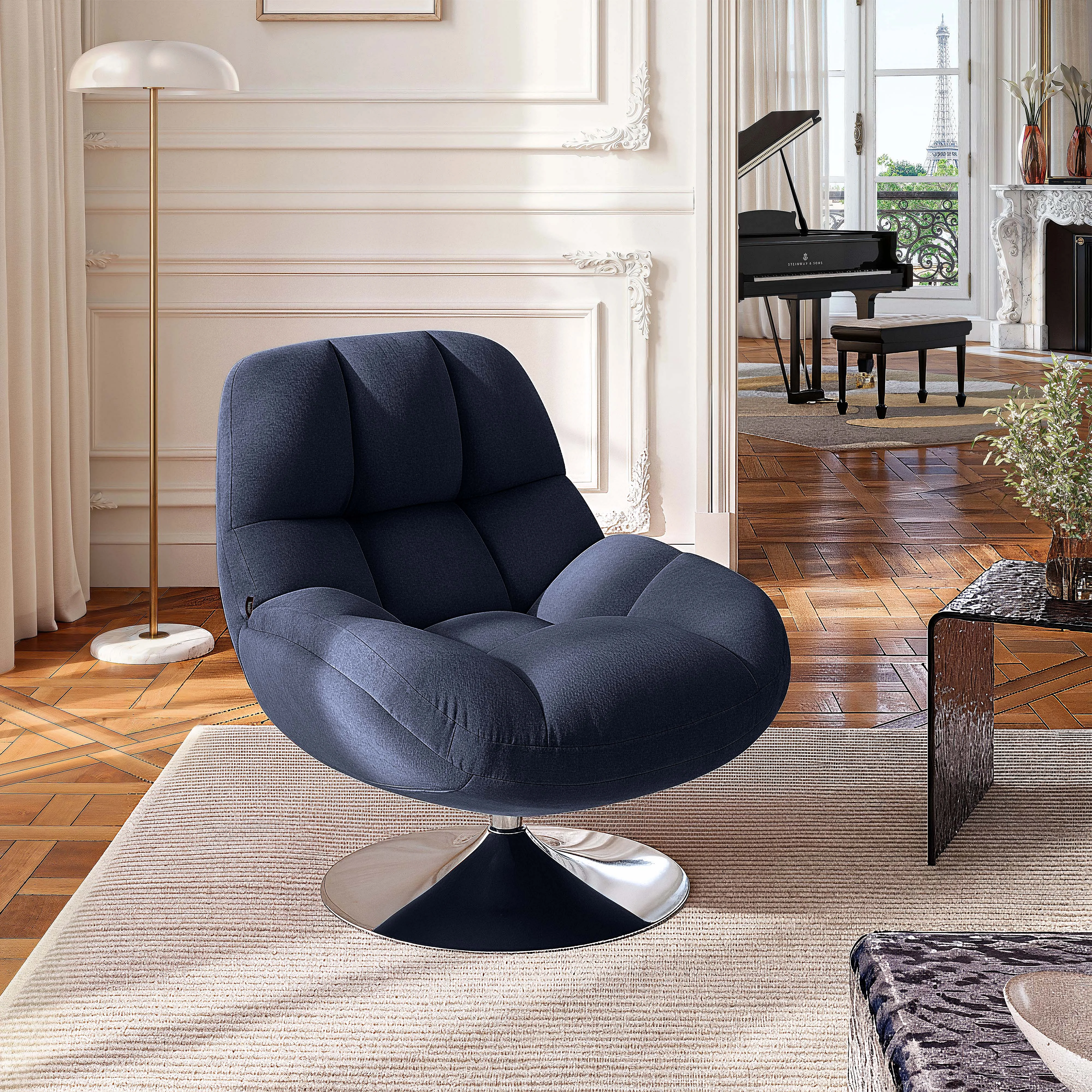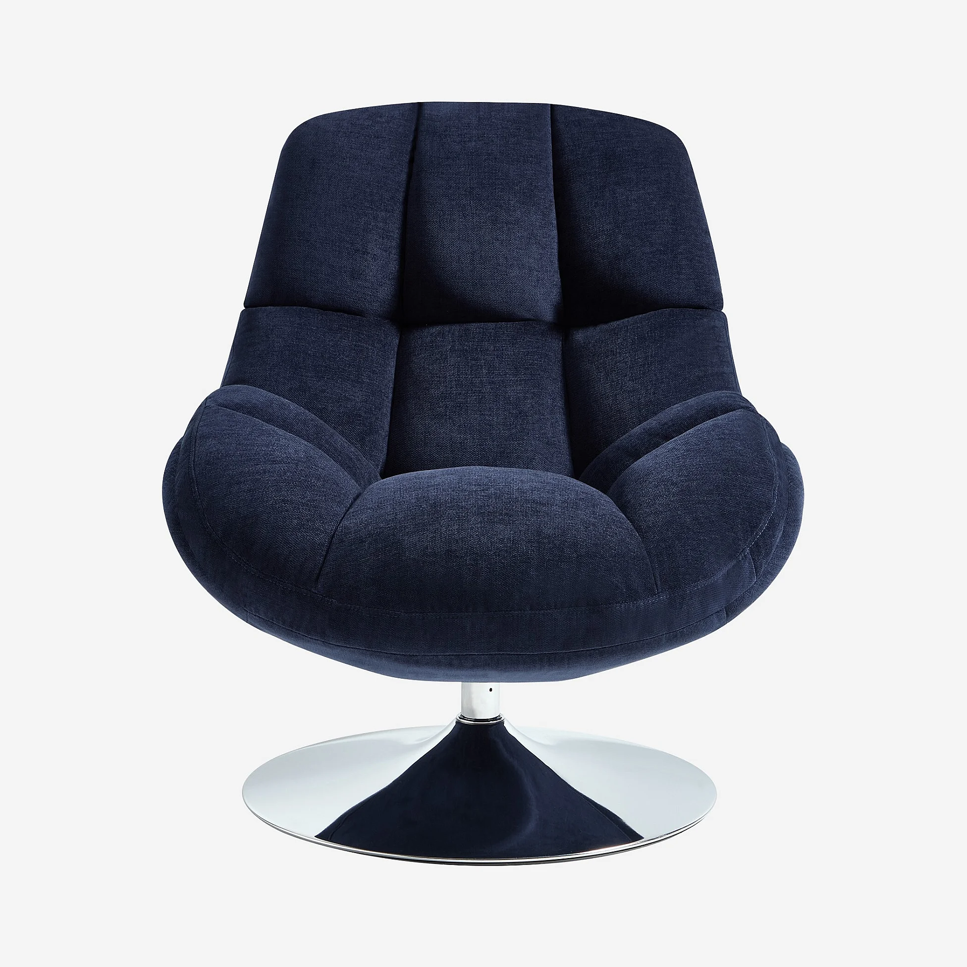 Poltrona girevole in tessuto e metallo cromato - Blu notte
