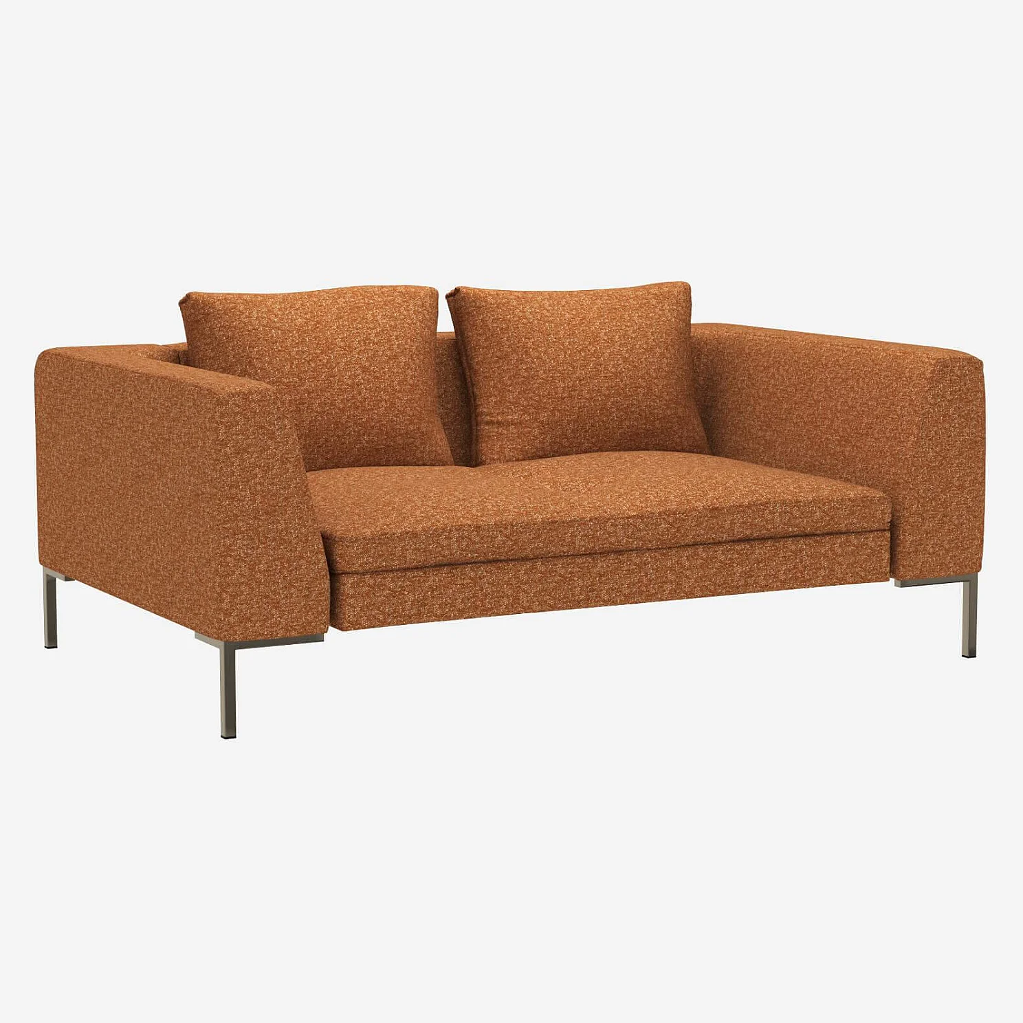 Linee bilanciate, tessuto e sottili gambe definiscono questo divano a 2 posti dall'estetica sobria e contemporanea. Una seduta elegante che si integra naturalmente in un soggiorno di ispirazione minimalista.