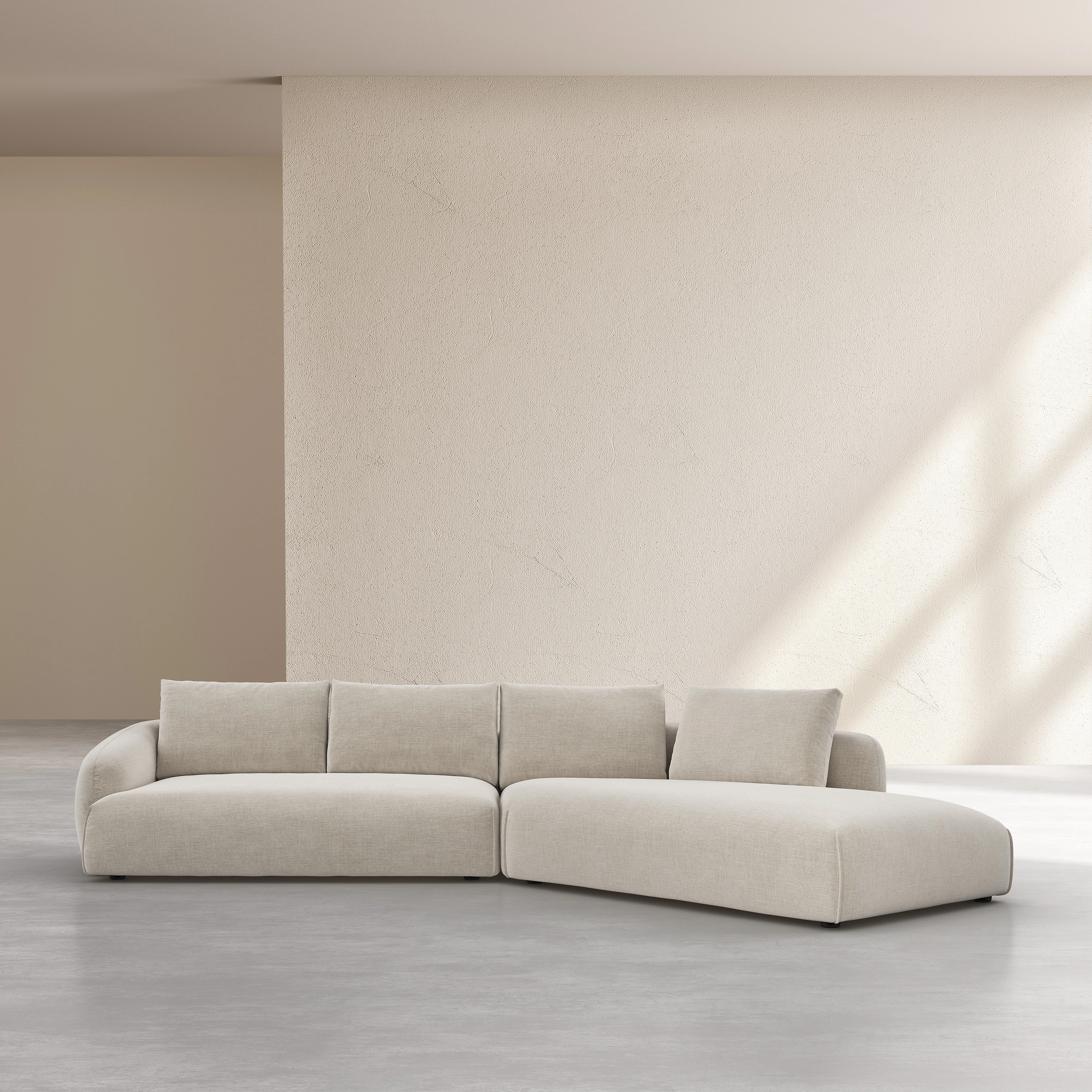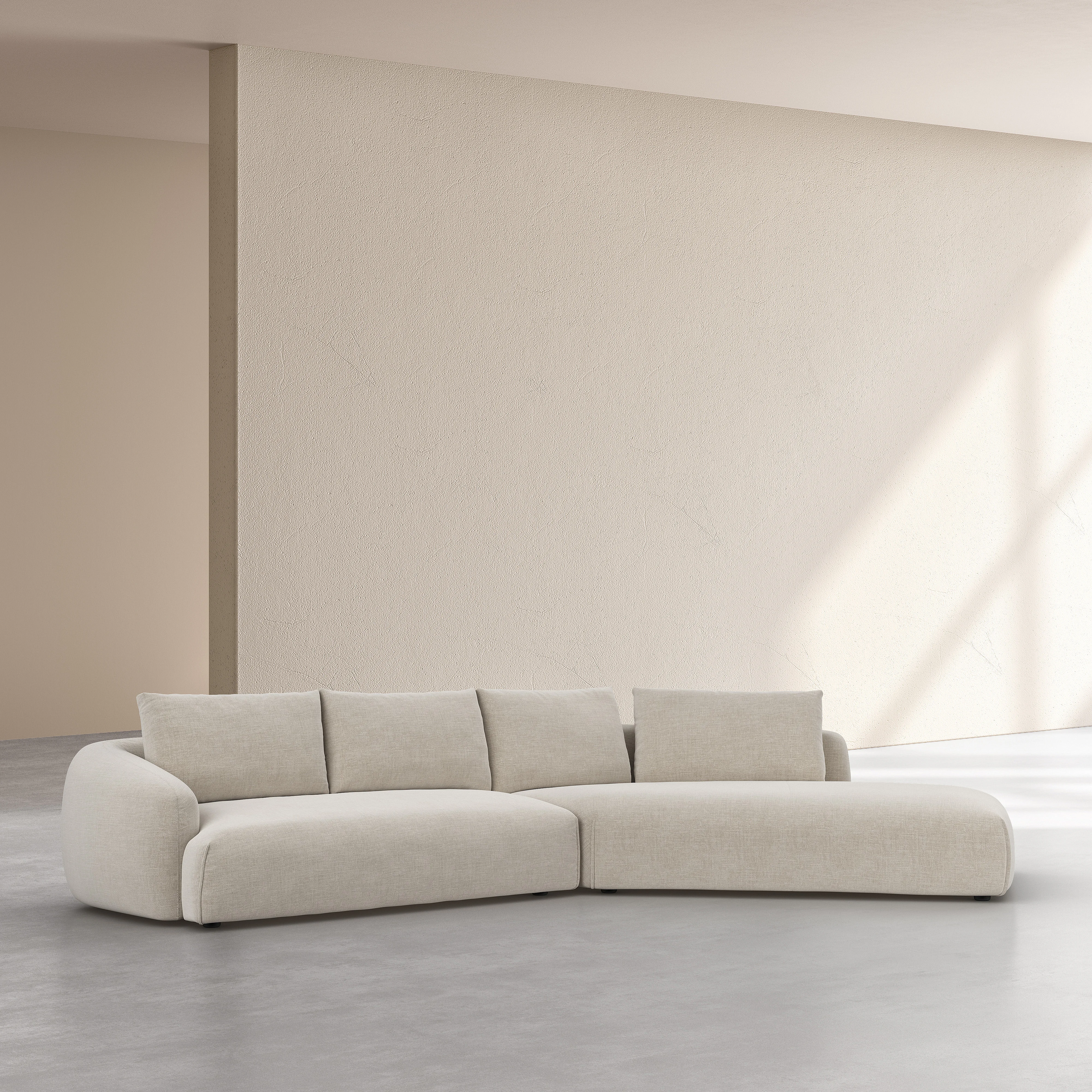 Divano d'angolo destro 4 posti in tessuto imbottito di piume - Beige